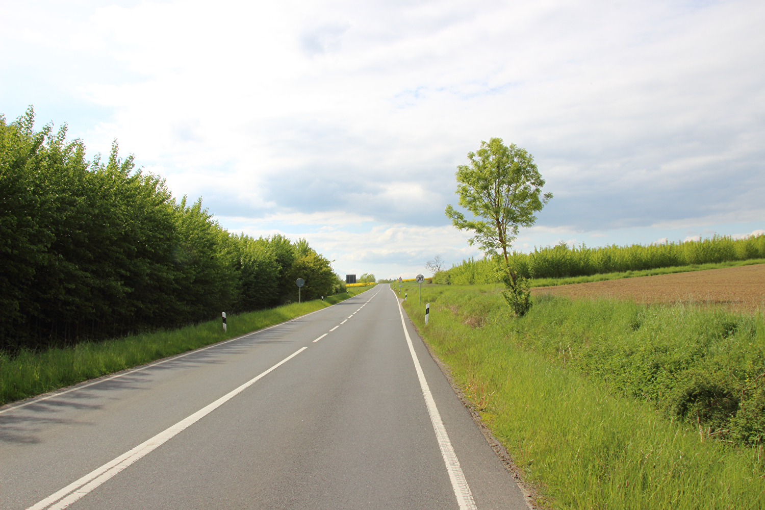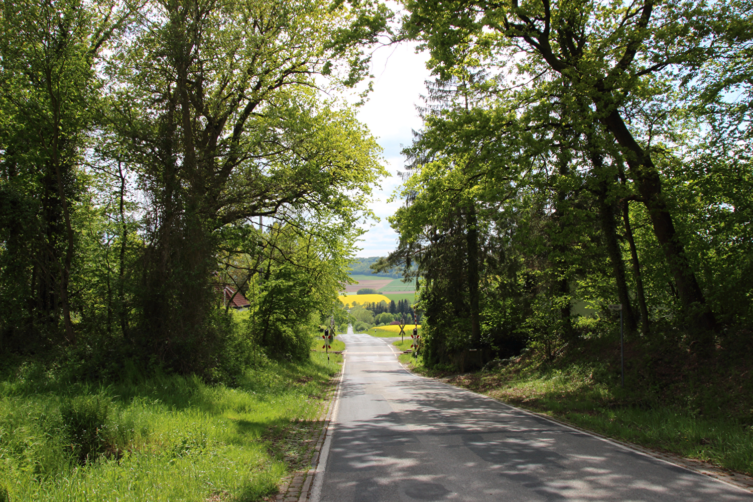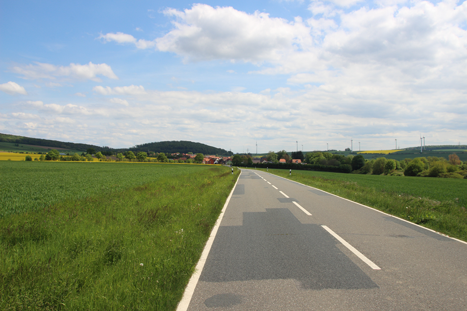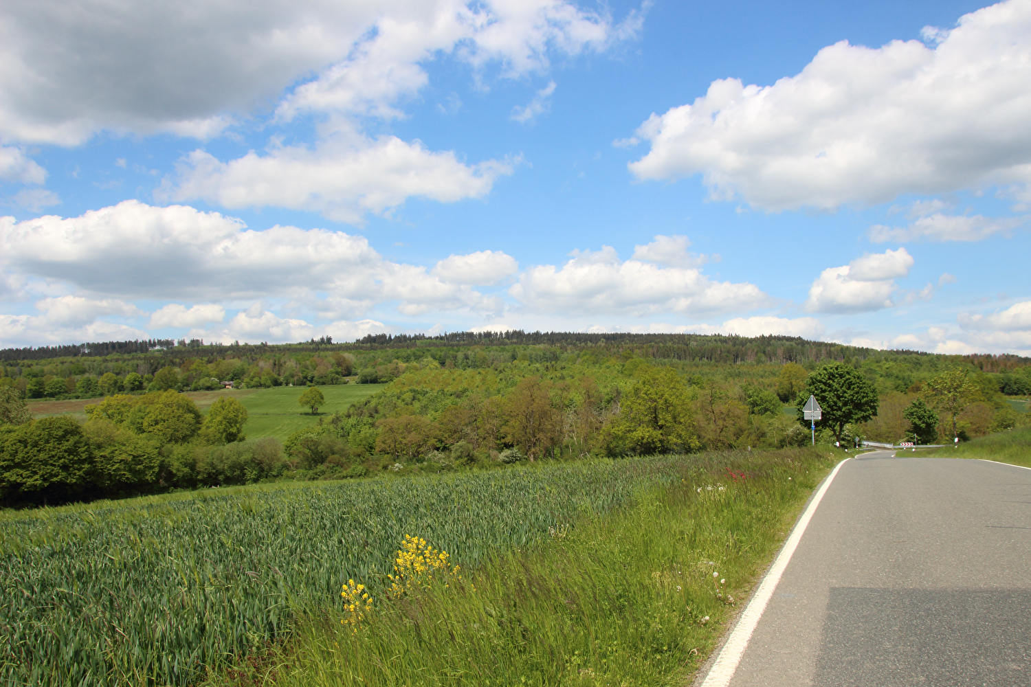 Beschreibung | „In Kreiensen steigt man nicht aus sondern um.“ An diesem Tag wurde von dieser Regel für Bahnreisende ein Ausnahme gemacht und die Tour planmäßig in Kreiensen gestartet. Damit wurde ein zeitkritischer Umstieg in Kreiensen vermieden. Die Tour startete bei freundlichem Wetter. Im Tagesverlauf versammelten sich zwar zunehmend mehr Wolken am Himmel, aber es blieb trocken und es bildete sich auch keine komplett geschlossene Wolkendecke aus. Die lange Brücke im Zuge der B64 zwischen Kreiensen und Greene überspannt nicht nur die Leine und den wenige Meter westlich daneben verlaufenden Oberwasserkanal an sich, sondern auch eine größere landswirtschaftlich genutzte Fläche, die bei Hochwasser überflutet werden kann, ohne dass dadurch die Straße zwischen Kreiensen und Greene überflutet werden würde. In Greene überspannt das Luhetal-Viadukt, ein Eisenbahnviadukt, das gleichnahmige Tal. In Norddeutschland gibt es keine vergleichbaren Bauwerke. Die etwas seltsame Bezeichnung „Hilskamm/Jägerlinde“ für die Passhöhe rührt daher, dass „Jägerlinde“ einen Baum, eben eine Linde (Tilia) auf der Passhöhe bezeichnet. Die Südrampe zur Passhöhe Hilskamm/Jägerlinde steigt nach der Überquerung des Hillebachs bei Wenzen zunächst in direkter Falllinie mit bis zu 11 % an. Erst ab der ersten Kurve, die oberhalb der Bahnstrecke Altenbeken–Kreiensen und der Landkreisgrenze zwischen Northeim und Holzminden liegt, nimmt die Steigung spürbar ab und bleibt bis zur Passhöhe im einstelligen Bereich. Die Bahnabreise ab Alfeld bot wie schon die Bahnanreise die Vorteile von stündlicher Anbindung im Nahverkehr und umsteigefreier Fahrt. |