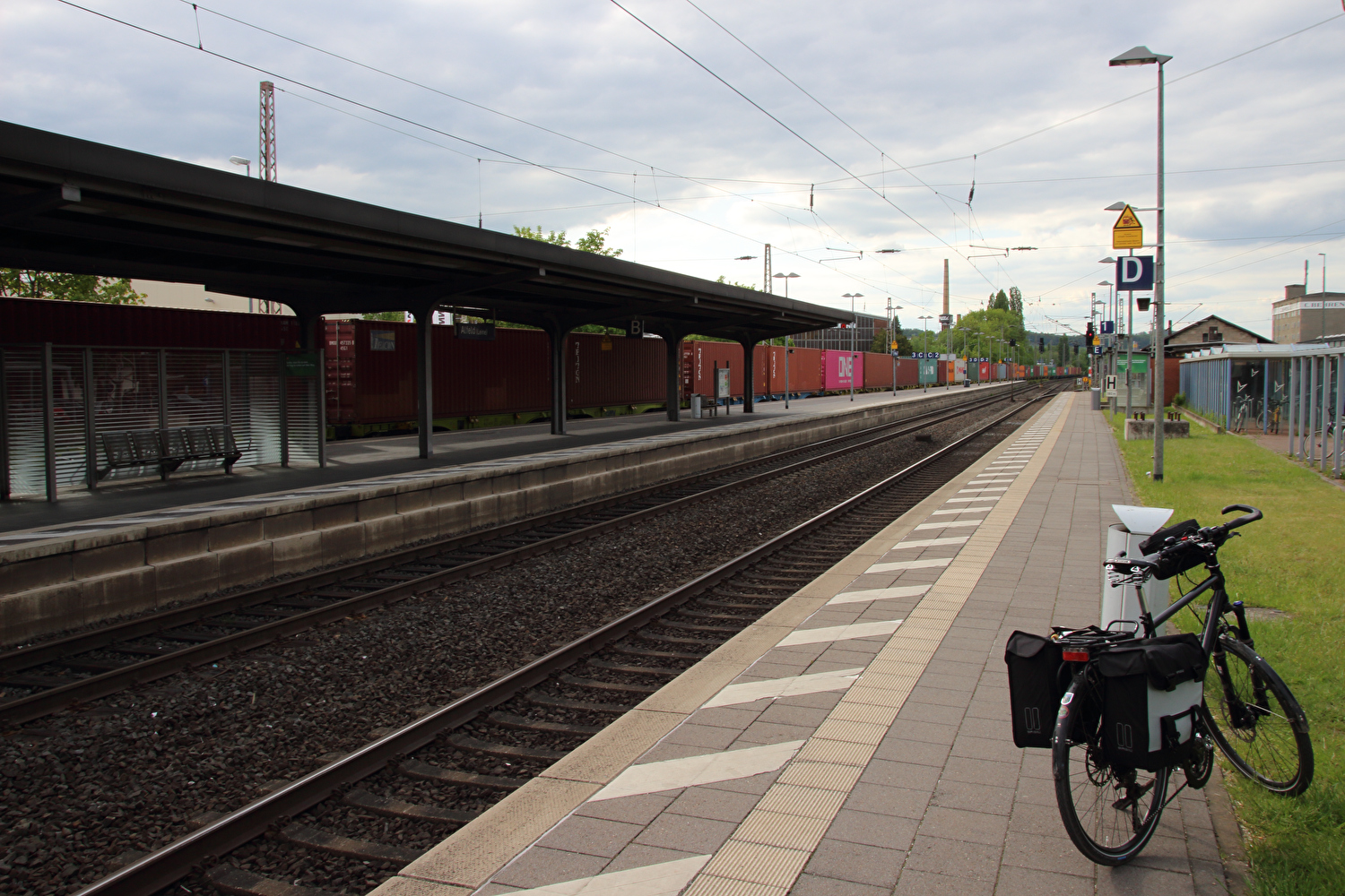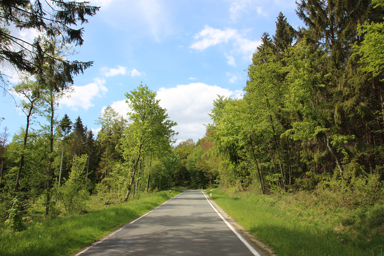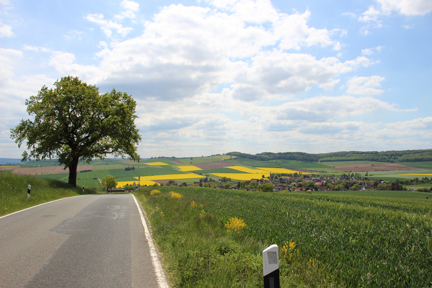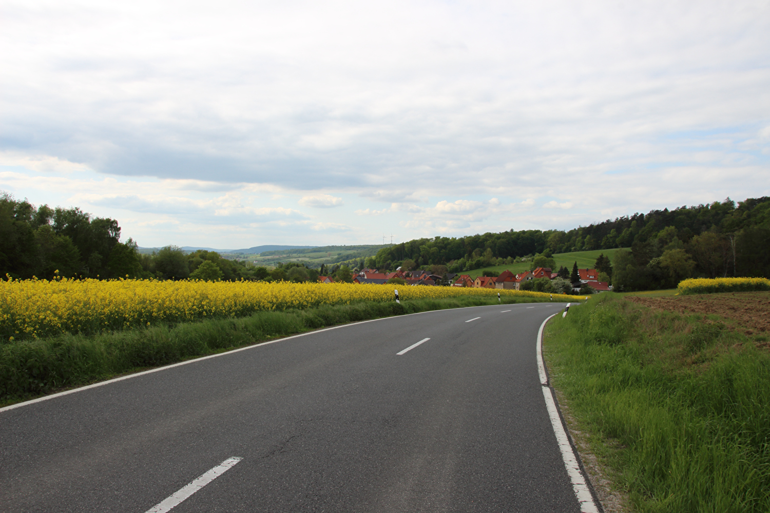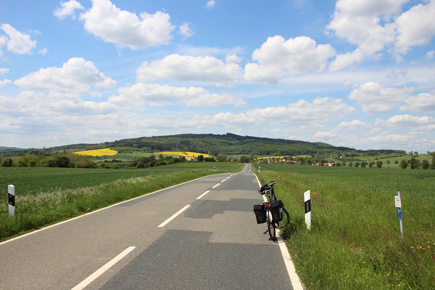 Beschreibung | „In Kreiensen steigt man nicht aus sondern um.“ An diesem Tag wurde von dieser Regel für Bahnreisende ein Ausnahme gemacht und die Tour planmäßig in Kreiensen gestartet. Damit wurde ein zeitkritischer Umstieg in Kreiensen vermieden. Die Tour startete bei freundlichem Wetter. Im Tagesverlauf versammelten sich zwar zunehmend mehr Wolken am Himmel, aber es blieb trocken und es bildete sich auch keine komplett geschlossene Wolkendecke aus. Die lange Brücke im Zuge der B64 zwischen Kreiensen und Greene überspannt nicht nur die Leine und den wenige Meter westlich daneben verlaufenden Oberwasserkanal an sich, sondern auch eine größere landswirtschaftlich genutzte Fläche, die bei Hochwasser überflutet werden kann, ohne dass dadurch die Straße zwischen Kreiensen und Greene überflutet werden würde. In Greene überspannt das Luhetal-Viadukt, ein Eisenbahnviadukt, das gleichnahmige Tal. In Norddeutschland gibt es keine vergleichbaren Bauwerke. Die etwas seltsame Bezeichnung „Hilskamm/Jägerlinde“ für die Passhöhe rührt daher, dass „Jägerlinde“ einen Baum, eben eine Linde (Tilia) auf der Passhöhe bezeichnet. Die Südrampe zur Passhöhe Hilskamm/Jägerlinde steigt nach der Überquerung des Hillebachs bei Wenzen zunächst in direkter Falllinie mit bis zu 11 % an. Erst ab der ersten Kurve, die oberhalb der Bahnstrecke Altenbeken–Kreiensen und der Landkreisgrenze zwischen Northeim und Holzminden liegt, nimmt die Steigung spürbar ab und bleibt bis zur Passhöhe im einstelligen Bereich. Die Bahnabreise ab Alfeld bot wie schon die Bahnanreise die Vorteile von stündlicher Anbindung im Nahverkehr und umsteigefreier Fahrt. |