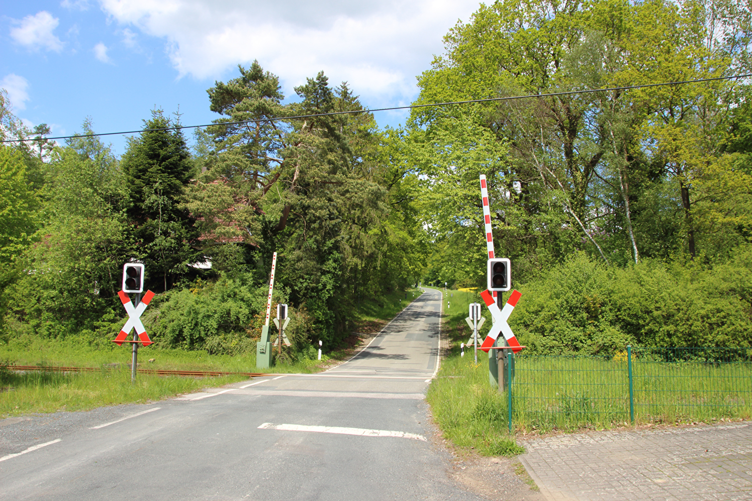 etwas weiter, Blick über den Bahnübergang bergab ![]() 300 dpi JPEG |