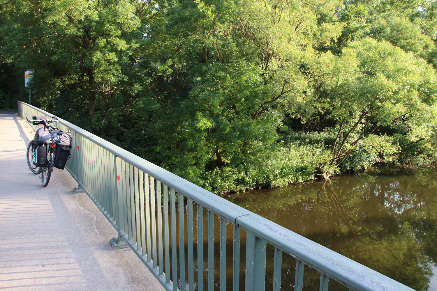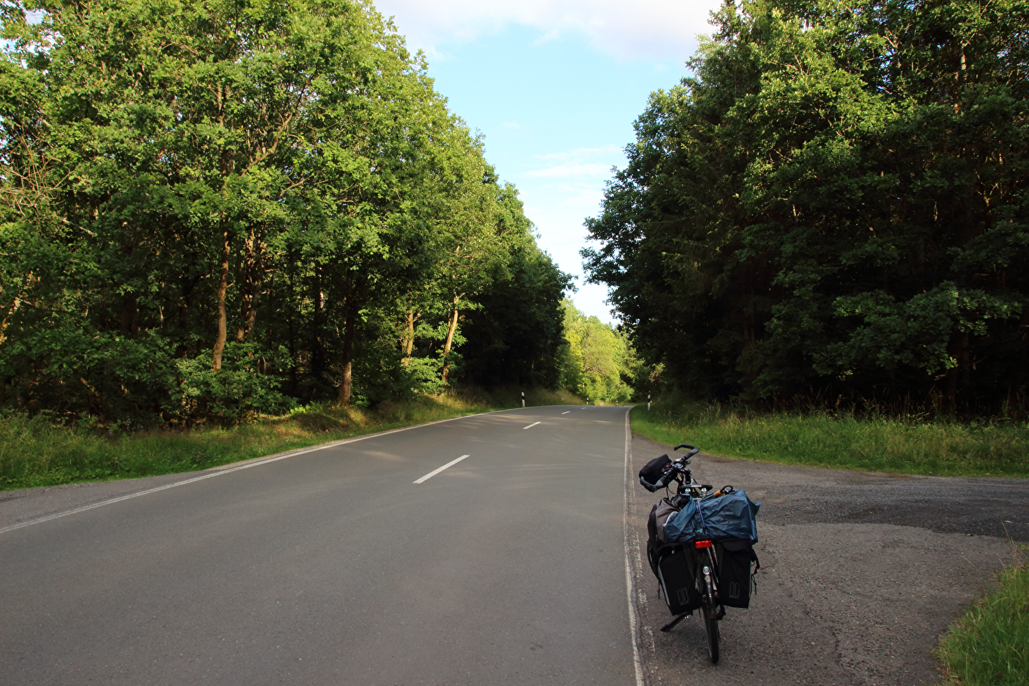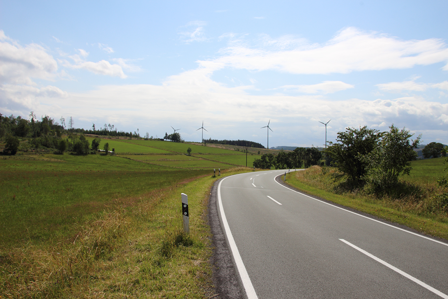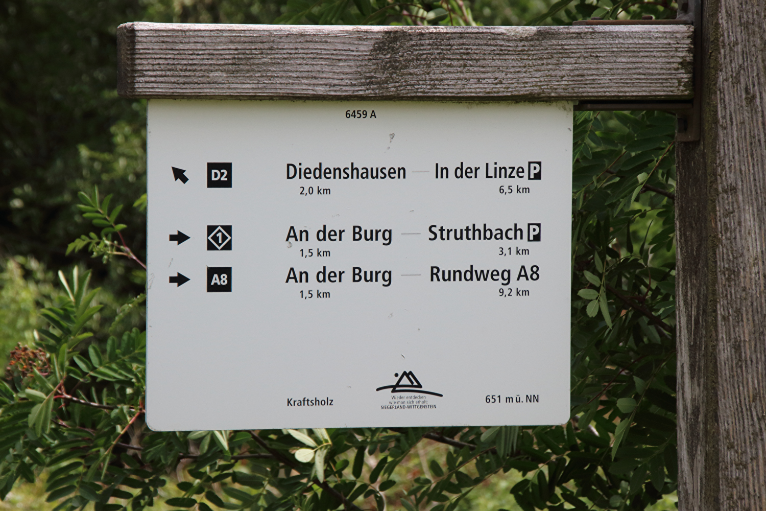 Beschreibung | Über Nacht war ein Sturmtief durchgezogen. Der damit gekommene Regen hörte am Morgen auf. Der starke Wind lies jedoch erst zum Abend hin etwas nach. Die Etappe begann bei bedecktem Himmel. Für die Jahreszeit war es zu kalt. Erst gegen Mittag zeigten sich erste Wolkenlücken. Wenigstens blieb es die meiste Zeit trocken. Am Nachmittag fiel ein kurzer Regenschauer. Zum Abend hin zeigte sich vermehrt die Sonne und kündigte den kommenden Wetterwechsel an. Wegen des Wetters startete die Etappe recht spät. Auf dem Kahlen Asten kam auch keine Eile auf. Die Schotterpiste vom Gipfelrundweg zur Lennequelle wurde zu Fuß gegangen. Der recht grobe Schotter in Kombination mit einer mittleren Neigung von knapp 8 % ist für Reiseräder wenig geeignet. Es gibt zwei Flüsse mit dem Namen „Lenne“ in Deutschland. Die längere und wasserreichere Lenne mündet in die Ruhr, die kürzere und wasserärmere in die Weser. Zur Unterscheidung werden die Flüsse daher auch Lenne (Ruhr) und Lenne (Weser) genannt. Im Rahmen dieser Tour ist mit „Lenne“ die Lenne (Ruhr) gemeint. Wie oft an diesem Tag die Rhein-Weser-Wasserscheide überquert wurde, bleibt unklar, da mit Ausnahme der Lenne im Gipfelbereich des Kahlen Asten und auch im Bereich der Straße zum Gipfel keine Fließgewässer vorhanden sind. Im Rahmen dieser Tour erfolgte die letzte Überquerung der Rhein-Weser-Wasserscheide im Bereich des Einmündung der L640 auf die B236/B480 zwischen dem Kahlen Asten und Neuastenberg bzw. Winterberg in der anderen Fahrtrichtung. Der Rest der Tour verlief auf der „Weserseite“ der Wasserscheide, genauer eingegrenzt im Einzugsbereich der Eder. Wegen des starken Windes, der in der Abfahrt von Neuastenberg die meiste Zeit von vorne blies, zog sich diese Abfahrt in die Länge. Im oberen steileren Bereich musste die Geschwindigkeit zur Aufrechterhaltung der Fahrsicherheit reduziert werden. Im unteren flacheren Bereich wurde der Hangabtrieb vom Gegenwind praktisch kompensiert, was zu einer geringeren Geschwindigkeit führte. Ab Wemlighausen wechselte die Fahrtrichtung nach Osten, womit der Wind nicht mehr von vorne blies. Zum Ausgleich dafür ging es erst mal wieder bergauf. Im Weiler Kraftsholz liegen einige Steilstücke mit mehr als 10 % Steigung, in denen geschoben wurde. Der namenlose Pass im Verlauf der K51 östlich von Landebach ist trotz der geringen Höhendifferenz zu Landebach topografisch eine Passhöhe. Diese Passhöhe, die Passhöhe Kraftsholz und das dazwischen in einer Senke liegende Landebach würden im Hochgebirge sicherlich zu einer „ausgedehnten“ Passhöhe zusammen gefasst werden. Das Sauerland ist aber schon lange kein Hochgebirge mehr. Die Passhöhe im Verlauf der L717 östlich von Wunderthausen ist recht unauffällig, was unter anderem daran liegt, dass die L717 östlich der Passhöhe noch weiter ansteigt, um dann vom unauffälligen Sattelpunkt nach Hallenberg abzusteigen. Bei Hallenberg, das im dort im in Nord-Süd-Richtung verlaufenden Nuhnetal liegt, wechselt die Landschaft recht abrupt. Das Nuhnetal trennt hier das Hochsauerland im Westen vom Ostsauerländer Gebirgsrand. Mit dem Verlassen des Hochsauerlandes endete der landschaftlich schönste Teil der Tour. In Hallenberg wurde per Schild auf eine Straßensperrung hingewiesen, die die geplante Route betraf. Aus Zeitgründen wäre die geplante Route über Liesen, Hesborn und Dreislar aber ohnehin problematisch geworden, weshalb ohne lange Überlegung direkt nach Braunshausen weiter gefahren wurde. Nach der Überquerung der Nuhne lauerte in Rengershausen noch ein zu schiebendes Steilstück. Oberhalb von Rengershausen bot sich ein erster Weitblick über den Ostsauerländer Gebirgsrand zum Hochsauerland. Die Breite Struth ist ziemlich breit und auch recht wellig. Somit zog sich die Fahrt bis Frankenberg (Eder) noch ziemlich hin und die Ankunft erfolgte recht spät. |