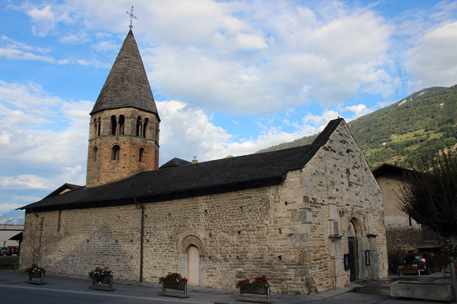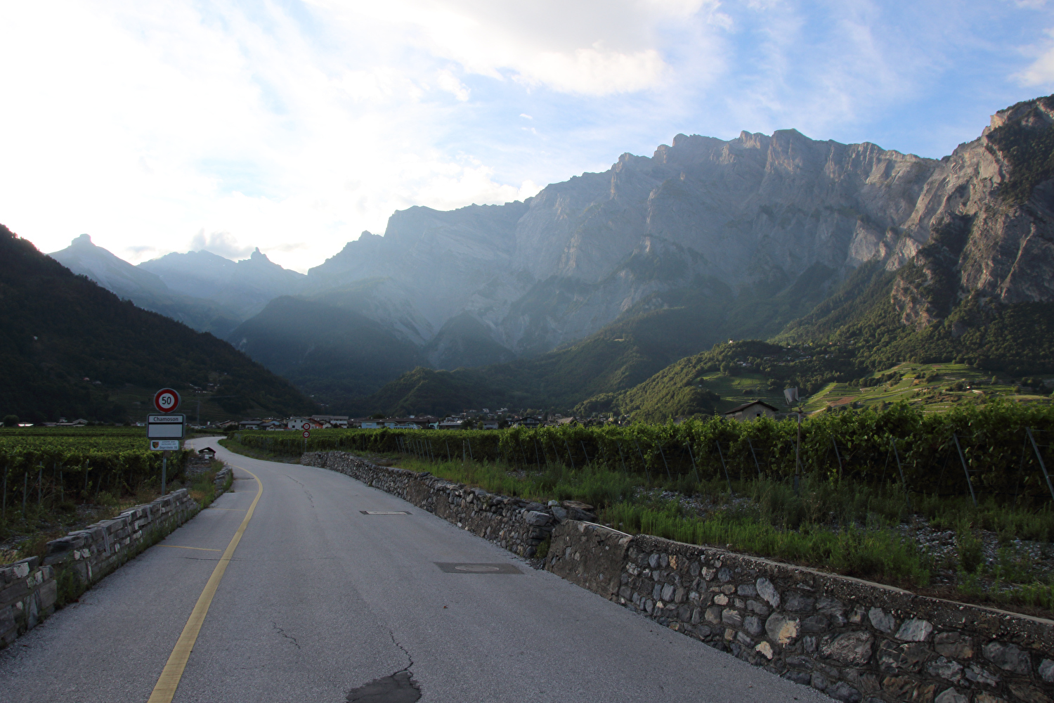 Beschreibung | Nach der „Alpenpässe-Resterampe“-Tour durch die Ostalpen im Jahr zuvor gab es für diese Tour nur zwei Möglichkeiten, entweder eine Wiederholungstat in den Ostalpen oder eine Tour durch die Westalpen und somit auch durch Teile Frankreichs. Die Wahl fiel auf letzteres. Die Anfahrt zum Hauptbahnhof Hannover erfolgte bei Starkregen. Dort angekommen prangte auf der Abfahrtstafel „Zug fällt aus“. Das wäre der durchgehende ICE nach Basel SBB gewesen, dort mit durchgehendem Anschluss nach Visp. Im Reisebüro gab es dann noch eine Verbindung mit verfügbarem Fahrradstellplatz eine Stunde später jedoch nicht durchgehend sondern mit Umstieg in Frankfurt (Main) Hauptbahnhof. Tatsächlich musste aber in Frankfurt (Main) Süd umgestiegen werden, da der Hauptbahnhof zu der Zeit für den Fernverkehr gesperrt war, weil ein Lkw eine Eisenbahnbrücke vor dem Hauptbahnhof, der als Kopfbahnhof letztlich nur eine Zufahrtsrichtung hat, beschädigt hatte. Da kam schon die Frage auf, warum eine so wichtige Eisenbahnbrücke nicht besser gegen Kollisionen mit Lkw geschützt ist. Der Umstieg in Frankfurt (Main) Süd verlief extrem hektisch, da der Zug den Bahnhhof verspätet erreichte und der Anschlusszug schon auf dem Gleis wartete. Und das war nicht das Gleis gegenüber am selben Bahnsteig. Die Ankunft in Basel SBB erfolgte ca. 1½ Stunden später als gebucht. Die durchgehende Verbindung von Basel SBB nach Visp hatte sich damit auch erledigt. Es gab nur noch Verbindungen mit Umstieg in Bern. In der Schweiz verkehrten die Züge pünktlich! Da ein Aufenthalt in Basel SBB sinnfrei gewesen wäre, wurde der nächste Zug nach Bern genommen, wo dann aber eine halbe Stunde Aufenthalt anfielen, weil werktags tagsüber die Relation Basel SBB↔Bern zwar im Halbstundentakt bedient wird, die Relation Bern↔Visp jedoch nur im Stundentakt. Die Ankunft am Bahnhof Chamoson-Saint-Pierre-de-Clages erfolgte zwei Stunden später als gebucht und mit vier statt wie gebucht zwei Umstiegen. Saint-Pierre-de-Clages liegt bereits westlich des Röstigrabens und somit im französischsprachigen Teil der Schweiz, der Romandie (Suisse romande). Damit wurde sprachlich schon der Tourverlauf durch Frankreich vorweg genommen. Nach der extrem ätzenden Bahnanreise war die kurze Fahrradfahrt mit einigen Höhenmetern bergauf nach Chamoson der angenehmste Teil dieses Tourstarts. In Saint-Pierre-de-Clages kreuzte die Route an der romanischen Kirche die Route der am 03.08.2015 gefahrenen Etappe. Wegen der schon deutlich vorgerückten Uhrzeit wurde auf einen Gang in die Kirche dieses Mal verzichtet. |