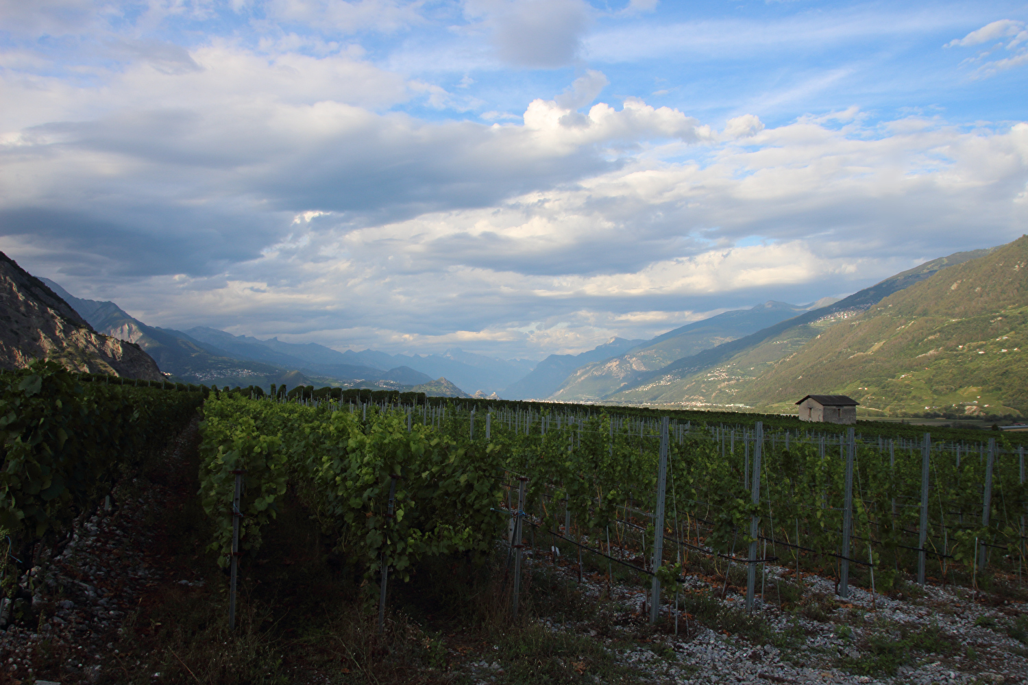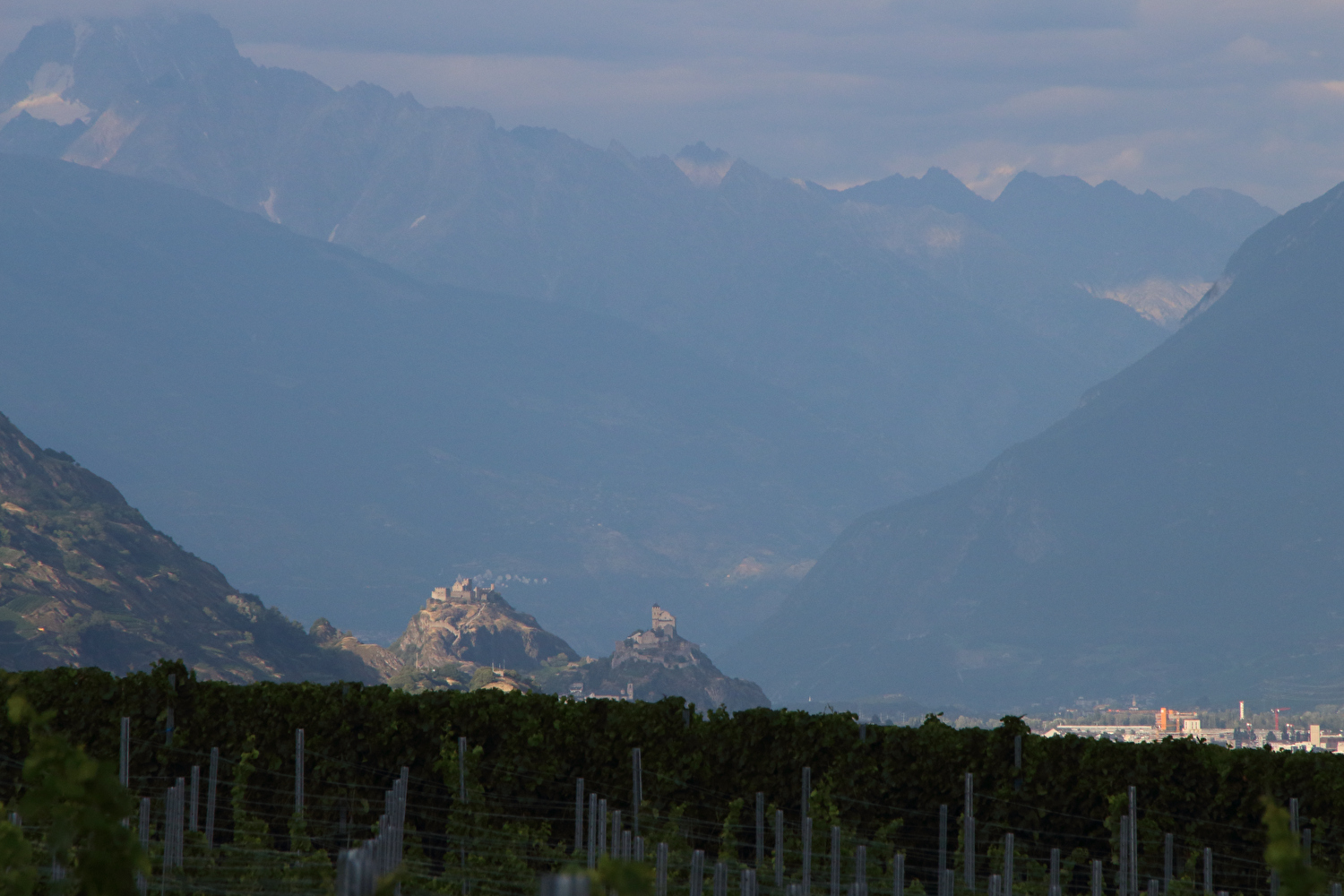 zwischen Saint-Pierre-de-Clages und Chamoson, Blick ins Vallée du Rhône talaufwärts ![]() 300 dpi JPEG |