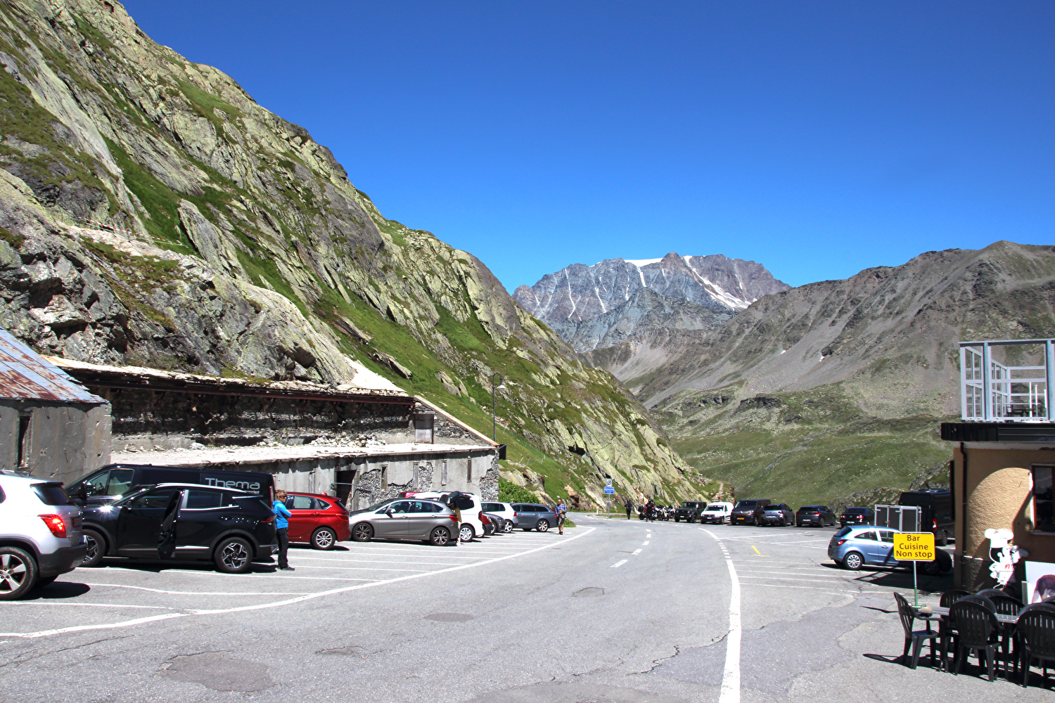 wenige Meter weiter, Blick auf Passhöhe mit Hospiz und zum Mont Vélan … ![]() 300 dpi JPEG |