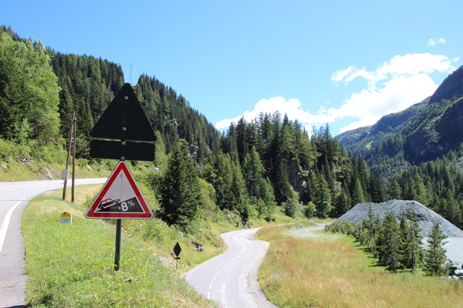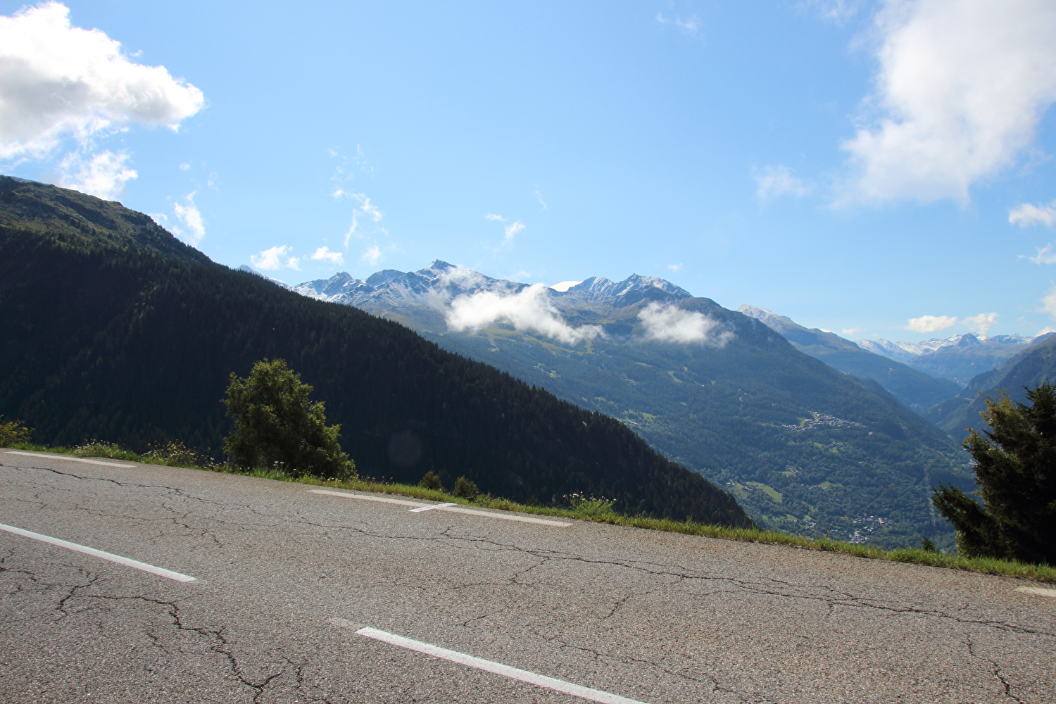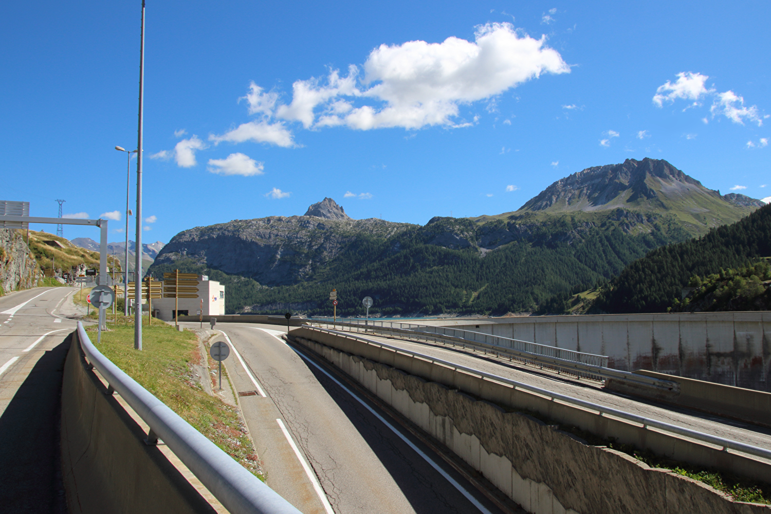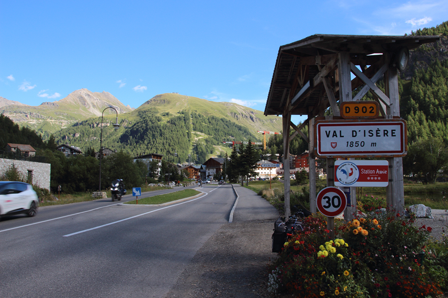 Beschreibung | Der Regen vom Vortag hatte sich über Nacht verzogen und die Etappe verlief bei sonnigem Wetter. Am Morgen hingen noch einige Wolken in den Bergen, die sich mit steigendem Sonnenstand mehr und mehr auflösten. In den höchsten Lagen lag eine dünne Schicht Neuschnee. Nach der dritten Kehre unterhalb von La Rosière teilt sich die Südwestrampe des Col du Petit Saint-Bernard. Von der Straße nach Séez zweigt die Route «Les Villages» nach Sainte-Foy-Tarentaise ab, die aufgrund der schmalen Fahrbahn und enger Kehren für schwere oder lange Fahrzeuge ungeeignet ist. Direkt nach dem Abzweig beginnt auf der Route «Les Villages» eine optische Hochrisikozone. Die Fahrbahn ist dort auf einer Länge von ca. 190 m rosa gestrichen und darauf in weißen Lettern der Ortsname La Rosière immer wechselweise bergauf oder bergab lesbar aufgetragen. Man kann es mit der Werbung auch übertreiben. Wenn die Fahrt im Vallée de l'Isère talabwärts fortgesetzt werden soll, ist die Straße nach Séez die richtige Wahl. Wenn jedoch die Fahrt im Vallée de l'Isère talaufwärts fortgesetzt werden soll, ist die Straße nach Sainte-Foy-Tarentaise die richtige Wahl. Gegenüber dem Umweg über Séez werden 16 km Strecke und 188 Höhenmeter bergauf gespart. In Sainte-Foy-Tarentaise treffen somit die unteren Enden der Südwestrampe des Col du Petit Saint-Bernard und die Nordrampe des Col de l’Iseran aufeinander. Bei der Fahrt im Vallée de l'Isère talaufwärts muss erst in Sainte-Foy-Tarentaise entschieden werden, über welchen der beiden Pässe gefahren werden soll. In Séez müssen Fahrer kleinerer Fahrzeuge und damit auch Fahrradfahrer diese Entscheidung noch nicht treffen. Die Nennung des talabwärts gelegenen Bourg-Saint-Maurice als Talort einer der beiden Pässe ist aktuell komplett sinnfrei und mag allenfalls historisch begründet sein. Zwischen Sainte-Foy-Tarentaise und Val d’Isere hat sich die Isère sehr tief in das Tal eingeschnitten. Die Nordrampe des Col de l’Iseran verläuft daher weit oberhalb des Flusses im rechten Hang. Der Fluss ist nur selten zu sehen, dafür aber der eine oder andere Gletscher hoch am linken Hang. An der Nordrampe liegt eine Ortschaft mit dem Namen La Thuile, die nicht mit der gleichnamigen Ortschaft an der Nordostrampe des Col du Petit Saint-Bernard in Italien verwechselt werden sollte. Mit einer maximalen Steigung von 8 % lässt sich die Nordrampe bis Val d'Isere gut treten. Mit dem Erreichen der Barrage du Chevril tut sich eine weitere optische Problemzone auf. Nach dem hässlichen Abzweig Richtung Tignes dominieren in Tignes und Val d'Isere Bettenburgen die Ortsbilder. Die Bezeichnung Tarentaise, die häufig für den oberen Teil des Vallée de l'Isère verwendet wird, schließt neben dem Tal auch die darin mündenden Seitentäler sowie die umliegenden Berge ein. An diesem Tag bildete die Gorges de la Daille zwischen dem Lac du Chevril und Val d'Isere eine ungewöhnlich scharfe Temperaturgrenze. Während es unterhalb der Schlucht angenehm warm war, war es trotz Sonnenschein in Val d'Isere so kalt, dass gleich am unteren Ortseingang ein langes Oberteil angezogen wurde, um nicht zu frieren. Im Quartier lief abends sogar zeitweise die Heizung. Val d'Isere war an diesem Tag ziemlich überbevölkert, aber abends kehrte wenigstens Ruhe ein. |