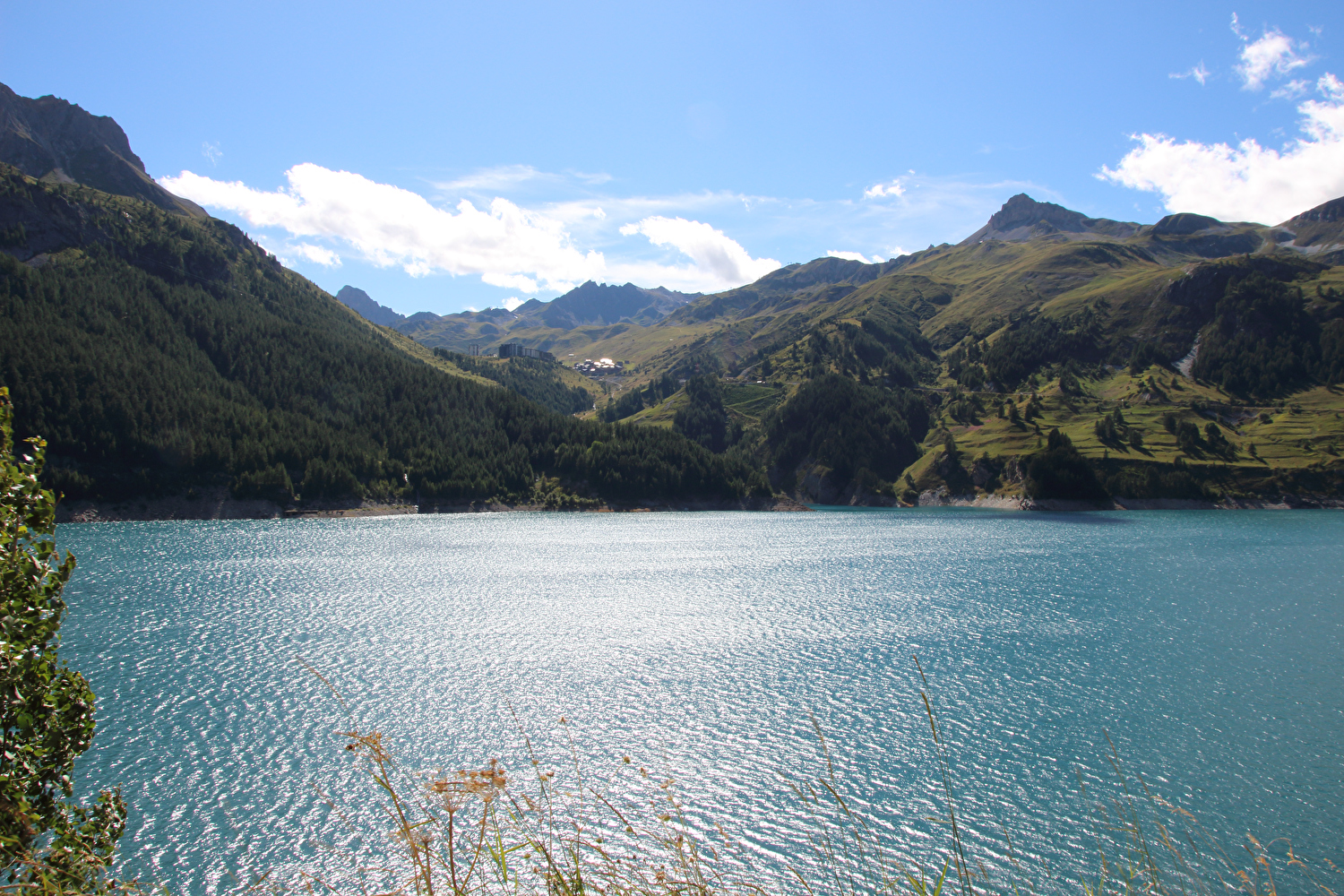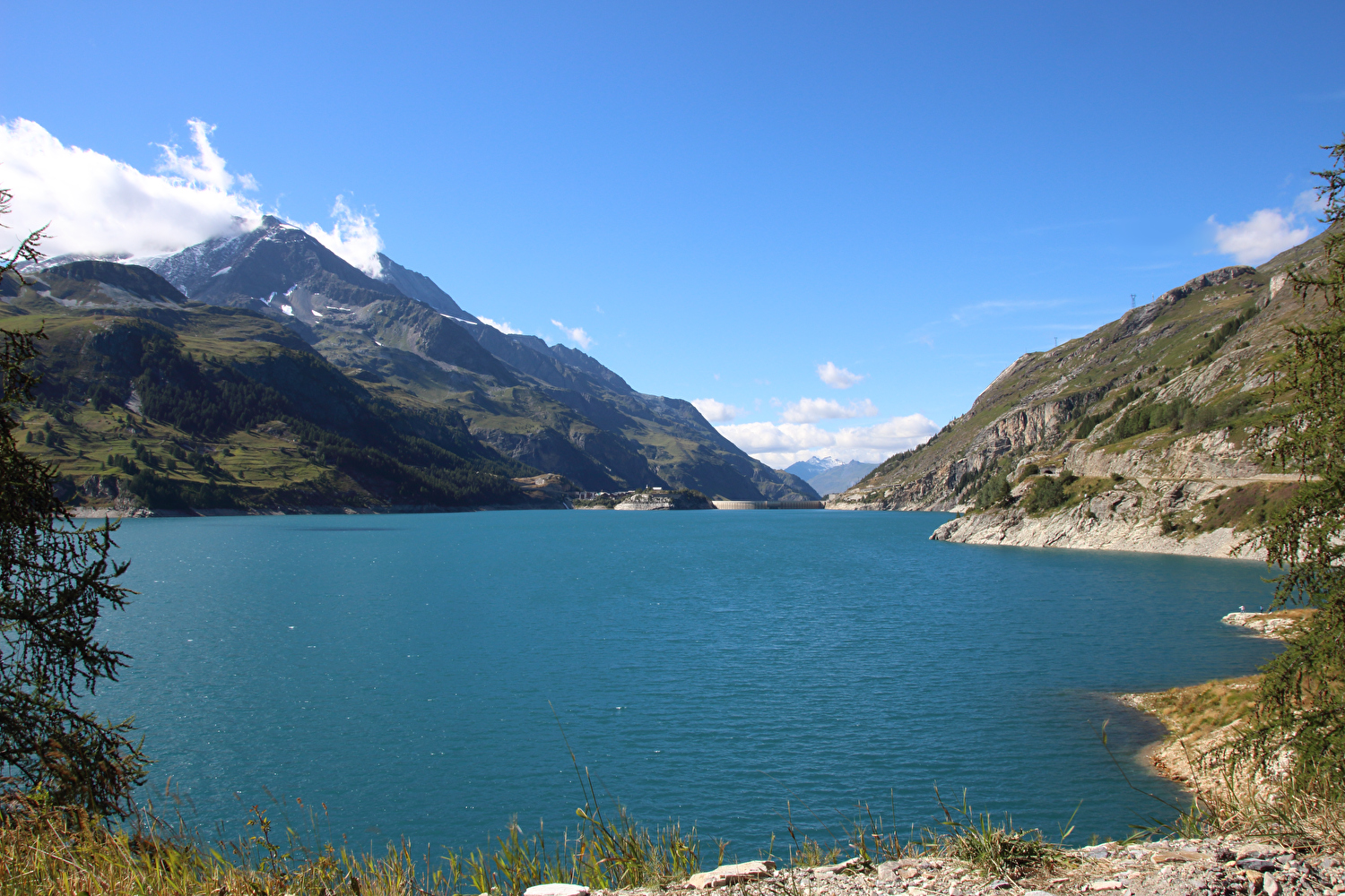 wenig weiter, Blick über den Stausee auf Pointe du Lavachet und Grande Motte am Horizont ![]() 300 dpi JPEG |