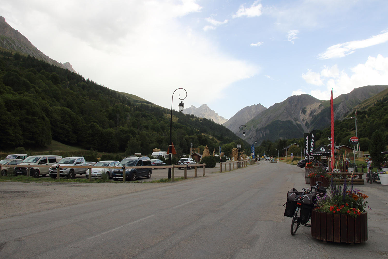Beschreibung | Die Etappe begann bei sonnigem Wetter. Im Tagesverlauf verdichtete sich die Bewölkung. Es blieb aber trocken. In Saint-Michel-de-Maurienne ging es ohne Umschweife zur Sache, also bergauf zum Col du Télégraphe. Der Col du Télégraphe ist etwas seltsam. Er verbindet das Vallée de l'Arc mit dem Vallée de la Valloirette, das knapp unterhalb von Saint-Michel-de-Maurienne ins Vallée de l'Arc mündet. Allerdings hat das Vallée de la Valloirette im untersten Teil so steile Talflanken, dass dort der Bau einer Straße extrem aufwendig wäre, sofern die Geologie diesen überhaupt zuließe. Zudem bindet die bestehende Straße mit ihren Abzweigungen mehrere Bergdörfer an das Vallée de l'Arc an. Da mussten die ohnehin bestehenden Wege nur zu Straßen ausgebaut werden, was für die Verbindung bis zur Passhöhe spätestens im Zuge der Errichtung der Fort du Télégraphe notwendig wurde. An der Nordrampe des Col du Télégraphe sind Kilometersteine für Radfahrer aufgestellt. Der Pass wird meist in Kombination mit dem Col du Galibier, der von Norden kommend nur über den Col du Télégraphe erreichbar ist, stark von Radfahrern, zumeist Rennradfahrern frequentiert. Bis Valloire quält sich aber auch reichlich Stinkeverkehr über die Passstraße. Das untere Ende der Nordrampe des Col du Galibier, das irgendwo in der Nähe des Place de la Mairie in Valloire liegen muss, ließ sich nicht auffinden. Da es im Ortszentrum recht hektisch zuging, wurde auch nicht allzu lange danach gesucht. Bis zum untersten Kilometerstein für Radfahrer an der Nordrampe des Col du Galibier führt die Straße schon ein Stück bergauf. Ab diesem Kilometerstein folgten längere Schiebepassagen in Steilstücken. Trotzdem war die Fortsetzung dieser Etappe bis Les Verneys sinnvoll, denn nur so ließen sich die insgesamt zu überwindenden 2086 Höhenmeter bergauf von Saint-Michel-de-Maurienne bis zum Col du Galibier in zwei einigermaßen gleich schwere Etappen aufteilen. |