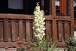 Zoom auf blühende Große Fetthenne (Sedum telephium) und Fädige Palmlilie (Yucca filamentosa) ![]() 300 dpi JPEG |