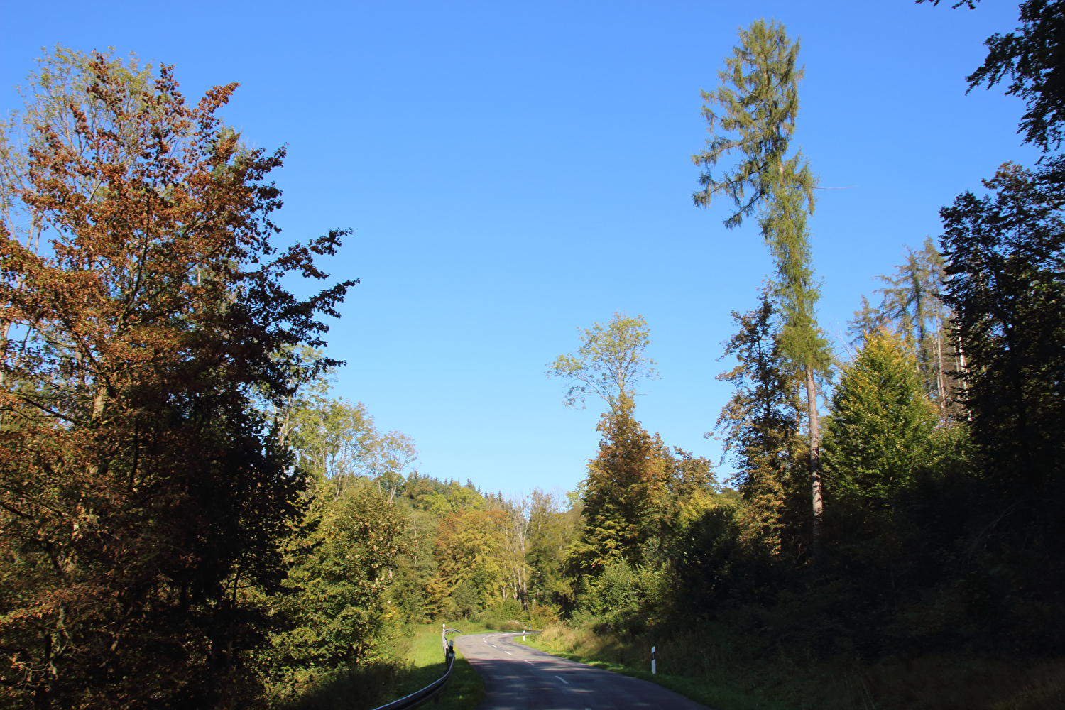 Beschreibung | Von der Rhône an die Weser, aus dem Hochgebirge (Alpen) in die traurigen Reste eines einstigen Hochgebirges (Weserbergland als Teil der Mitteleuropäischen Mittelgebirgsschwelle) war schon ein harter Kontrast. Dafür war wenigstens nochmal Fahrradwetter. Allerdings sollte dieser Tag auch der letzte Tag in diesem Jahr mit Wetter für eine längere Fahrradtour gewesen sein. Durch den schon recht tiefen Sonnenstand im Jahr wurden zum Ende der Tour hin die Schatten im Hooptal länger. |