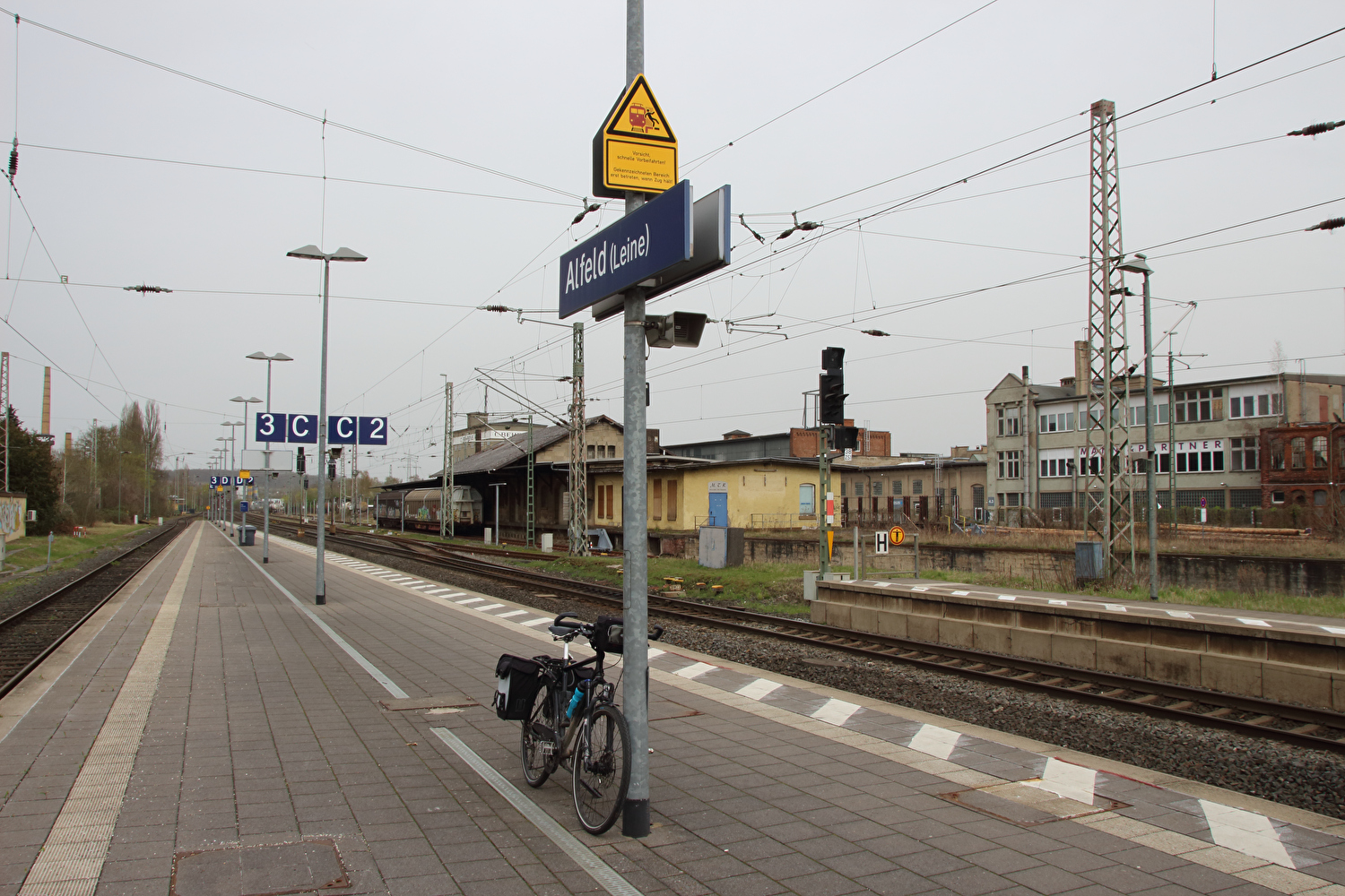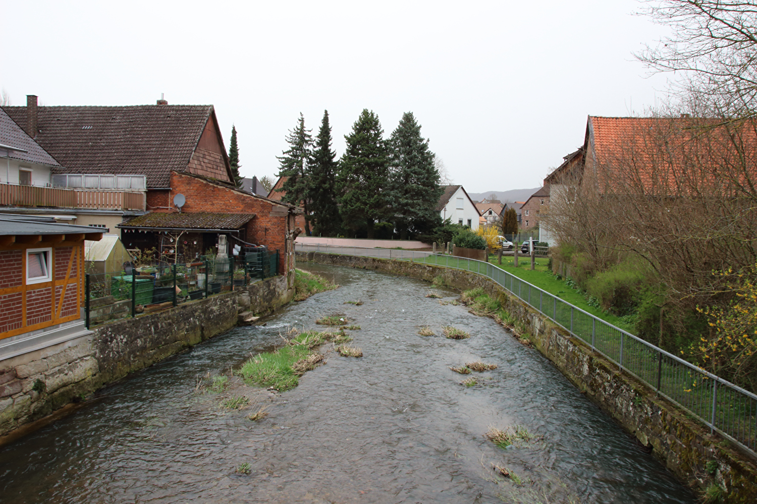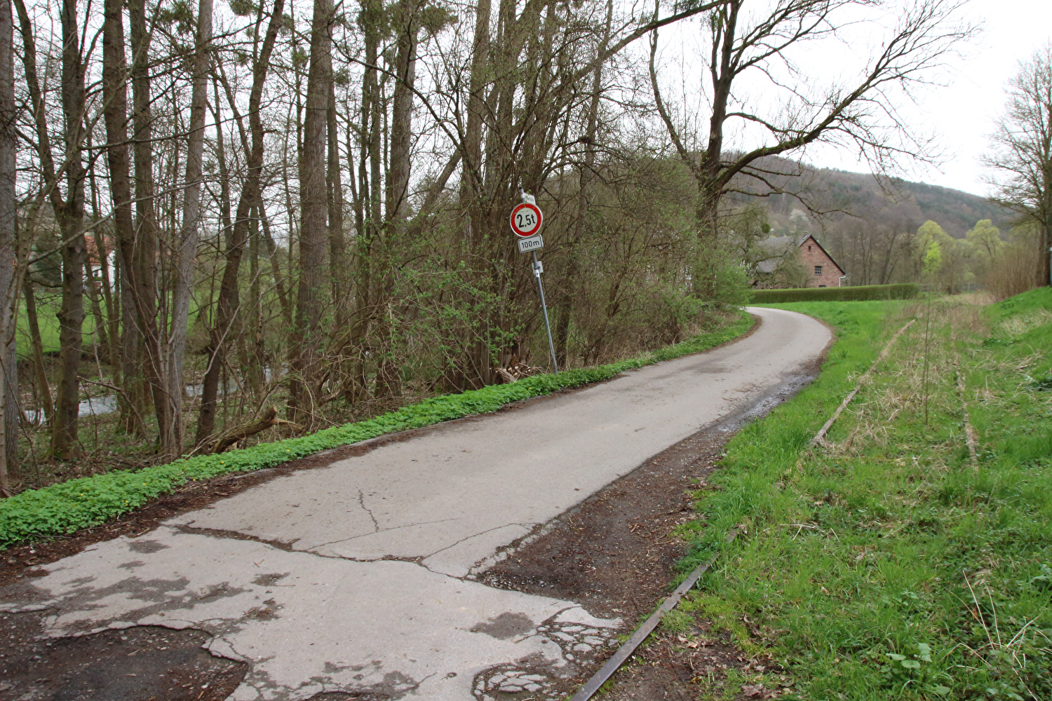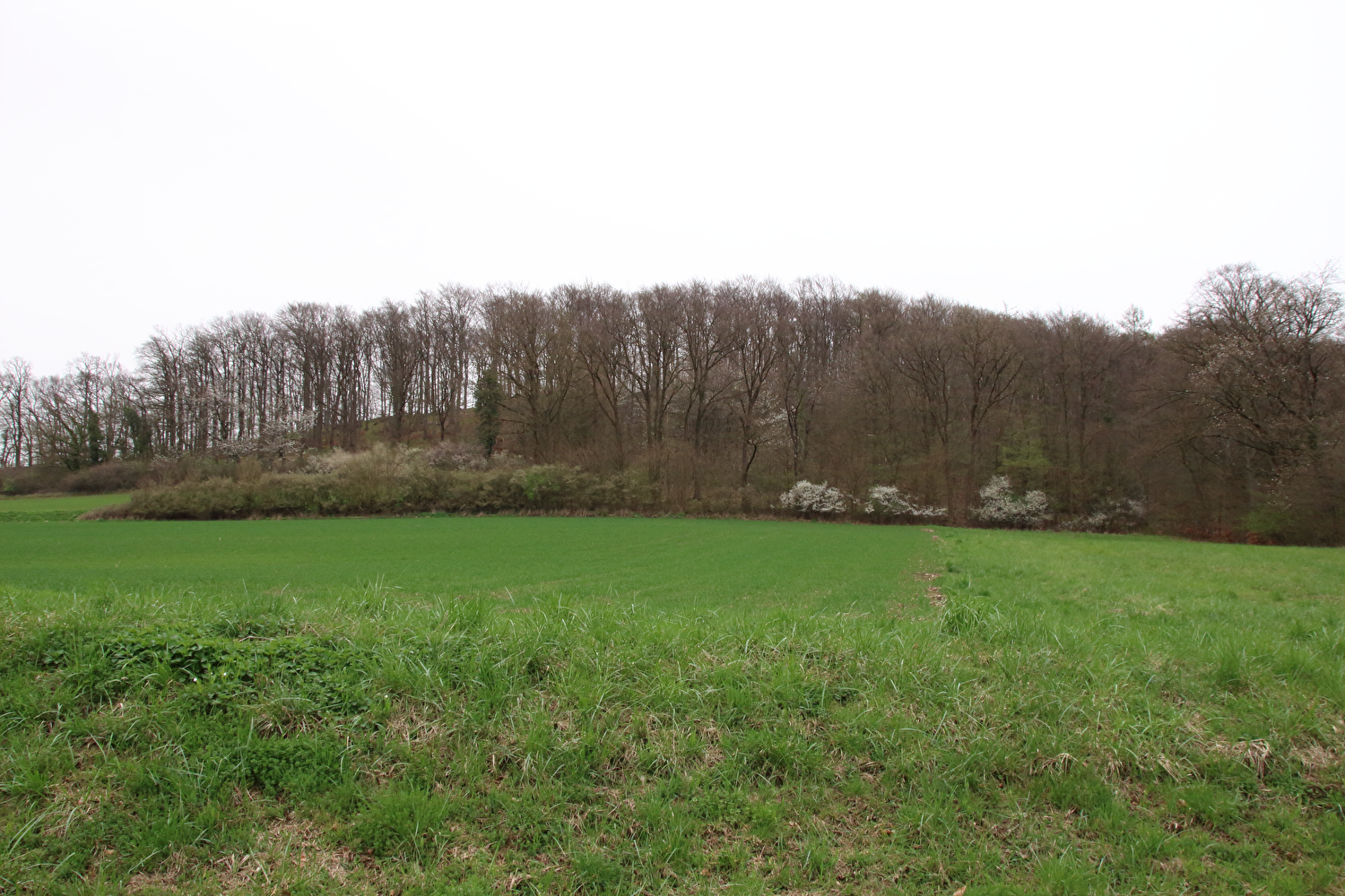 Eigentlich sollte dieser Tag der erste warme Tag in diesem Jahr werden und somit die erste Gelegenheit für eine lange Tour bieten. Mit einer südwestlichen Strömung wurde für die Jahreszeit recht warme Luft heran geführt. Diese aus Afrika stammende Luftmasse hatte allerdings auch extrem viel Sahara-Staub mit im Gepäck. An diesen Staubteilchen kondensierte so viel Wasser, dass sich eine strukturlose geschlossene Wolkendecke bildete, die der Sonne keine Chance ließ. Der Sahara-Staub allein hätte nicht ausgereicht, die Sonne komplett zu verdecken, sondern nur zu einem mehr oder weniger eingetrübten Sonnenschein geführt. An der ungewöhnlichen Farbe der geschlossenen Wolkendecke dürfte der Sahara-Staub hingegen einen Anteil gehabt haben. Ohne Sonnenschein reichte es auch nur für etwa +17 °C während der Tour. Laubbäume und Sträucher zeigten teilweise frischen Laubaustrieb, der Schwarzdorn blühte gerade. In der trüben Lichtstimmung kam das alles nicht so richtig zur Geltung. Dafür blieb der Stinkeverkehr an diesem Tag weitgehend aus. Bei Sonnenschein hätte sich im Weserbergland wahrscheinlich eine Abgasfahne an die nächste gereiht.