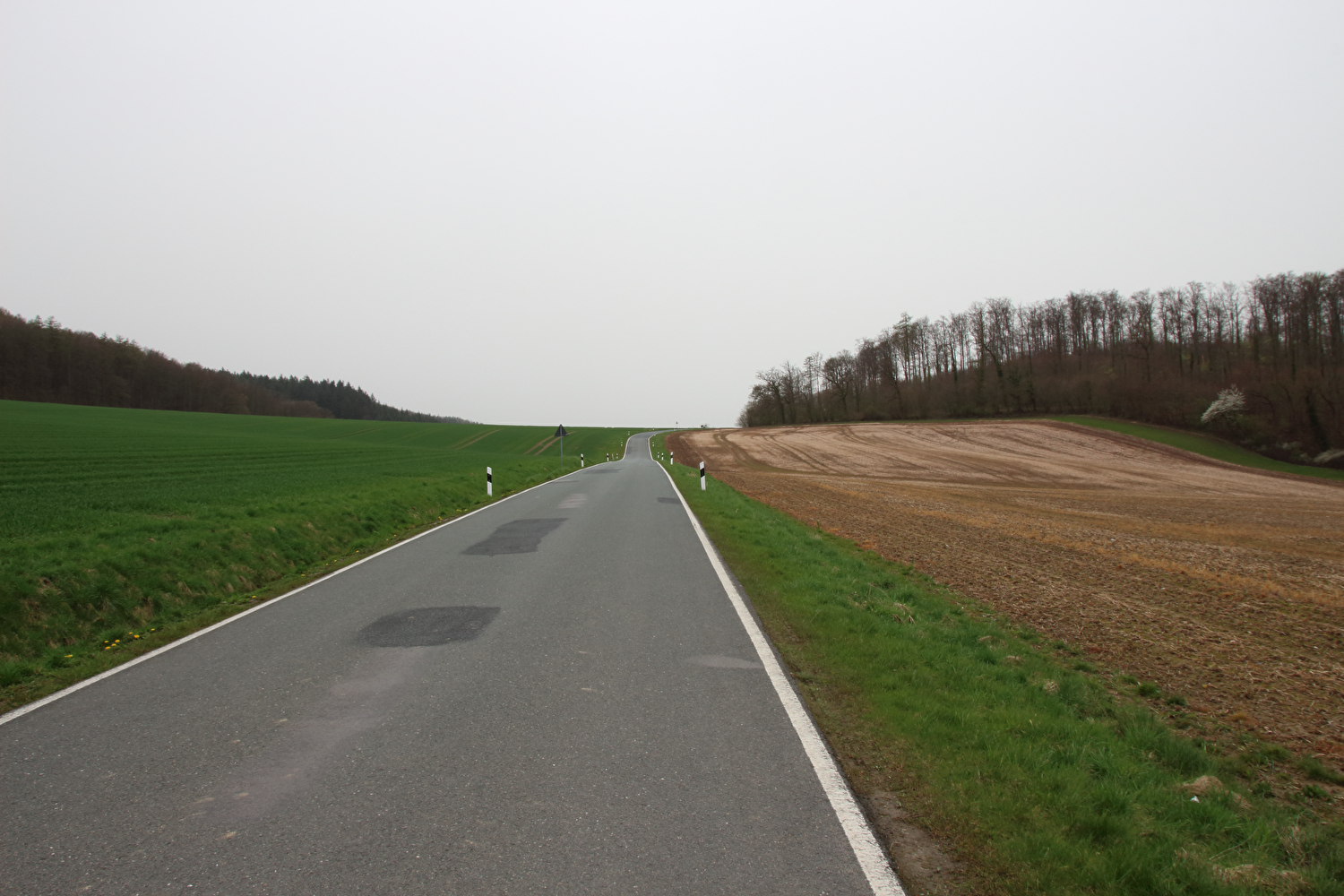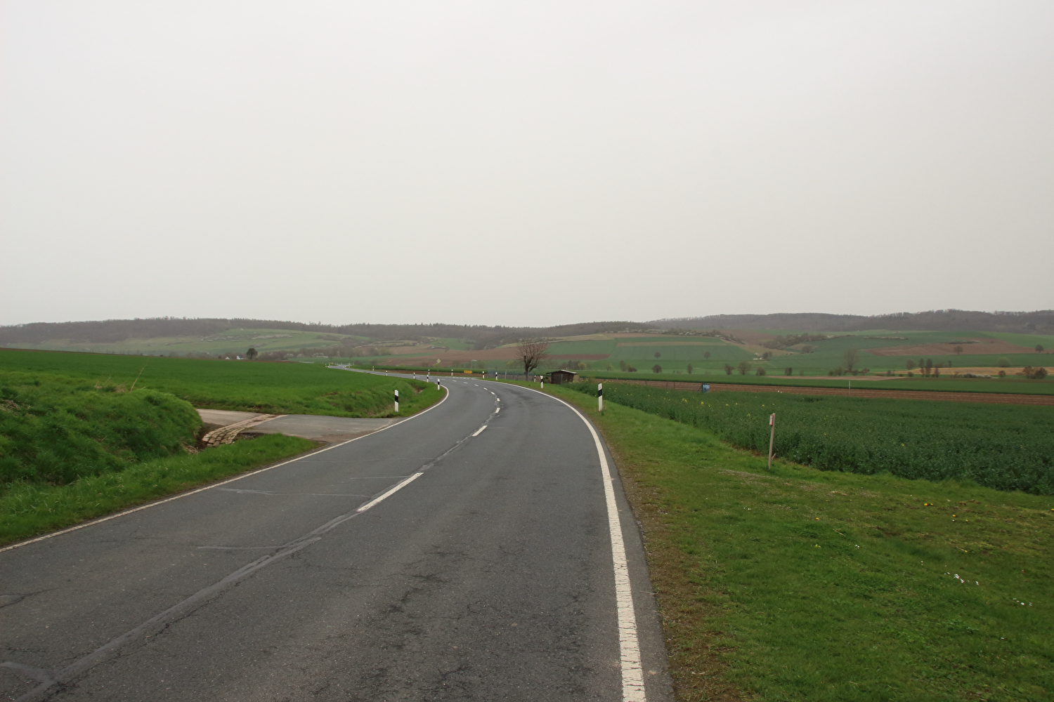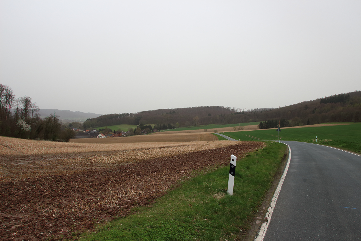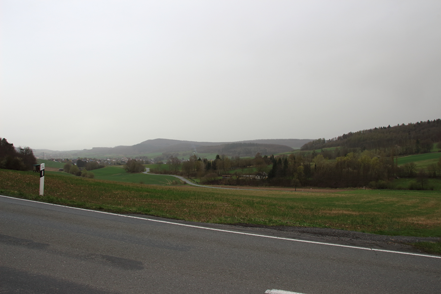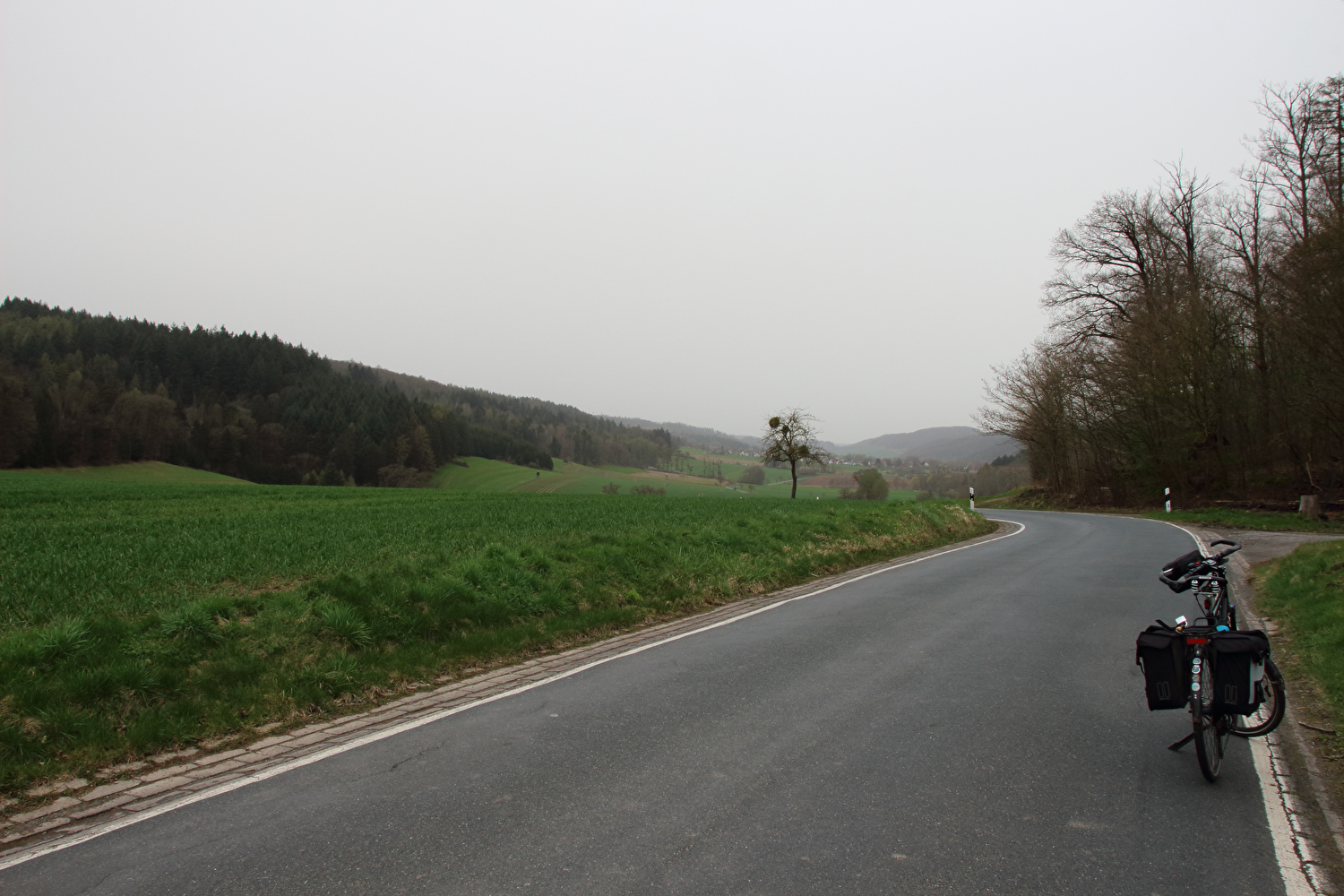 Die Straße zwischen Völkershausen und Börry über den Hasselburg war vor dieser Tour immer nur von Norden nach Süden gefahren worden. Für die erste Fahrt in der Gegenrichtung wäre wie auch überhaupt für die erste lange Tour in diesem Jahr wenigstens etwas Sonnenschein schön gewesen.