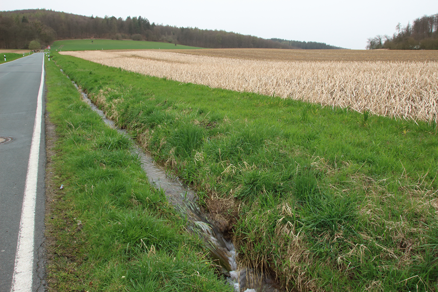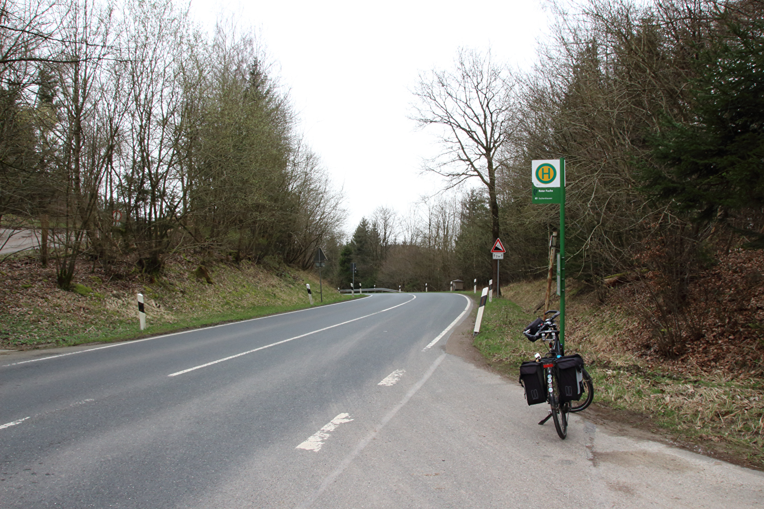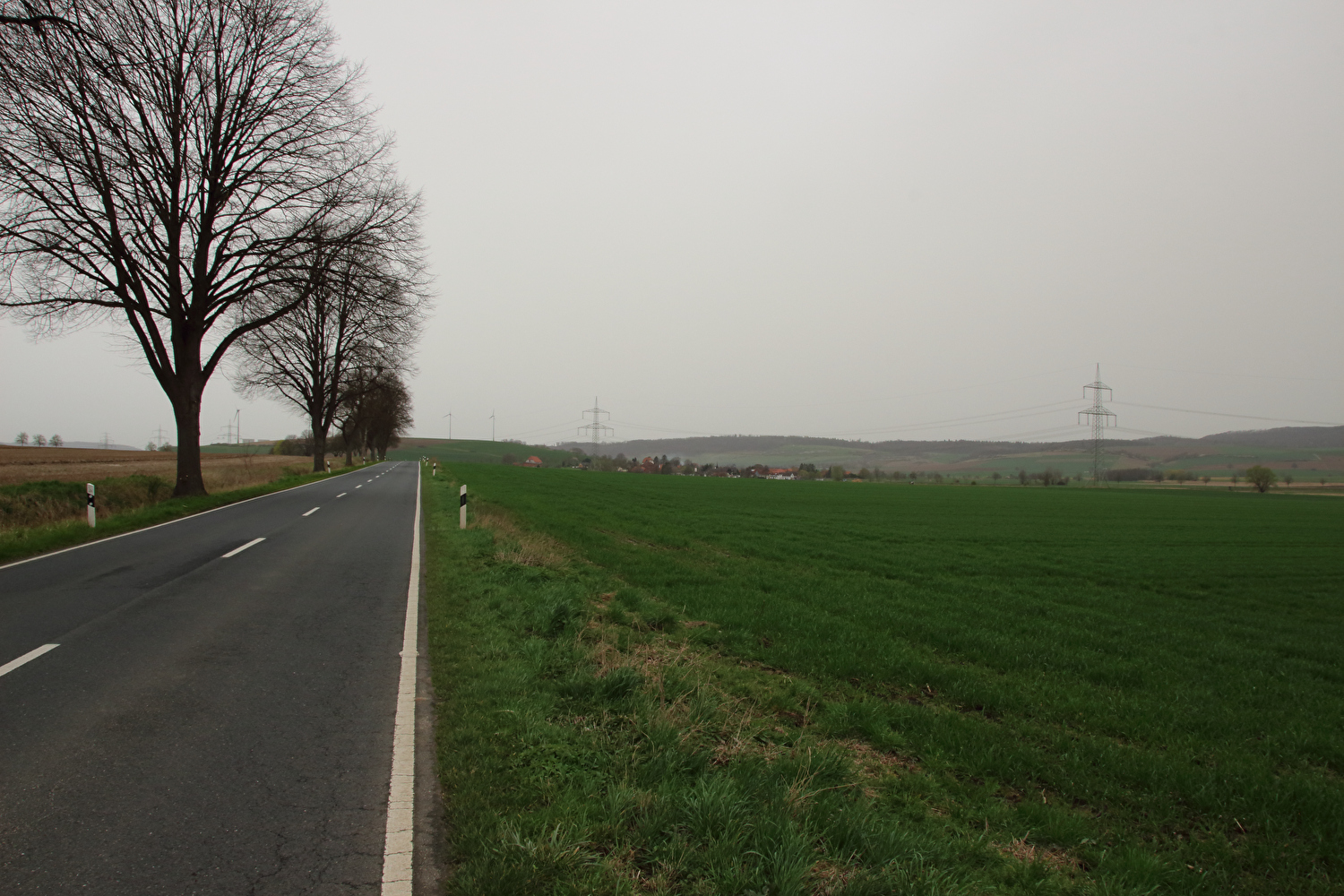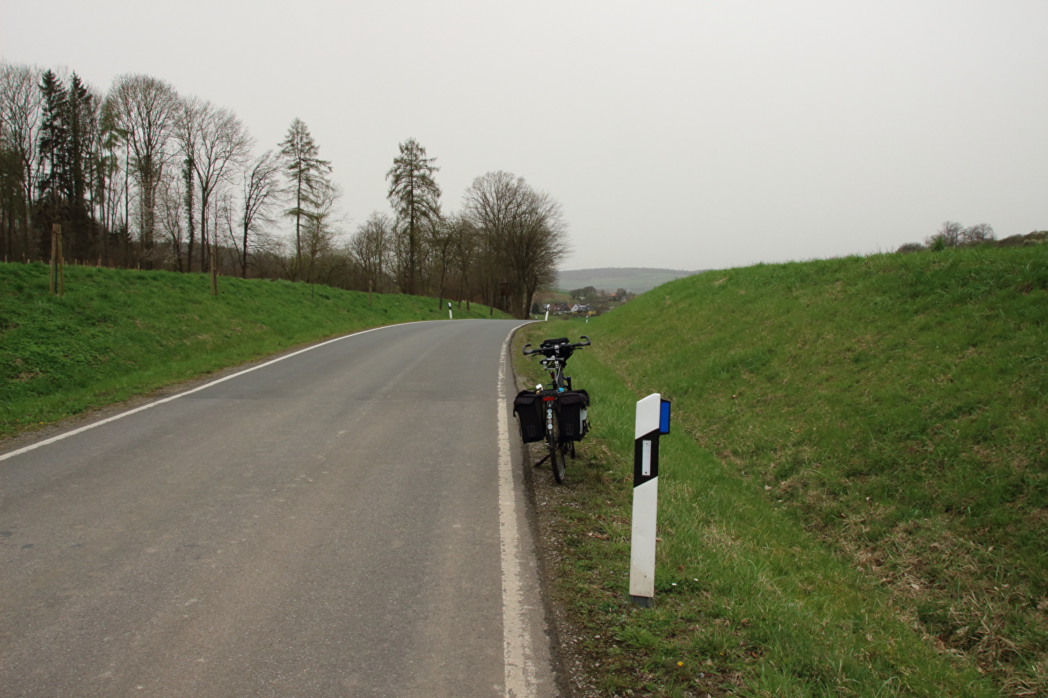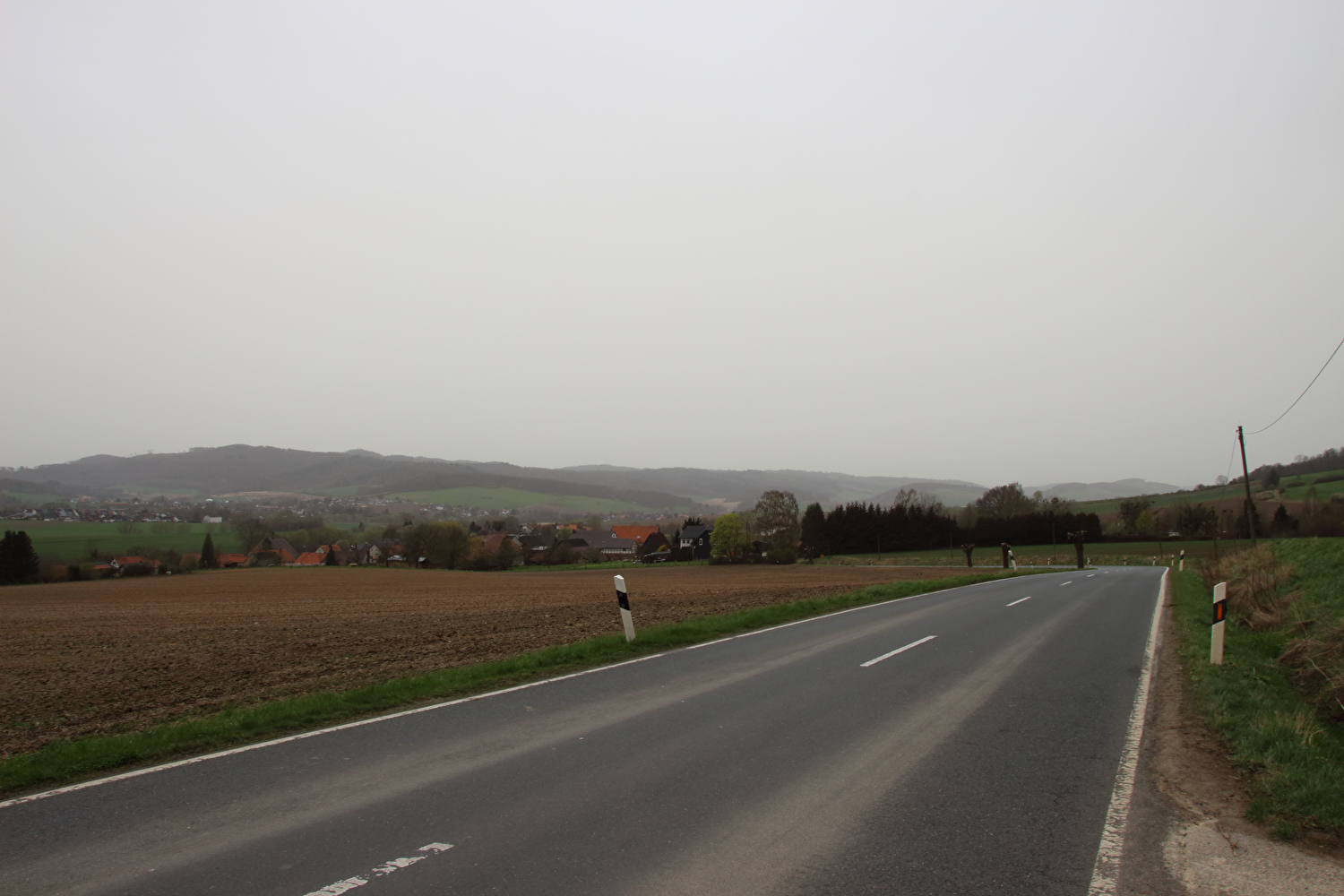 Die Straße zwischen Völkershausen und Börry über den Hasselburg war vor dieser Tour immer nur von Norden nach Süden gefahren worden. Für die erste Fahrt in der Gegenrichtung wäre wie auch überhaupt für die erste lange Tour in diesem Jahr wenigstens etwas Sonnenschein schön gewesen.