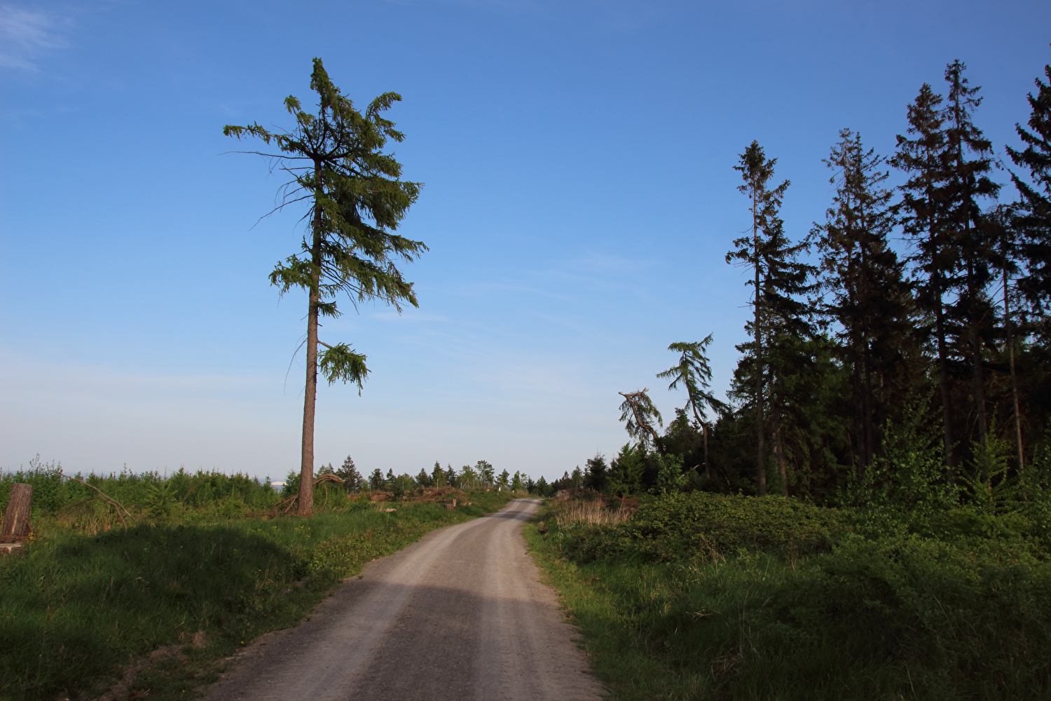 Vom Kalenberg bot sich eine gute Fernsicht vor allem nach Norden, da dort wegen Schäden durch Trockenheit und Borkenkäfer kein Wald stand.