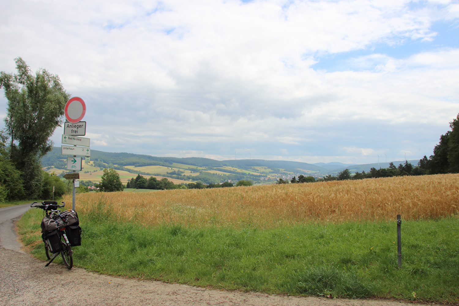 Ab Bad Hersfeld blieb es an diesem Tag bis zum Ende der Etappe trocken. Bei wechselnder Bewölkung setzte sich die Sonne nur gelegentlich durch und es war für die Jahreszeit zu kalt. Mit der Überquerung der Fulda in Bad Hersfeld führte die Etappe direkt in die Rhön. In auf den parallel zur Straße geführten Eitratal-Radweg gewechselt. Bei Eiterfeld wechselte die Etappe von den Haune-Hochflächen in die Soisberger Kuppenrhön, einem Teil der Westlichen Kuppenrhön. In Eiterfeld wurde auf den Kegelspiel-Radweg aufgefahren, der bei Großentaft wieder verlassen wurde.