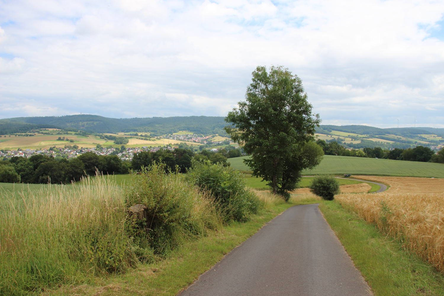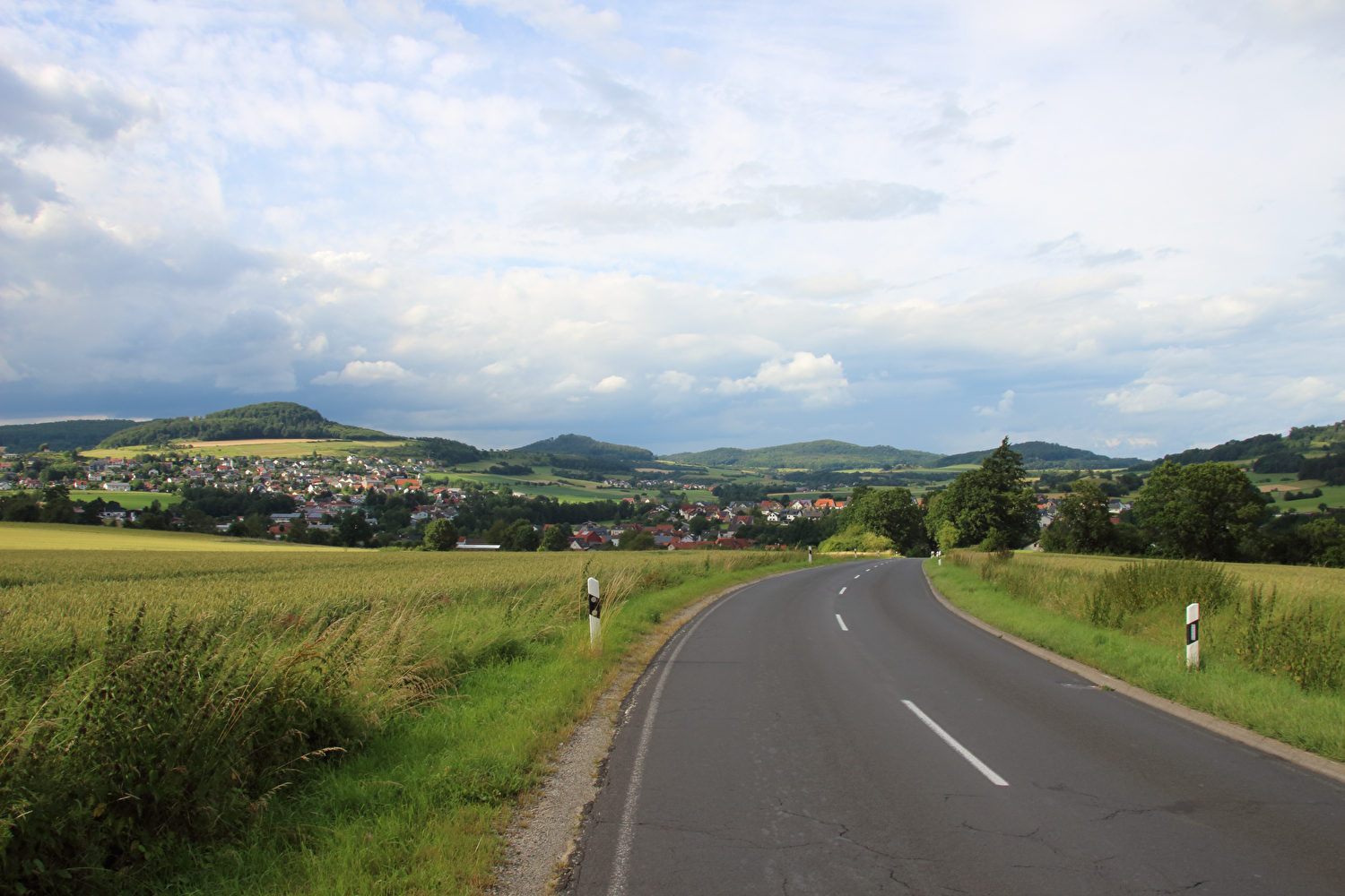 Hannover, Anfahrt zum Hauptbahnhof – Bahnfahrt: Hannover Hbf. – Kassel-Wilhelmshöhe – Bad Hersfeld – Bad Hersfeld (202) – Johannesberg (319) – Unterhaun (213) – Oberhaun (217) – Sieglos (222) – Eitra (227) – Buchenau (265) – Arzell (295) – Eiterfeld (310) – Leibolz (371) – Großentaft (315) – B84 (394) – B84 Abzweig L3258 (332)– Haselstein (441) – L3258 (454) – Mittelaschenbach (362) – Hofaschenbach (365) – Morles (324) – L3258 (432) – Hofbieber (384)