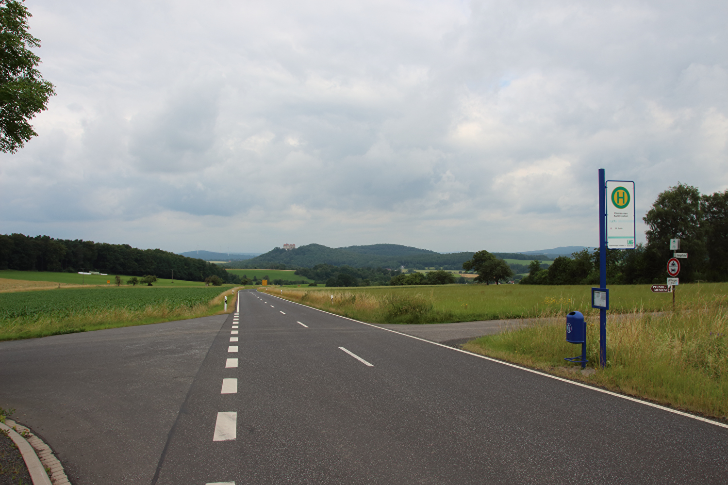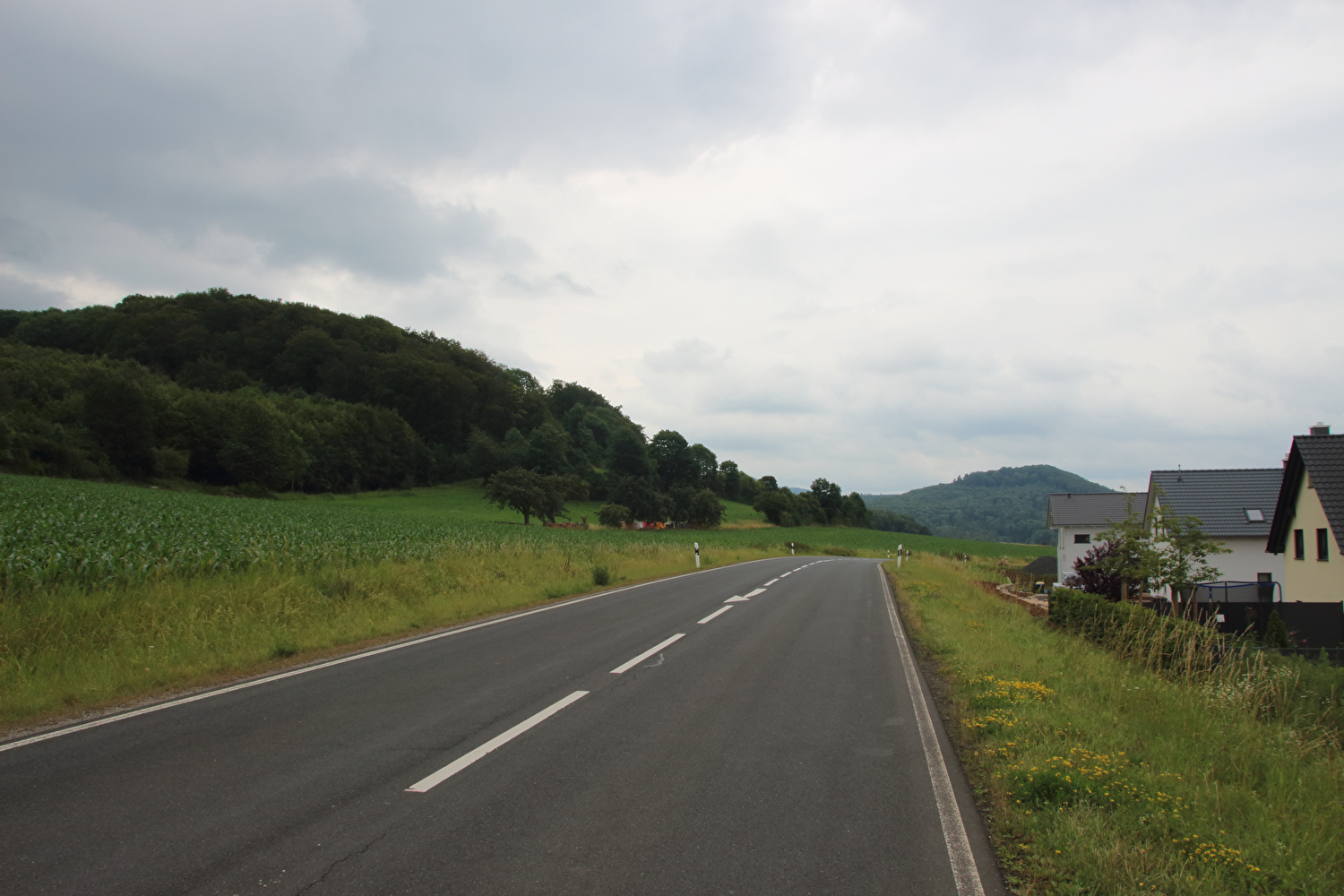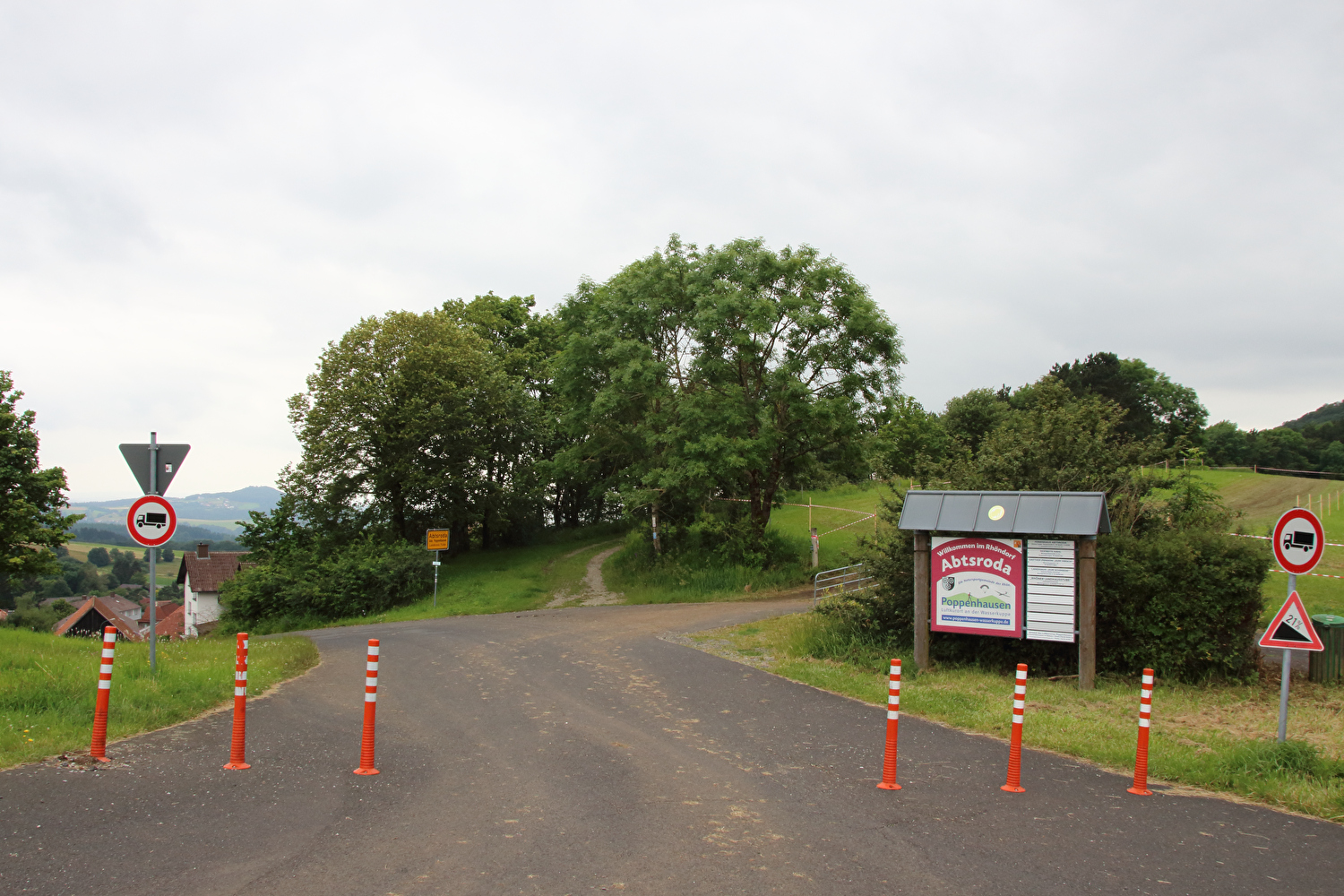 An diesem Tag blieb es bedeckt und für die Jahreszeit zu kalt, aber bis über den 1. Sattelpunkt der Etappe hinaus noch trocken. Wohl witterungsbedingt wurden die Straßen nur von wenig Stinkeverkehr heimgesucht. Insbesondere waren kaum Knatterpötte unterwegs. In Langenbieber oder Schackau wäre ein Wechsel auf den Milseburgradweg bis Rupsroth möglich gewesen. Bei sonnig warmem Wetter mit entsprechend Stinkeverkehr auf den Straßen wäre das sicherlich eine Alternative gewesen. Allerdings liegt im Verlauf dieses Radweges ein 1172 m langer ganzjährig kühler Tunnel, dessen Durchquerung sich nicht gerade aufdrängt, wenn es draußen schon zu kalt und durch eine geschlossene Wolkendecke tagsüber recht dunkel ist. Der 1. Sattelpunkt der Etappe war ein namenloser Pass im Verlauf der L3379 am Abzweig nach Danzwiesen. Auf dessen Passhöhe steht aber wenigstens ein Schild mit Höhenangabe. Mit der Nordauffahrt von Rupsroth zur Wasserkuppe stand eine Streckenwiederholung an. Diese Nordauffahrt war erstmalig am