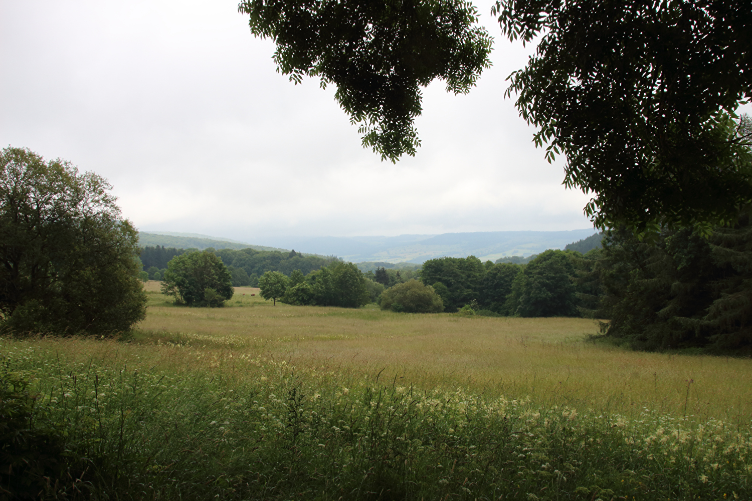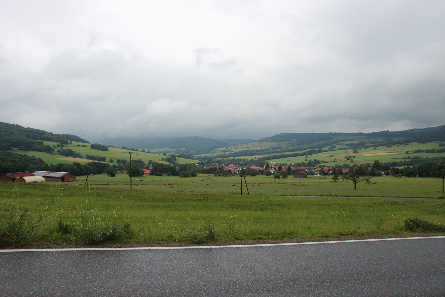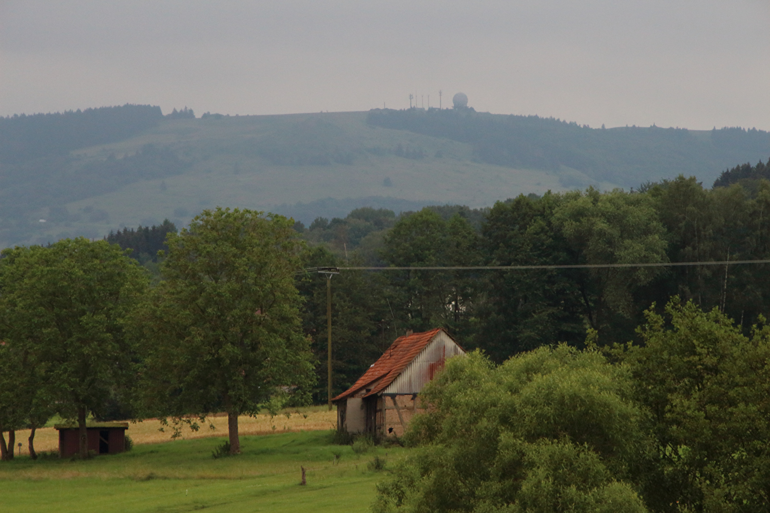 Kurz nach Verlassen der Fuldaquelle setzte der Regen wieder ein um wenn auch mit nachlassender Intensität bis zum Etappenende zu bleiben. Weiter unten lag wenigstens nicht mehr die Wolkenunterkante auf Höhe Schuhsohle. In Wüstensachsen wurde das Ulstertal erreicht. Zum Etappenende in Hilders im Regen blieb das Läuten der Motivklingel aus, weshalb die Spiegelreflexkamera dort im Gepäck blieb.