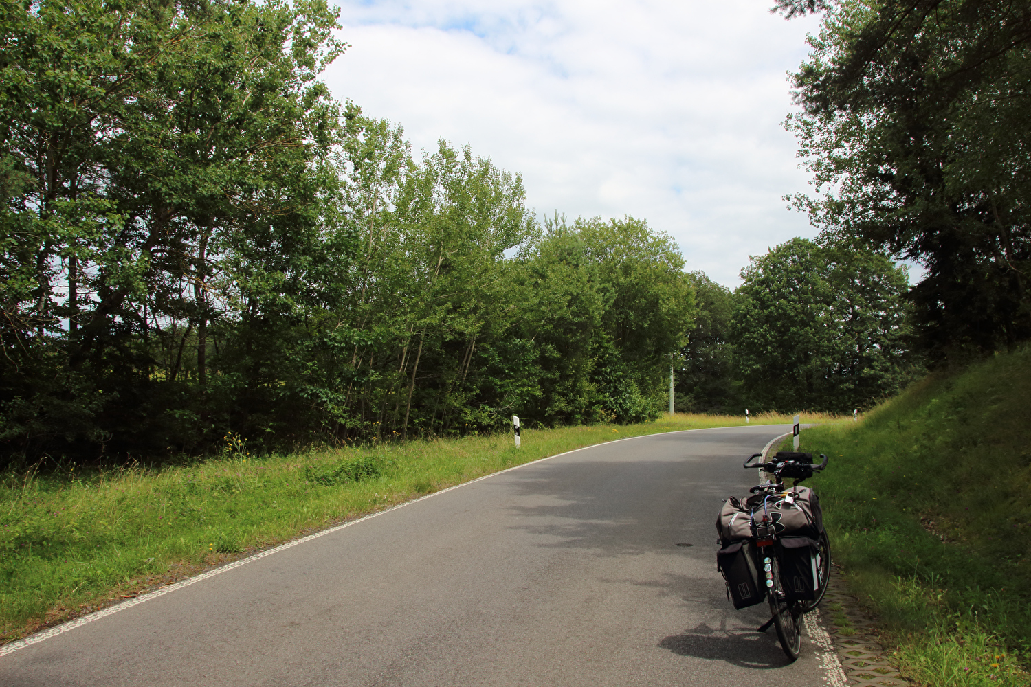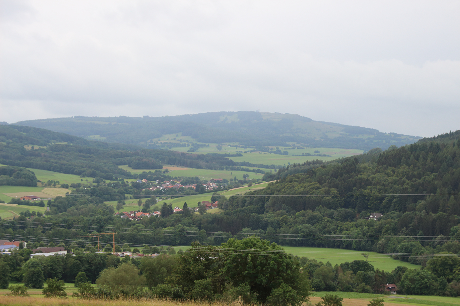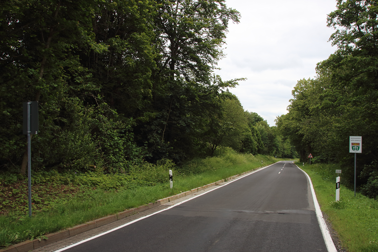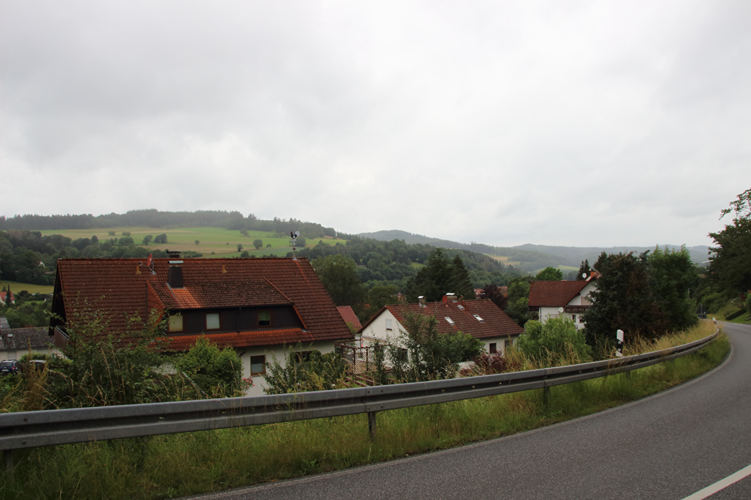Das Ulstertal ist bei Hilders recht eng, weshalb Hilders großenteils im Hang liegt. Daher begann gleich ab dem Nachtquartier der längste Anstieg dieser Etappe zum „Dach der Etappe“. Die Etappe begann bei bedecktem Himmel und es war für die Jahreszeit zu kalt. Während des Anstiegs bot sich ein letzter Blick auf die Wasserkuppe. Im oberen Bereich des Anstiegs wurde die Lange Rhön, die Teil der Hohen Rhön ist, erreicht. Die Lange Rhön besteht im Wesentlichen aus einem Hochplateau, das Landschaftbild unterscheidet sich entsprechend deutlich von dem der Wasserkuppenrhön. Mit dem Parkplatz Rhönwald wurde das „Dach der Etappe“ erreicht. Unmittelbar danach wurden die Rhein-Weser-Wasserscheide aus dem Einzugsgebiet der Weser kommend in das Einzugsgebiet des Rheins gelangend und die ehemalige Zonengrenze, deren Verlauf in diesem Bereich derzeit die Landesgrenze zwischen Hessen und Thüringen bildet, überquert. Am Ostrand von Frankenheim (Rhön) geht die Lange Rhön in den Ostabfall der Langen Rhön über. Dort fällt das Gelände recht steil zum Streutal, in dem Fladungen liegt, hin ab. Zwischen Frankenheim (Rhön) und Leubach wurde erneut die ehemalige Zonengrenze, deren Verlauf in diesem Bereich derzeit die Landesgrenze zwischen Thüringen und Bayern bildet, passiert, und zwar von Westen aus Thüringen kommend nach Osten in den nördlichsten Teil Bayerns gelangend. Mit Fladungen wurde die Stadt in Deutschland erreicht, die am weitesten von ihren Landeshauptstadt, in diesem Fall München, entfernt liegt. Mit Fladungen wurde das Östliche Rhönvorland erreicht. Die Westrampe des namenlosen Passes im Verlauf der NES30 zwischen Fladungen und Sands enthält ein längeres Steilstück, das materialschonend schiebend überwunden wurde. Mit der Passhöhe wurde erneut die Rhein-Weser-Wasserscheide überquert, dieses Mal aus dem Einzugsgebiet des Rheins kommend in das Einzugsgebiet der Weser gelangend. Kurz vor Stedtlingen wurde von der Straße auf den Sülzetalradweg gewechselt. Der Sülzetalradweg ist ein Abschnitt des europäischen Radfernweges „EuroVelo 13 - Iron Curtain Trail“, der, sollte er jemals komplett fertig gestellt werden, von der Barentssee bis ans Schwarze Meer führen wird. Zwischen Fladungen und Sülzfeld schien hin und wieder die Sonne durch einzelne Lücken in der Wolkendecke. Für die Jahreszeit zu kalt blieb es trotzdem. In Stillhof erfolgte der Wechsel vom Sülzetalradweg auf den Werratal-Radweg, auf dem bis Untermaßfeld gefahren wurde. Mit der Überquerung der Werra in Obermaßfeld-Grimmenthal wurde die Rhön im Rahmen dieser Tour entgültig verlassen. Kurz nach der Überquerung der Werra setzte Regen ein, der bis zum Etappenende anhielt. Die Fahrt bis zum Etappenziel führte durch das zweite Haseltal im Rahmen dieser Tour, das von der Hasel (Werra) durchflossen wird. Vom Kloster Rohr bis Heinrichs wurde auf dem Haseltal-Radweg gefahren, der mehr oder weniger parallel zur Straße geführt ist. Mit dem Etappenziel wurde der Thüringer Wald erreicht.