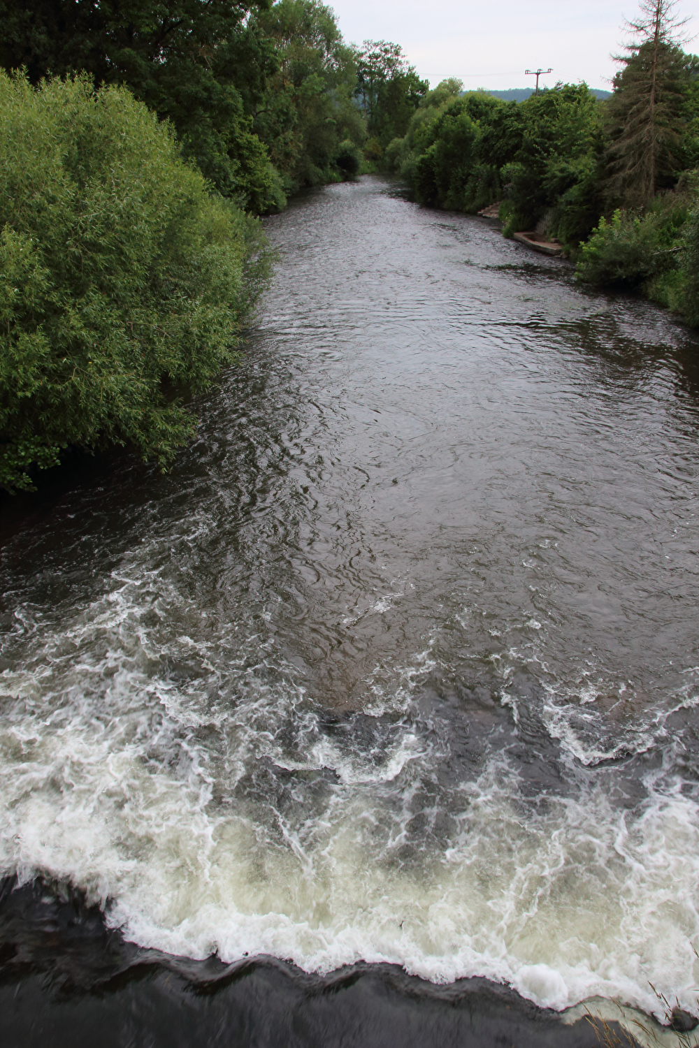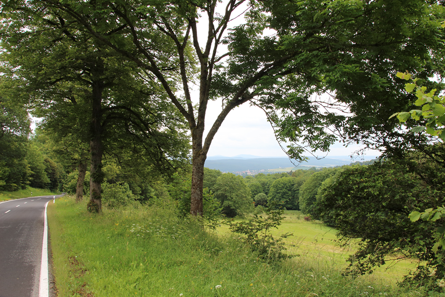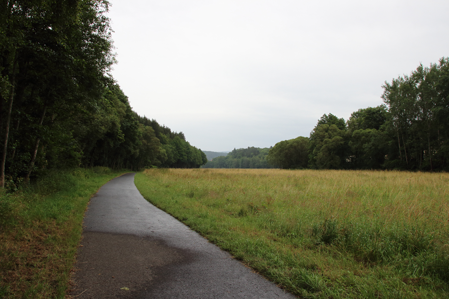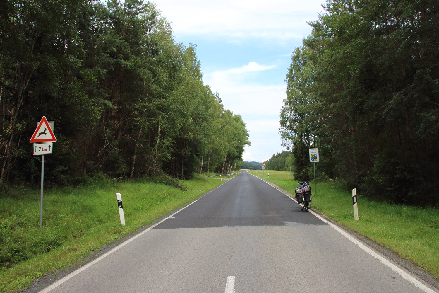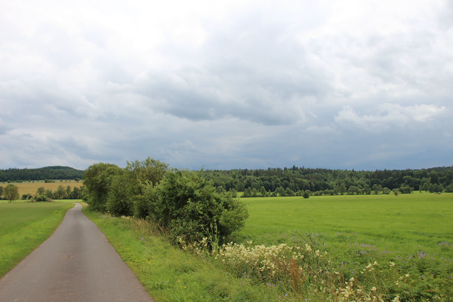 Das Ulstertal ist bei Hilders recht eng, weshalb Hilders großenteils im Hang liegt. Daher begann gleich ab dem Nachtquartier der längste Anstieg dieser Etappe zum „Dach der Etappe“. Die Etappe begann bei bedecktem Himmel und es war für die Jahreszeit zu kalt. Während des Anstiegs bot sich ein letzter Blick auf die Wasserkuppe. Im oberen Bereich des Anstiegs wurde die Lange Rhön, die Teil der Hohen Rhön ist, erreicht. Die Lange Rhön besteht im Wesentlichen aus einem Hochplateau, das Landschaftbild unterscheidet sich entsprechend deutlich von dem der Wasserkuppenrhön. Mit dem Parkplatz Rhönwald wurde das „Dach der Etappe“ erreicht. Unmittelbar danach wurden die Rhein-Weser-Wasserscheide aus dem Einzugsgebiet der Weser kommend in das Einzugsgebiet des Rheins gelangend und die ehemalige Zonengrenze, deren Verlauf in diesem Bereich derzeit die Landesgrenze zwischen Hessen und Thüringen bildet, überquert. Am Ostrand von Frankenheim (Rhön) geht die Lange Rhön in den Ostabfall der Langen Rhön über. Dort fällt das Gelände recht steil zum Streutal, in dem Fladungen liegt, hin ab. Zwischen Frankenheim (Rhön) und Leubach wurde erneut die ehemalige Zonengrenze, deren Verlauf in diesem Bereich derzeit die Landesgrenze zwischen Thüringen und Bayern bildet, passiert, und zwar von Westen aus Thüringen kommend nach Osten in den nördlichsten Teil Bayerns gelangend. Mit Fladungen wurde die Stadt in Deutschland erreicht, die am weitesten von ihren Landeshauptstadt, in diesem Fall München, entfernt liegt. Mit Fladungen wurde das Östliche Rhönvorland erreicht. Die Westrampe des namenlosen Passes im Verlauf der NES30 zwischen Fladungen und Sands enthält ein längeres Steilstück, das materialschonend schiebend überwunden wurde. Mit der Passhöhe wurde erneut die Rhein-Weser-Wasserscheide überquert, dieses Mal aus dem Einzugsgebiet des Rheins kommend in das Einzugsgebiet der Weser gelangend. Kurz vor Stedtlingen wurde von der Straße auf den Sülzetalradweg gewechselt. Der Sülzetalradweg ist ein Abschnitt des europäischen Radfernweges „EuroVelo 13 - Iron Curtain Trail“, der, sollte er jemals komplett fertig gestellt werden, von der Barentssee bis ans Schwarze Meer führen wird. Zwischen Fladungen und Sülzfeld schien hin und wieder die Sonne durch einzelne Lücken in der Wolkendecke. Für die Jahreszeit zu kalt blieb es trotzdem. In Stillhof erfolgte der Wechsel vom Sülzetalradweg auf den Werratal-Radweg, auf dem bis Untermaßfeld gefahren wurde. Mit der Überquerung der Werra in Obermaßfeld-Grimmenthal wurde die Rhön im Rahmen dieser Tour entgültig verlassen. Kurz nach der Überquerung der Werra setzte Regen ein, der bis zum Etappenende anhielt. Die Fahrt bis zum Etappenziel führte durch das zweite Haseltal im Rahmen dieser Tour, das von der Hasel (Werra) durchflossen wird. Vom Kloster Rohr bis Heinrichs wurde auf dem Haseltal-Radweg gefahren, der mehr oder weniger parallel zur Straße geführt ist. Mit dem Etappenziel wurde der Thüringer Wald erreicht.