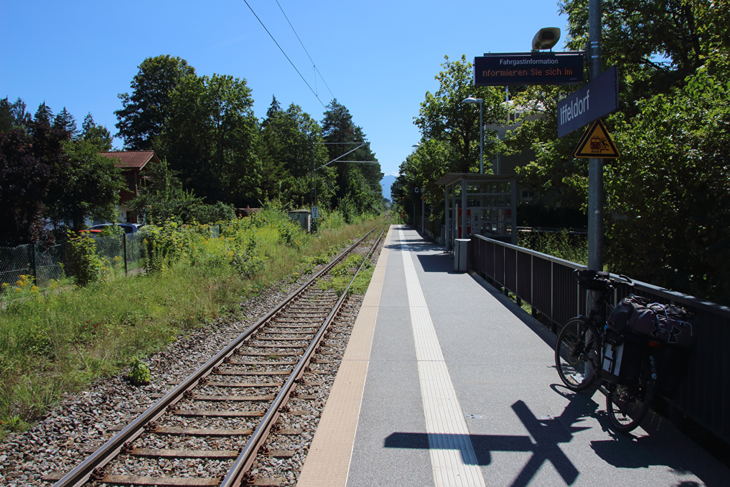 Ursprünglich war die Bahnanreise bis Kochel am See geplant worden, aber schon während der weiteren Tourplanung war ein optionaler Prolog mit flachem Streckenprofil eingeplant worden. Die Bahnfahrt von Hannover nach München verlief fast pünktlich, wobei eine baustellenbedingte Fahrzeitverlängerung im Vorfeld seitens der Bahn kommuniziert worden war. Eine weitere im Vorfeld kommunizerte baustellenbedingte Fahrzeitverlängerung hätte sich irgendwo zwischen Iffeldorf und Kochel am See ergeben. Da das sonnige Wetter ohnehin einen vorzeitigen Wechsel von der Bahn auf das Fahrrad erforderte, wurde der Prolog ab Iffeldorf gestartet und somit die zweite baustellenbedingte Fahrzeitverlängerung vermieden. Von Iffeldorf aus boten sich erste Blicke auf höhere Berge in den Alpen, die aber wenig später mit der weiteren Annäherung an die Bayerischen Voralpen von ebendiesen verdeckt wurden. Ab Penzberg wurde der Radwegbeschilderung gefolgt. Am Südrand von Benediktbeuren wechselte allerdings der Belag von Asphalt auf groben Schotter, weshalb bis Ried wieder auf die Straße gewechselt wurde. In Ried wurde wieder auf den Radweg nach Kochel am See aufgefahren, der in diesem Abschnitt zumeist direkt an der Trasse der Kochelseebahn verläuft und durchgängig asphaltiert ist. Auf diesem Streckenabschnitt wird die Sicht nach Süden durch die Bayerischen Voralpen begrenzt, im Westen und Osten zeigen sich mittelgebirgige Landschaften und im Norden plattes Land. Nach einem Abstecher zum nicht für die Anreise genutzten Bahnhof Kochel wurde Kochel am See zunächst von Osten nach Westen durchquert, um noch auf die Brücke über die westlich des Ortes fließende Loisach zu gelangen. Von dieser Brücke aus bot sich flussaufwärts ein erster Blick auf den Kochelsee. Anschließend wurde das bereits bei der Ortsdurchquerung passierte Quartier angefahren.