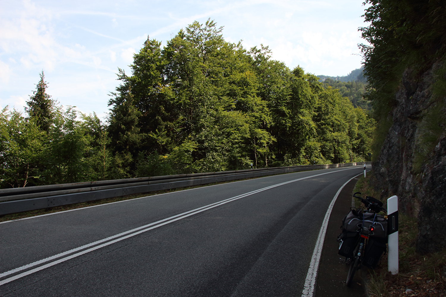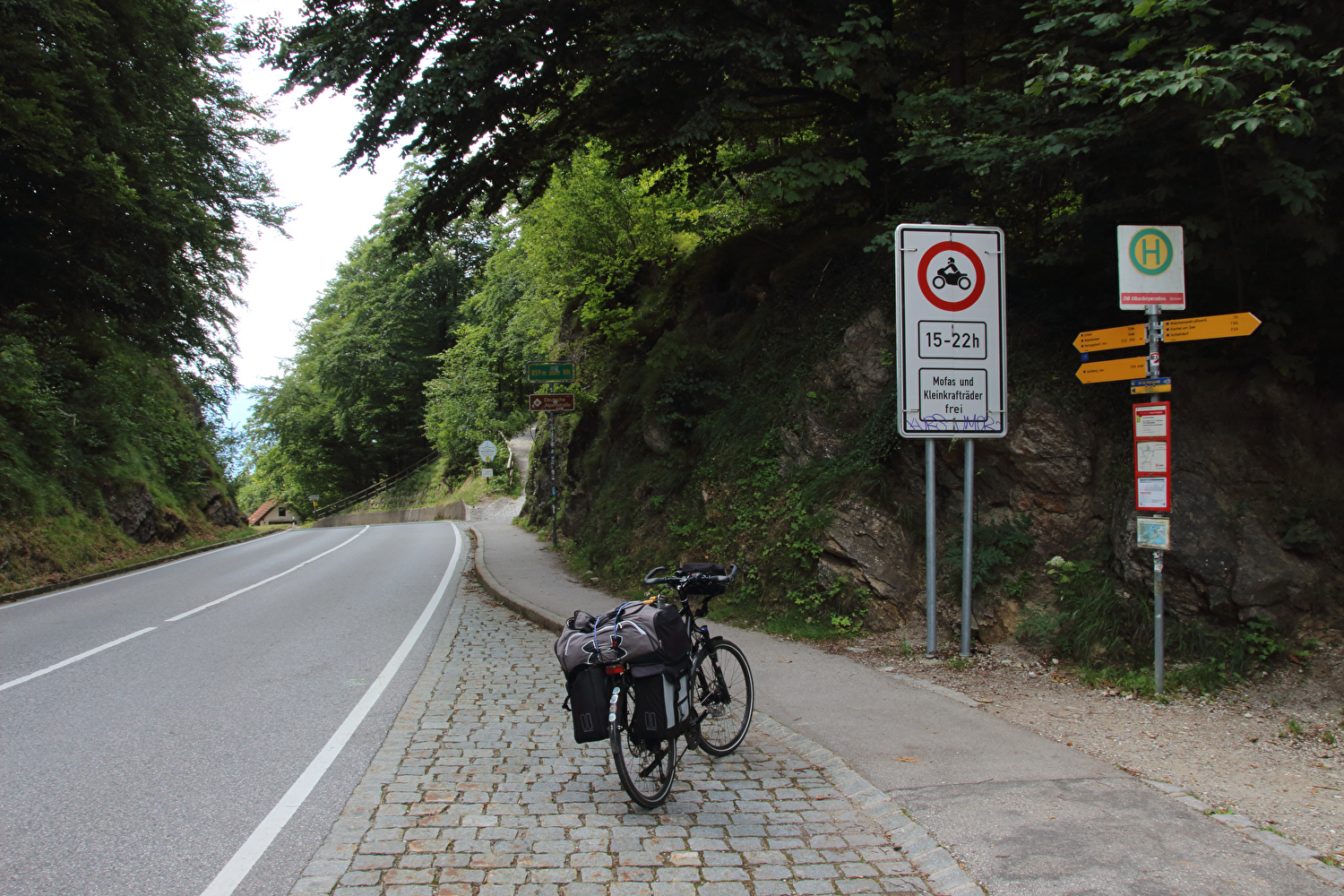 Die Fahrt auf der Neuen Kesselbergstraße ist mit dem beladenen Reiserad trotz des Stinkeverkehrs alternativlos. Die Alte Kesselbergstraße ist nicht asphaltiert und weist Neigungen bis zu 21 % auf. An den beiden von der Neuen Kesselbergstraße aus einsehbaren Stellen zeigte sie sich als geschotterter Waldweg. Sie bleibt somit geländegängigen Fahrrädern vorbehalten.