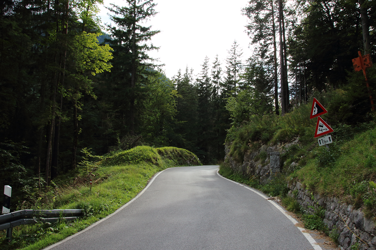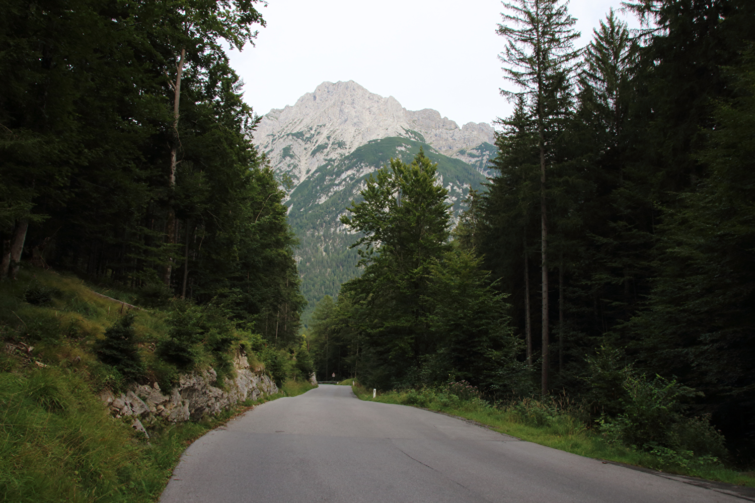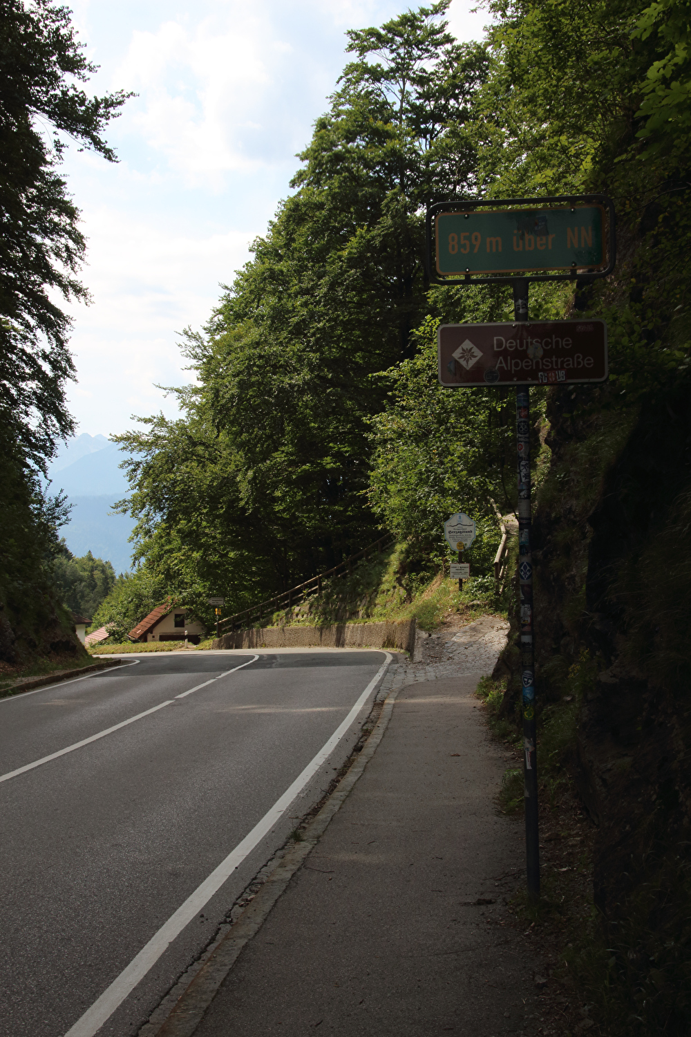 Der die Staatsgrenze zwischen Deutschland und Österreich querende Schlussanstieg ins Leutaschtal, einem auf über 1000 m.ü.A. gelegenen Hochtal, weist einige kurze Steilstücke auf, ist aber insgesamt nicht sonderlich lang. Dieser Anstieg endet oberhalb der Leutaschklamm, die vor Ort auch als Leutascher Geisterklamm bezeichnet wird. Gelände und Bewuchs versperren größtenteils den Blick von der Straße in die Klamm.