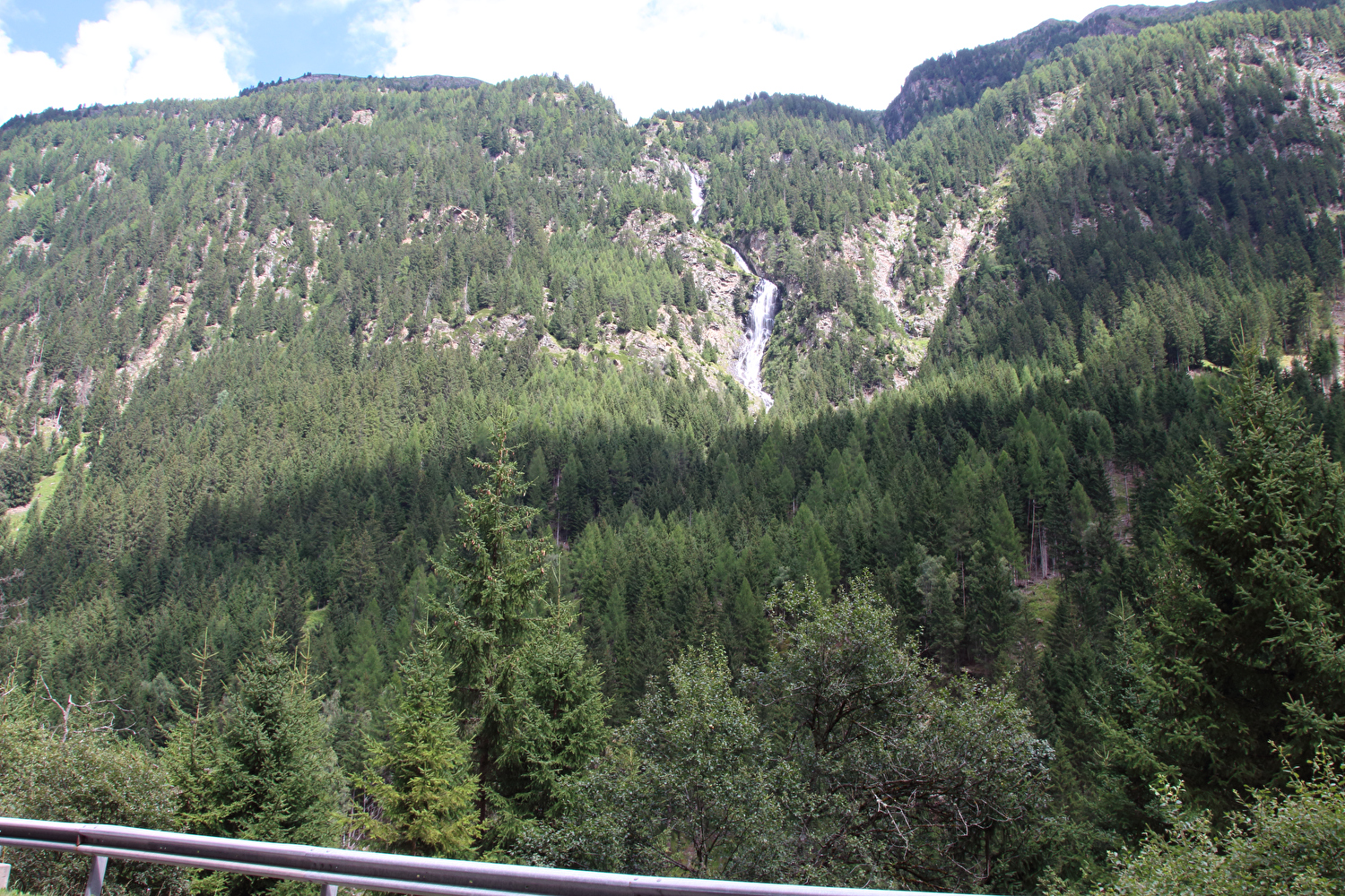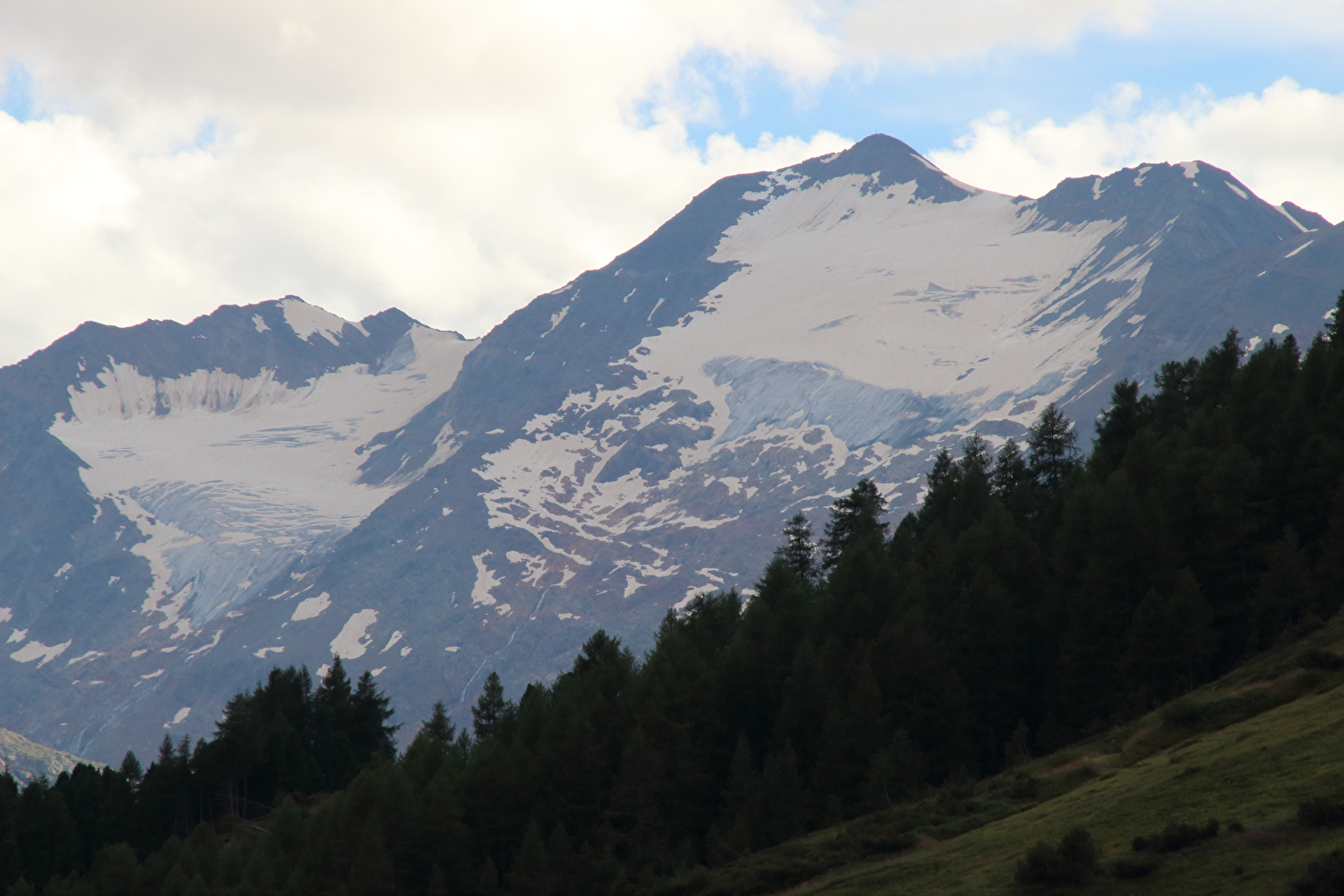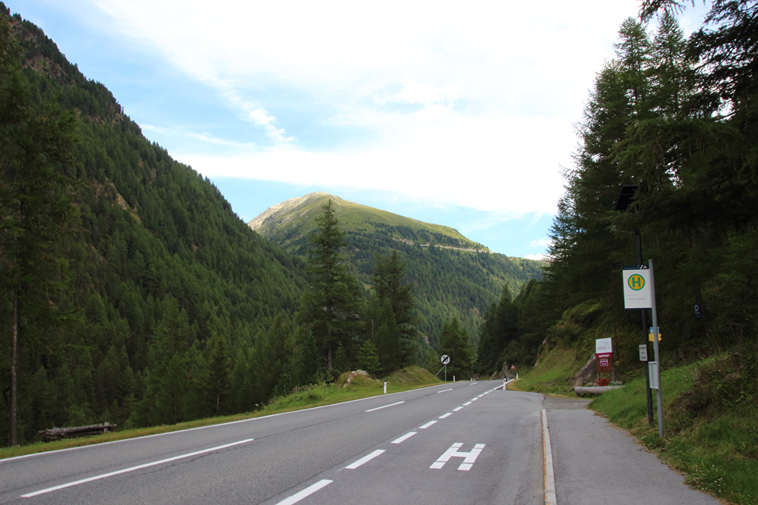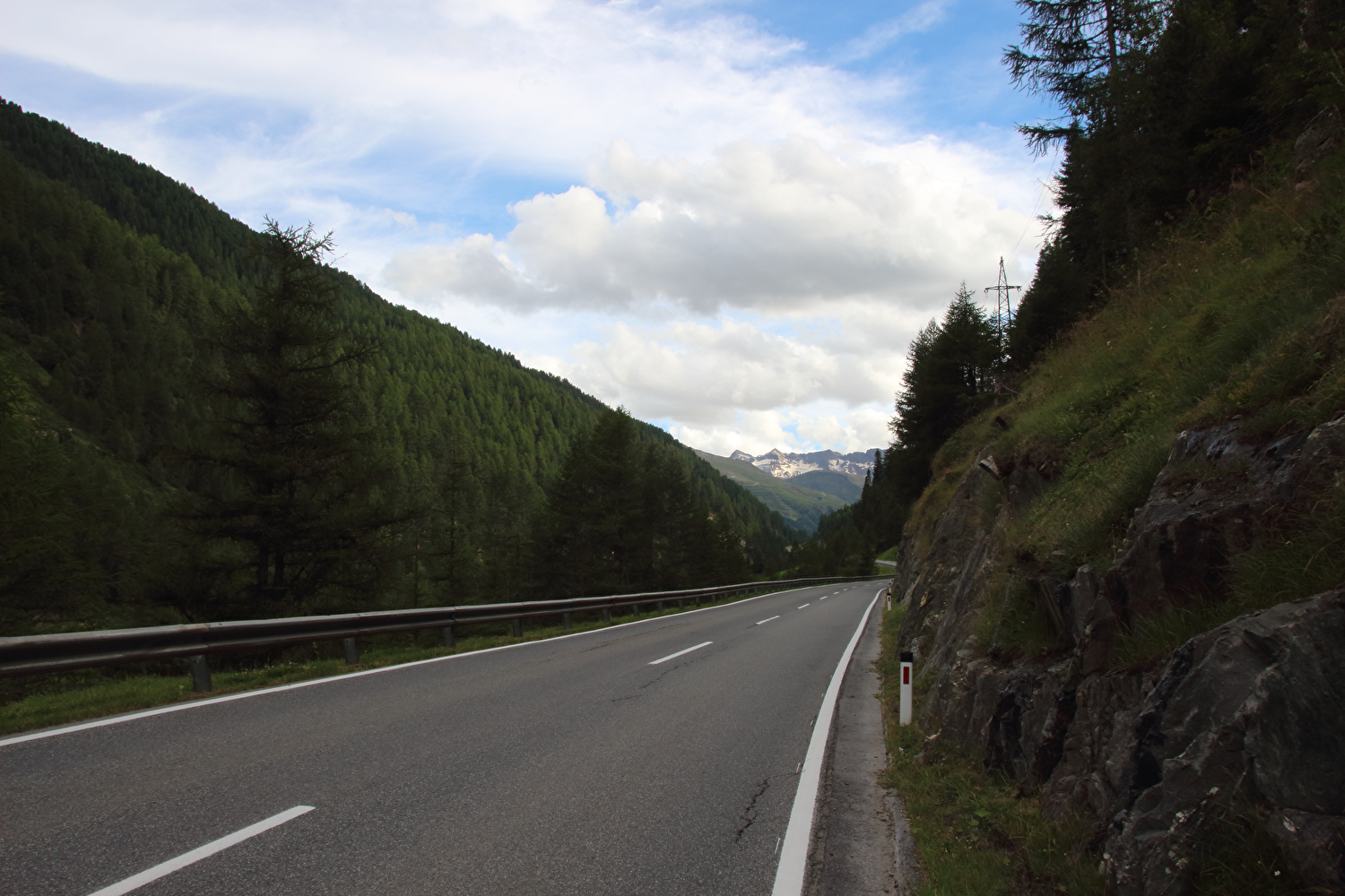 26.07.2012 in der gleichen Richtung gefahren worden. Bei deutlich schönerem Wetter als am Vortag erreichte diese Etappe endlich hochalpines Gebiet. Die montane Waldgrenze wurde zwar noch nicht überschritten, lag aber nur noch wenig oberhalb des Etappenziels. Oberhalb von Umhausen wurde von der Ötztalstraße B186 über eine Brücke über die Ötztaler Ache zum Ötztal Radweg abgezweigt. Da dieser dort aber als Schotterpiste ausgeführt ist, wurde dort nicht aufgefahren und auf der Straße weiter gefahren. An der nächst oberen Brücke über die Ötztaler Ache wurde dann doch auf den Ötztal Radweg aufgefahren.