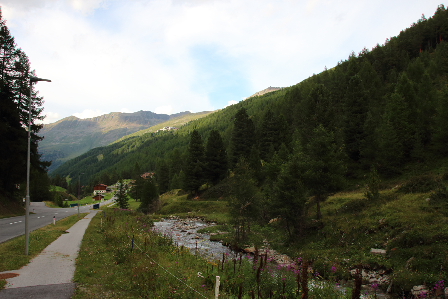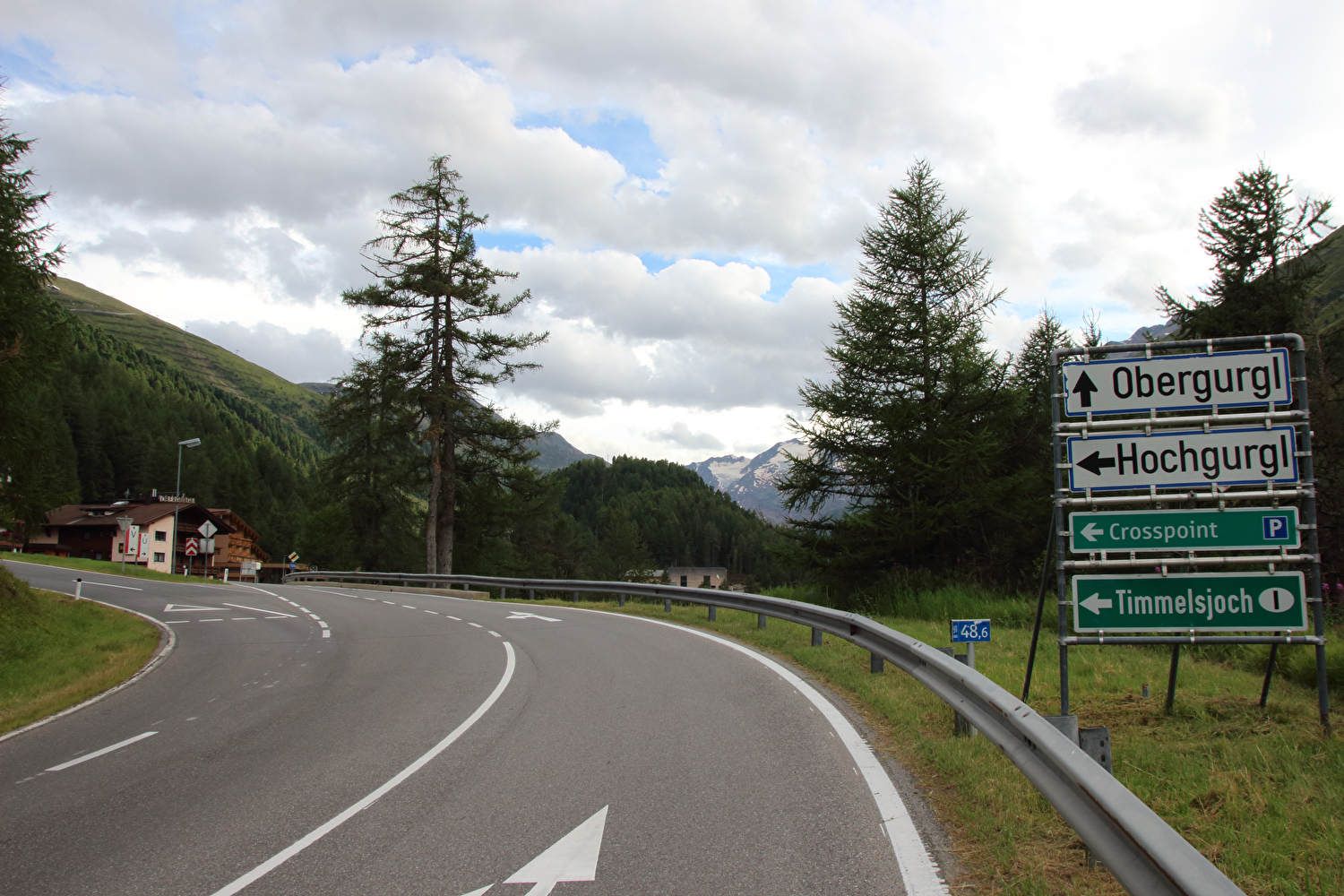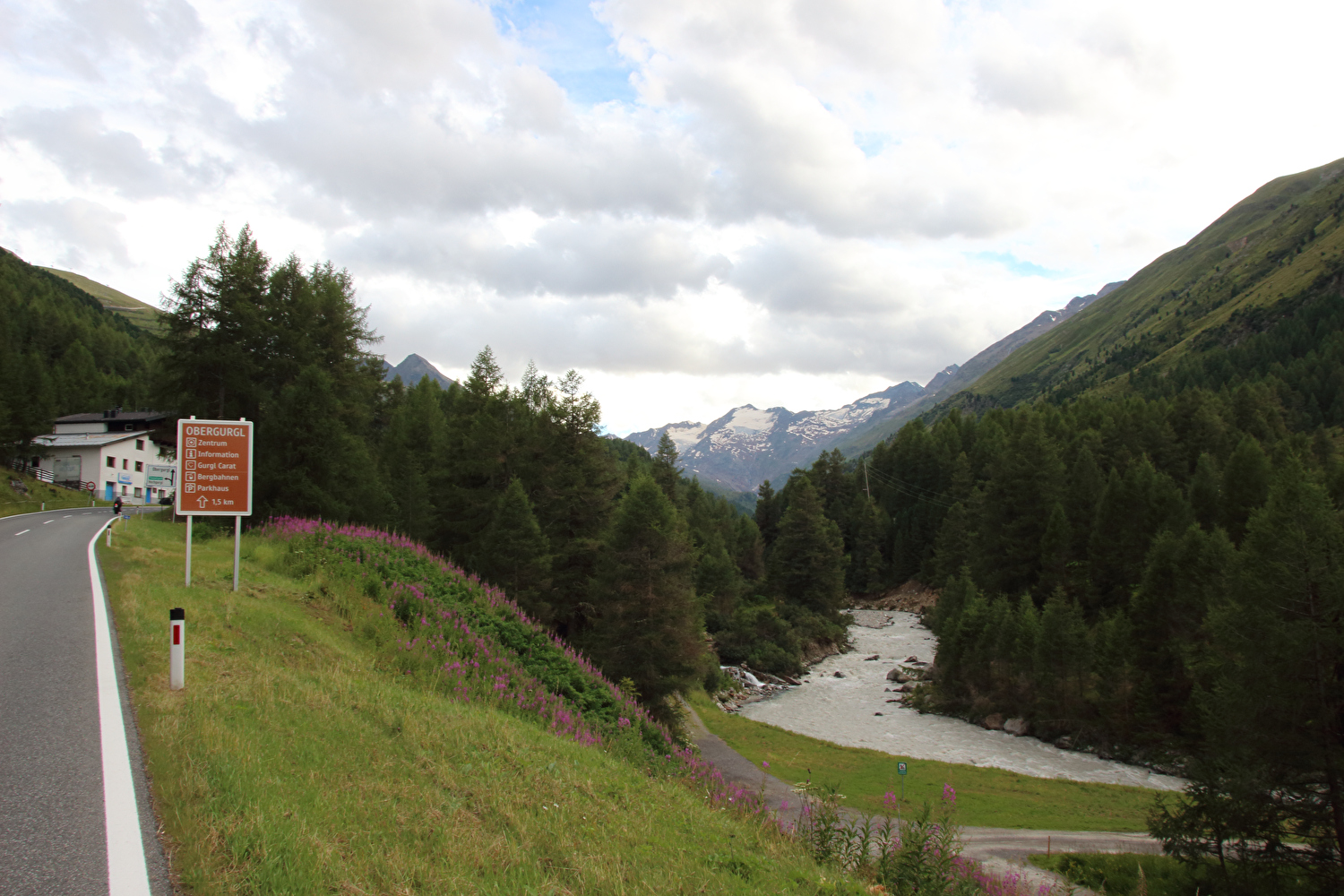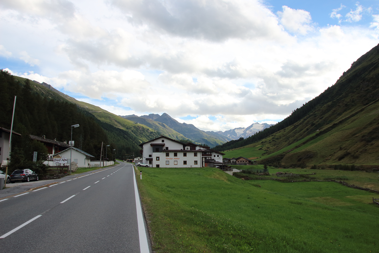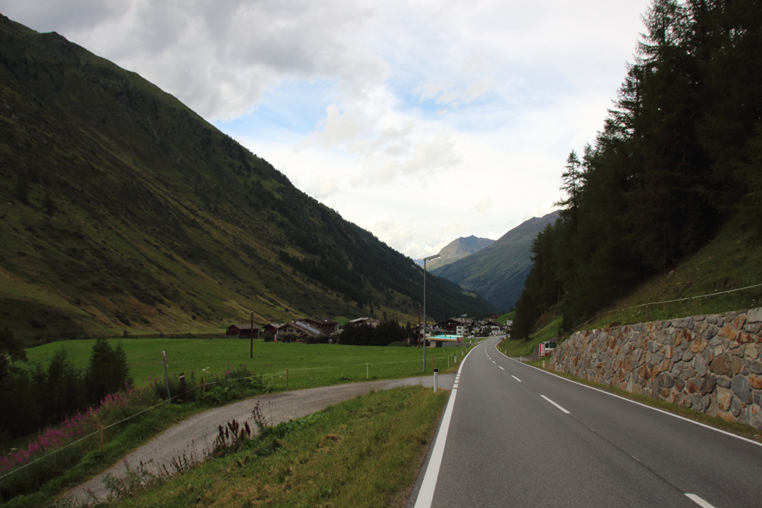 Am Timmelseck wurde nach Obergurgl abgebogen, da dort das Nachtquartier lag. Das war etwas ungünstig, da kurz vor Obergurgl noch eine steile Rampe liegt und am Folgetag auch wieder bis zum Timmelseck zurück gefahren werden musste. Durch diese Aufteilung der Etappen kam dafür die Etappe am Folgetag mit weniger Höhenmetern bergauf aus, wodurch das Naturerlebnis gegenüber der sportlichen Komponente etwas in den Vordergrund rücken konnte. Ab Untergurgl machte sich die Höhe bemerkbar. Kurz nach Sonnenuntergang sackte die Temperatur rasch ab, weshalb am Timmelseck die Jacke übergezogen wurde. Nach dem Abendessen in Obergurgl war auch das schon fast zu kalt, aber für die paar Meter zum Quartier reichte es gerade noch.