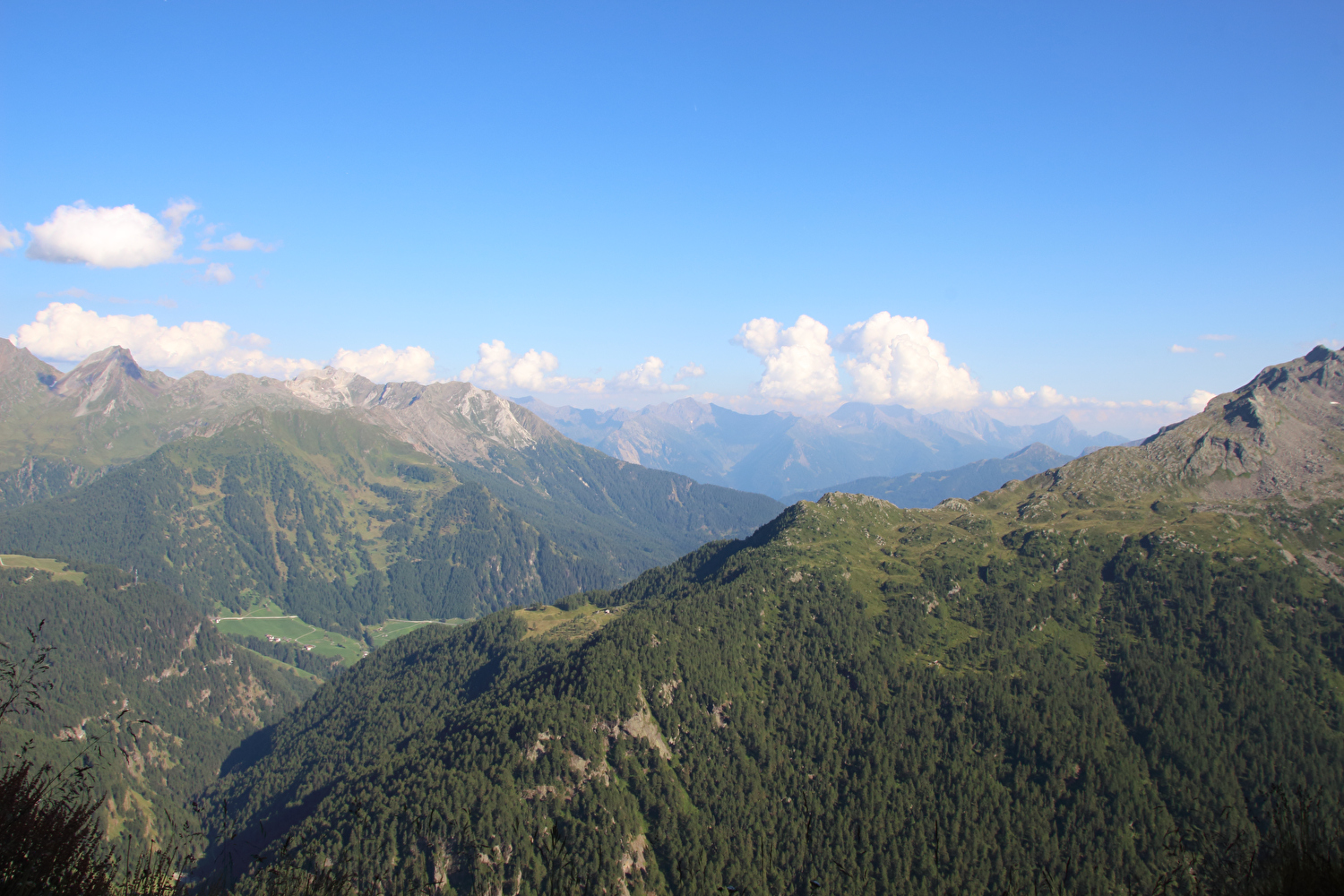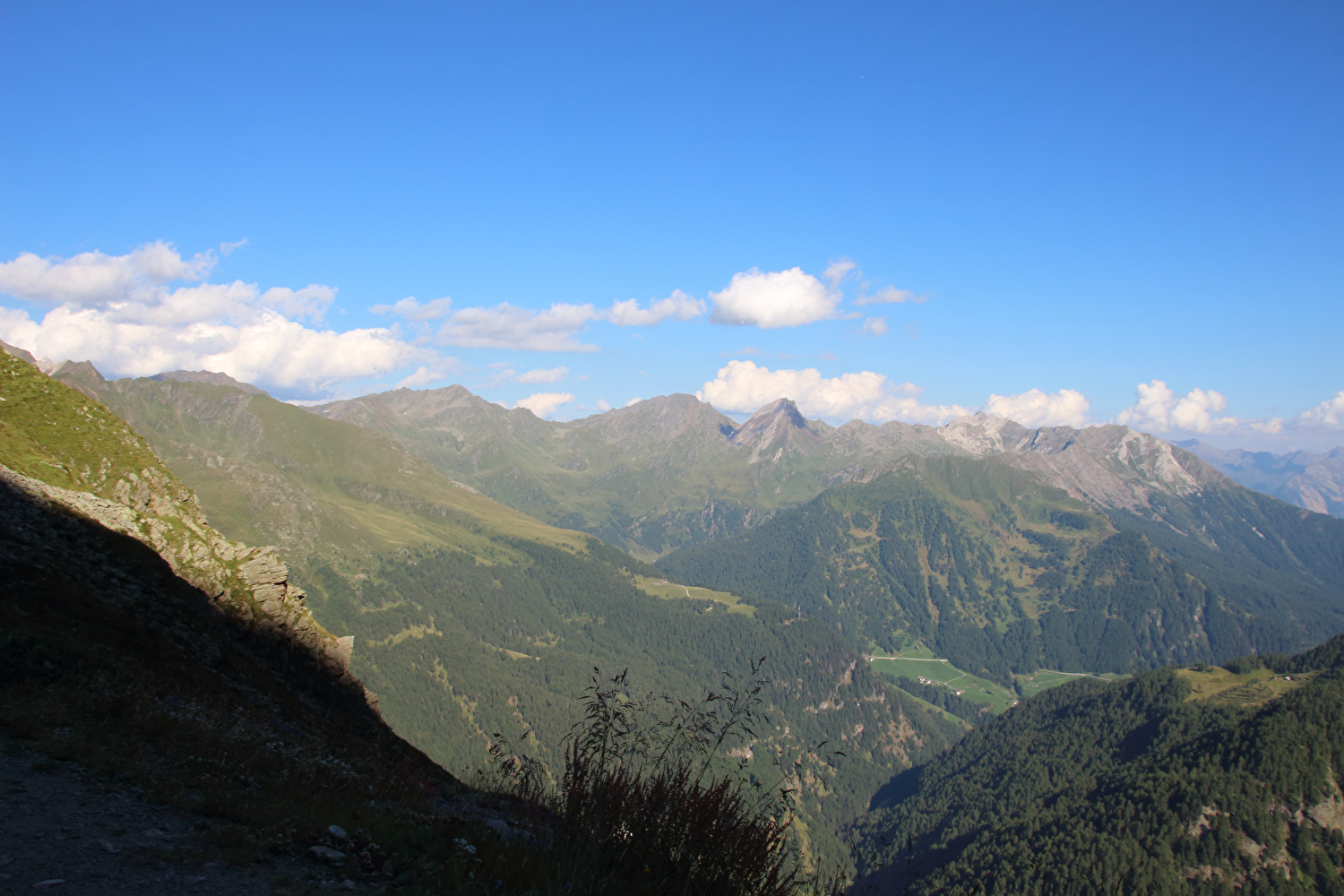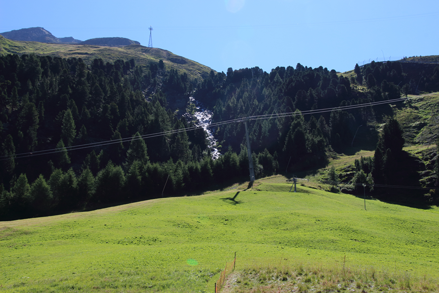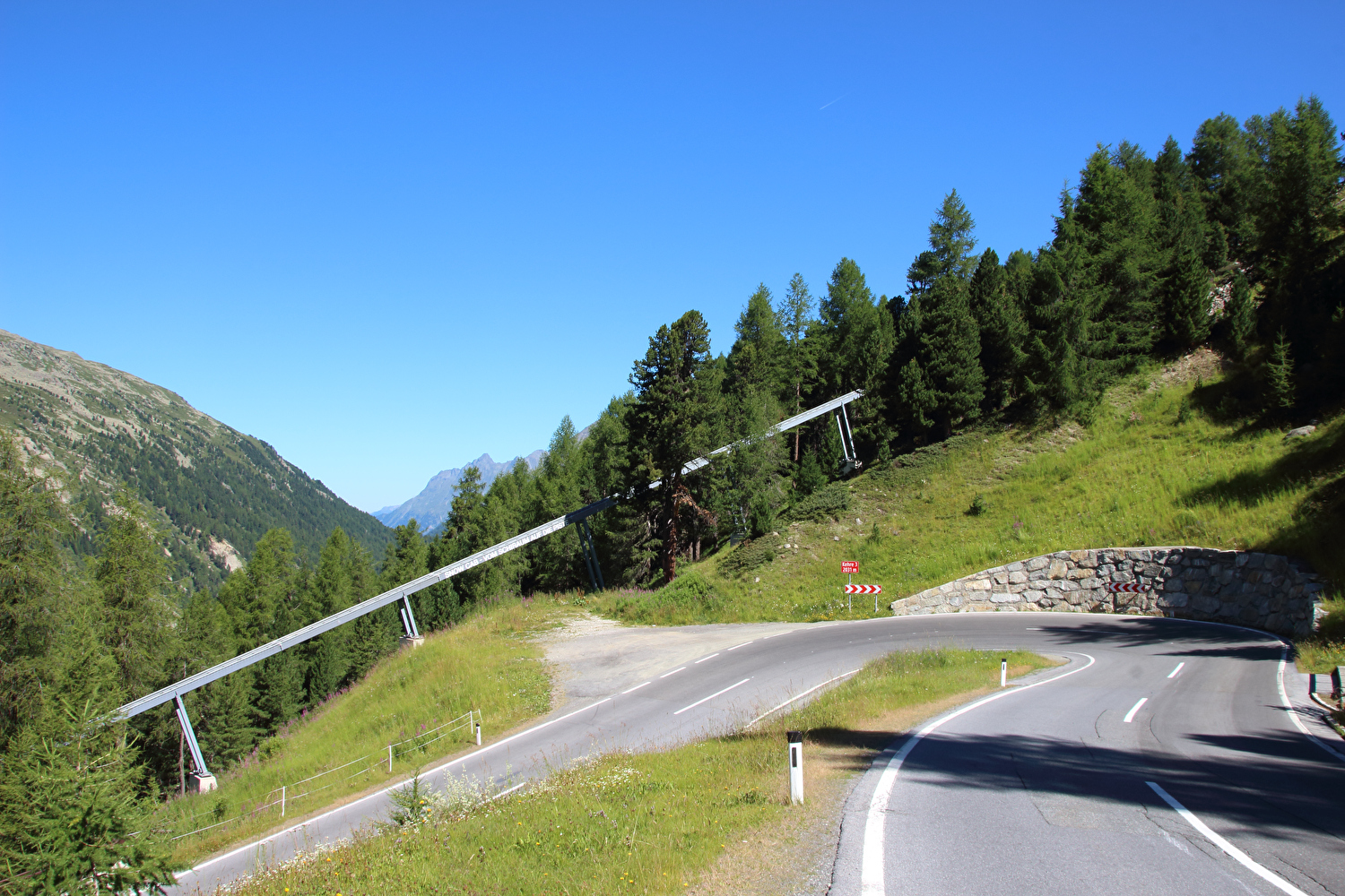 Durch den Etappenstart in Obergurgl kam auf der Passhöhe keine Hektik auf. Die Abfahrt, bei der 1796 Höhenmeter bergab zu fahren waren, zog sich dann doch etwas in die Länge, denn „Wer bremst, verliert!“ … zwar Zeit, aber dafür nicht das Leben. Die Entscheidung für fahrsicherheitstechnisch vertretbare Geschwindigkeiten bergab führte allerdings dazu, dass der Lichteinfall das Schießen ansprechender Fotos zunehmend erschwerte. Unterhalb von Moos in Passeier nahm die Temperatur trotz der bereits hinter den Bergen versunkenen Sonne spürbar zu, was für den folgenden Tag nichts Gutes erahnen ließ. Mit Sankt Leonhard in Passeier wurde „der Süden“ erreicht. Passend zur Wärme vor Ort rückten im Freiland wachsende Chinesische Hanfpalmen ins Blickfeld. Vor der Anfahrt zum Quartier wurde das untere Ende der Südostrampe des Timmelsjoch angefahren.