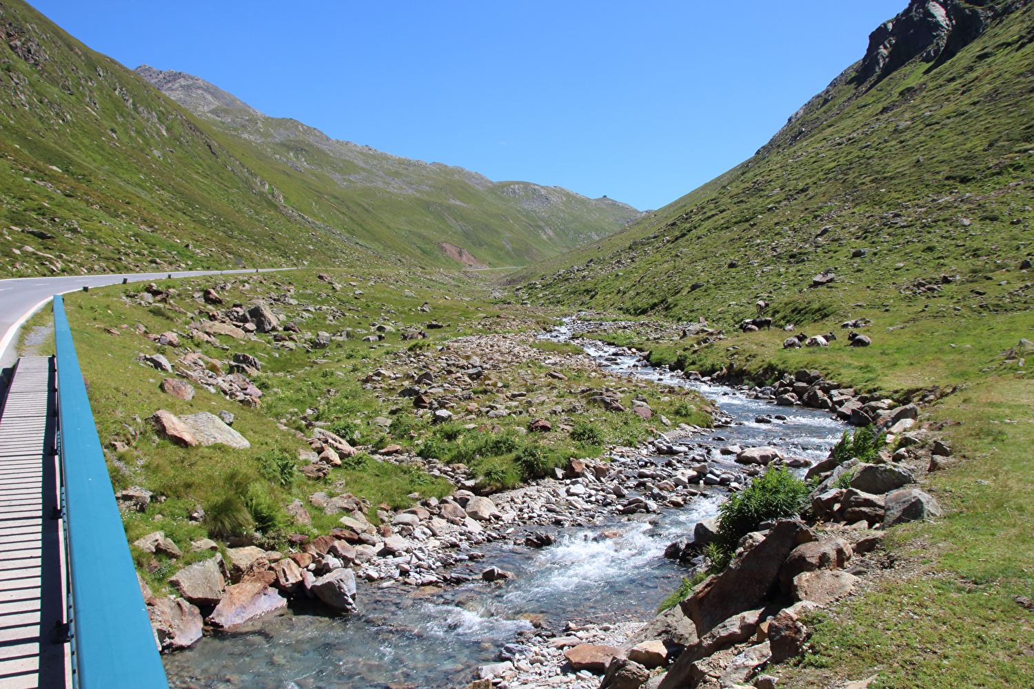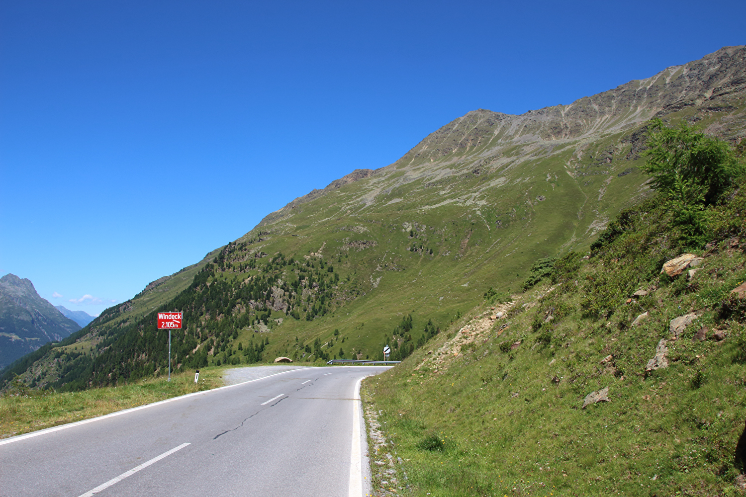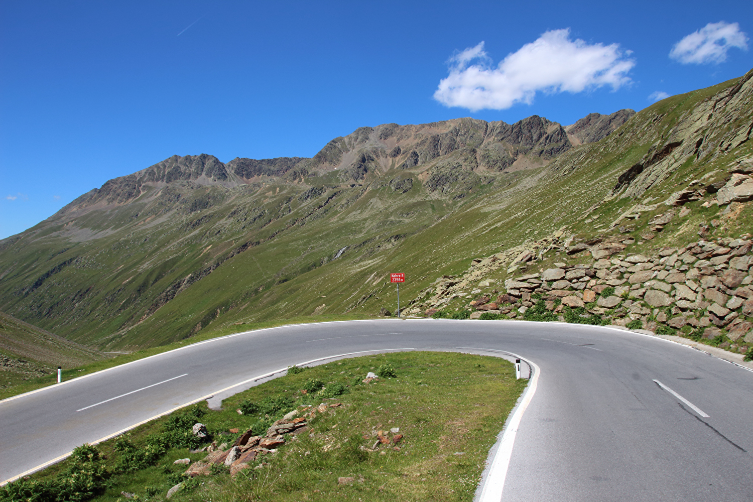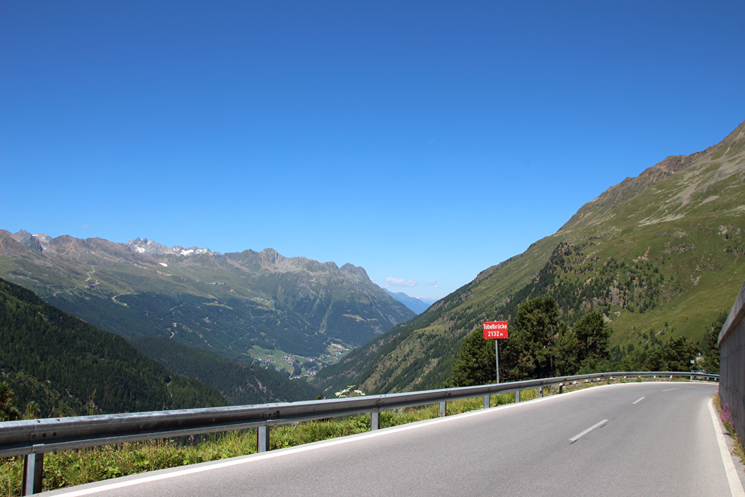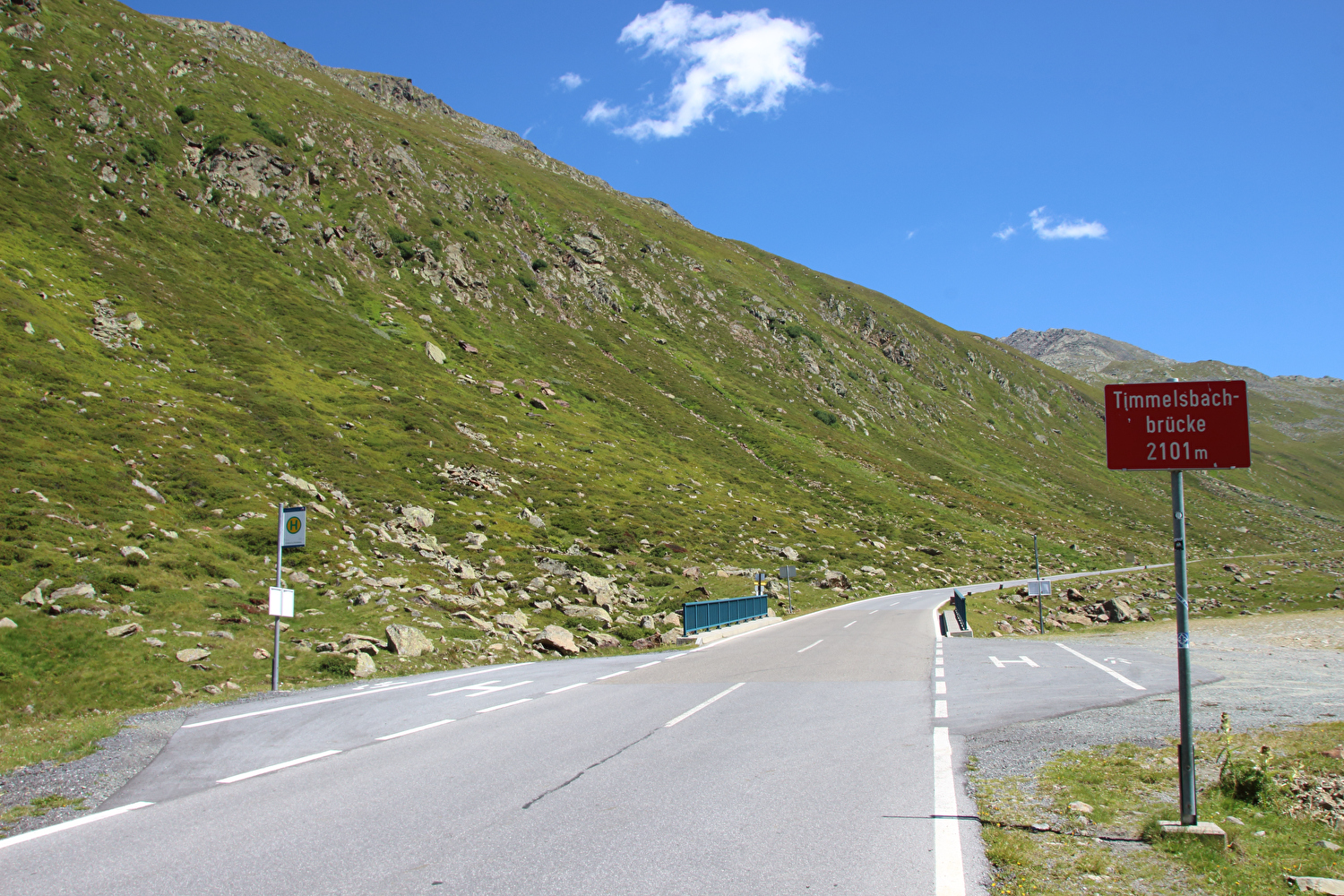 Obergurgl (1909) – Timmelseck (1818) – Mautstelle Hochgurgl (2156) – Mautstelle Hochgurgl (2156) – Timmelsbachbrücke (2101) – Timmelsjoch (2474) – Timmelsbrücke (1758) – Moos in Passeier (1025) – Sankt Leonhard in Passeier (678)