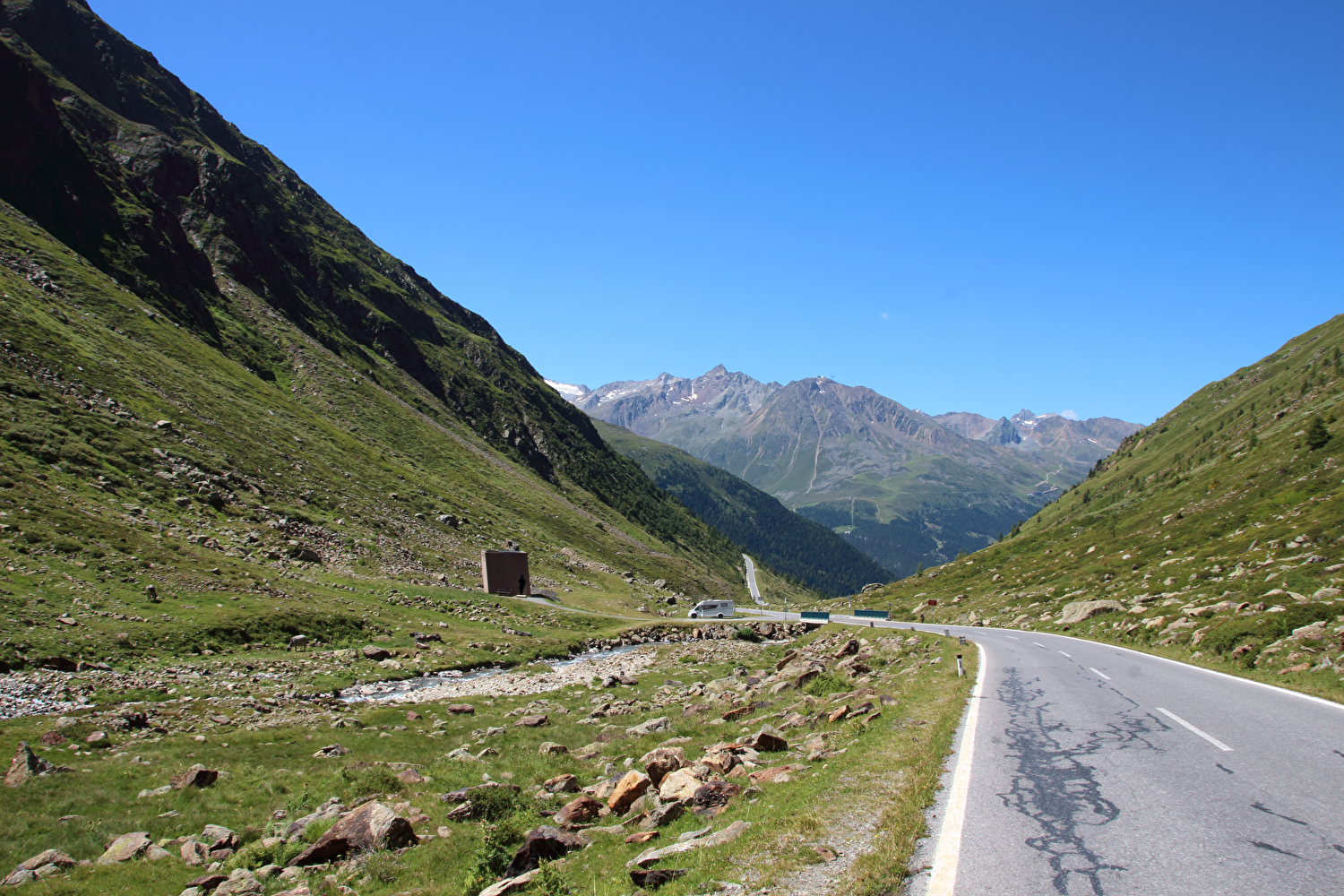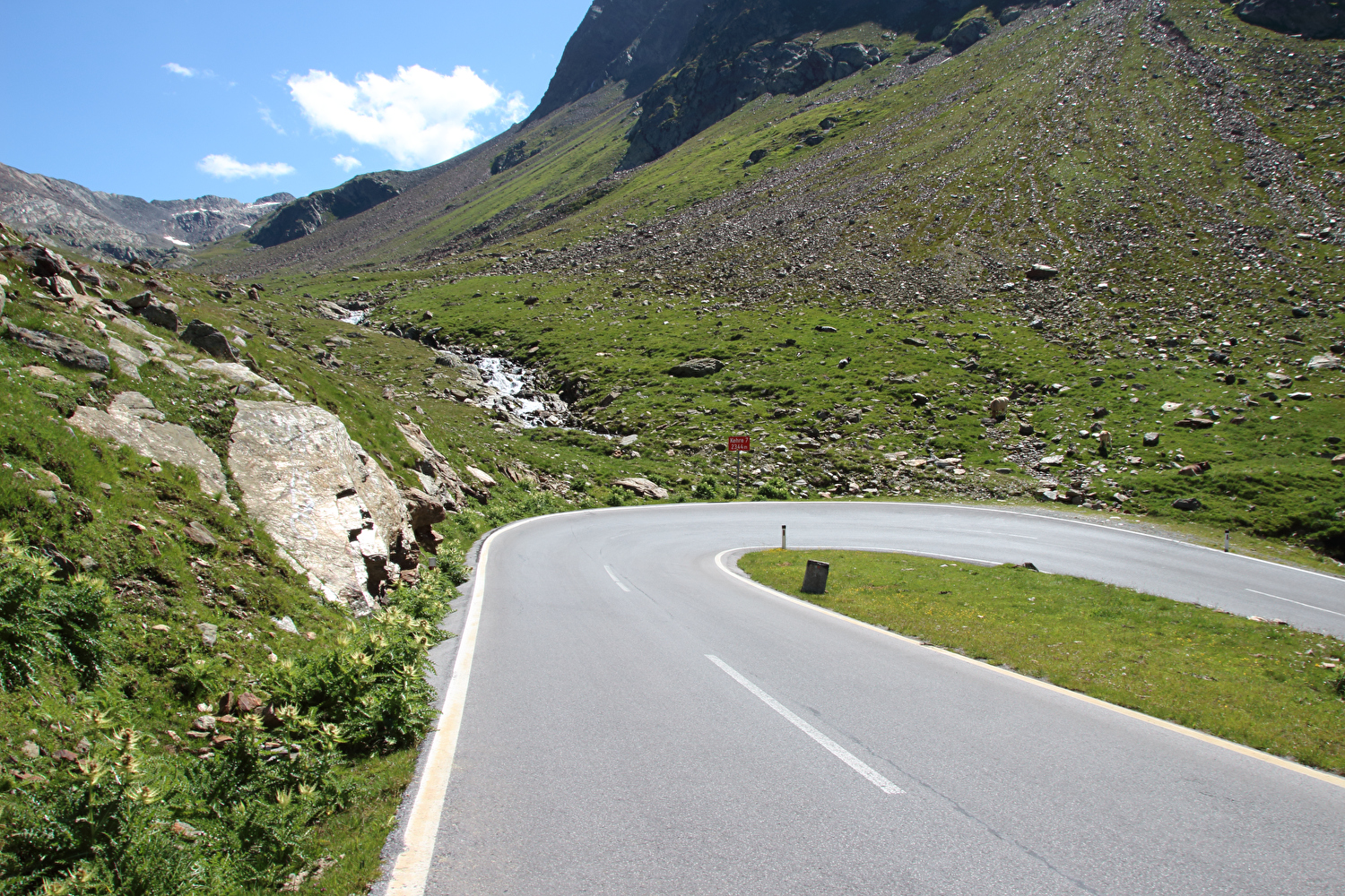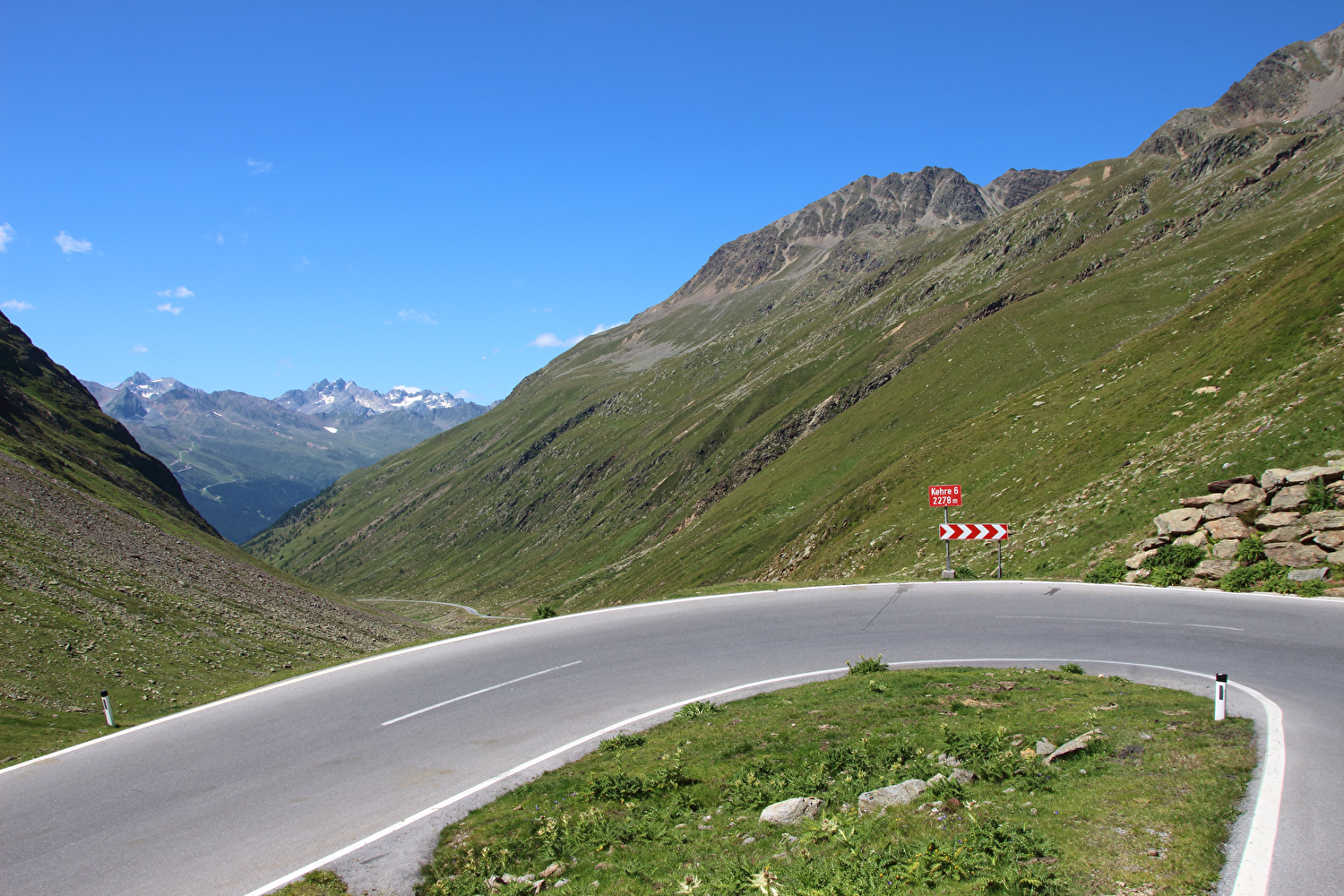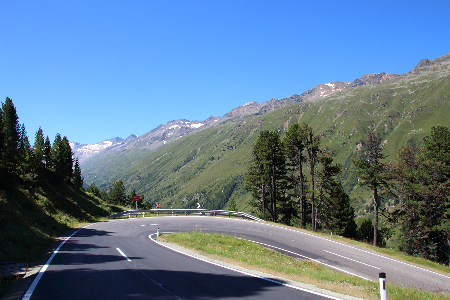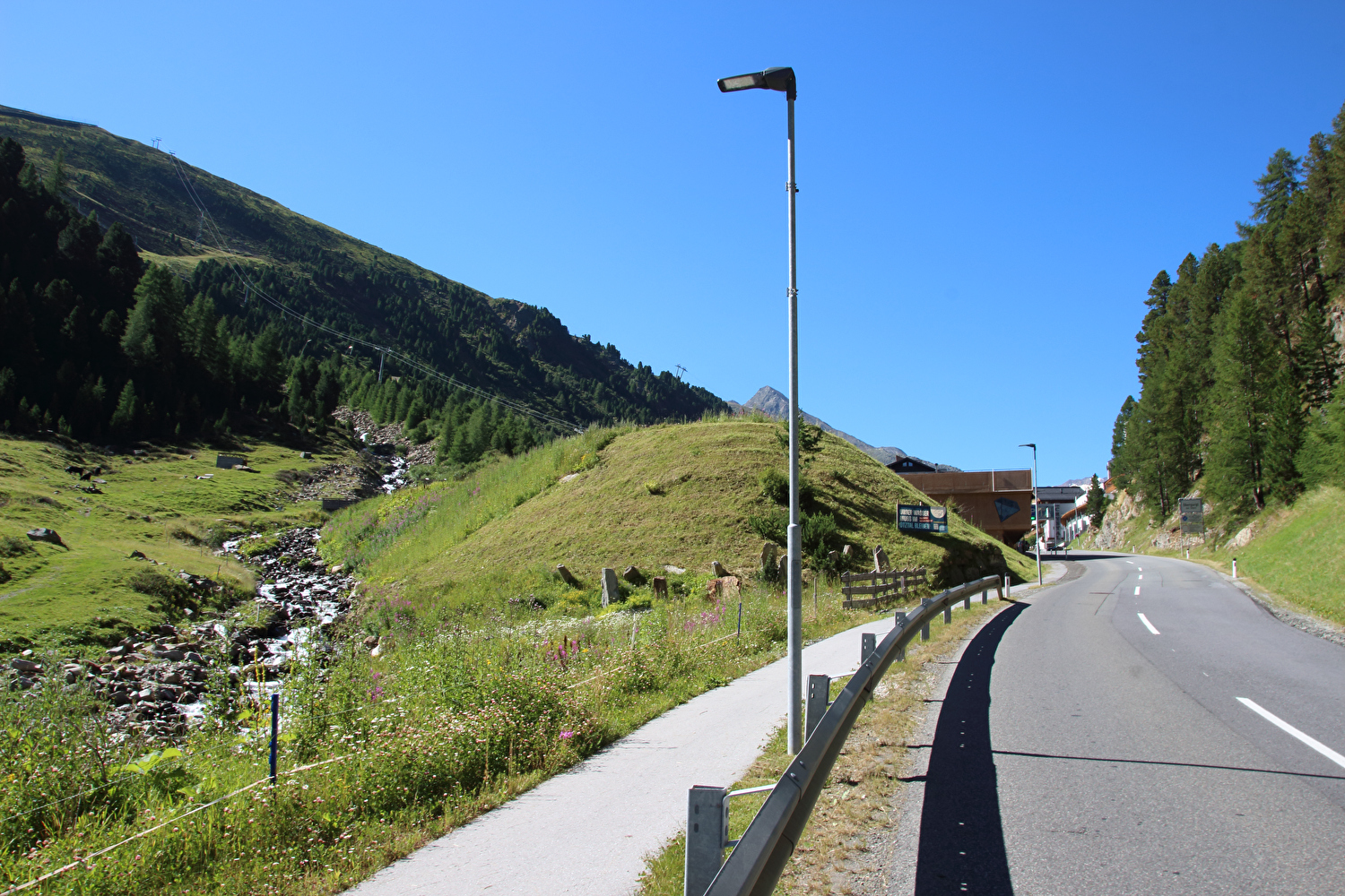 Obergurgl (1909) – Timmelseck (1818) – Mautstelle Hochgurgl (2156) – Mautstelle Hochgurgl (2156) – Timmelsbachbrücke (2101) – Timmelsjoch (2474) – Timmelsbrücke (1758) – Moos in Passeier (1025) – Sankt Leonhard in Passeier (678)