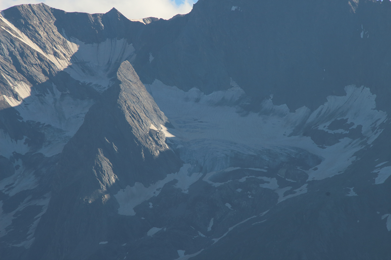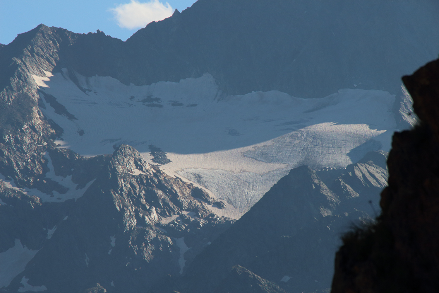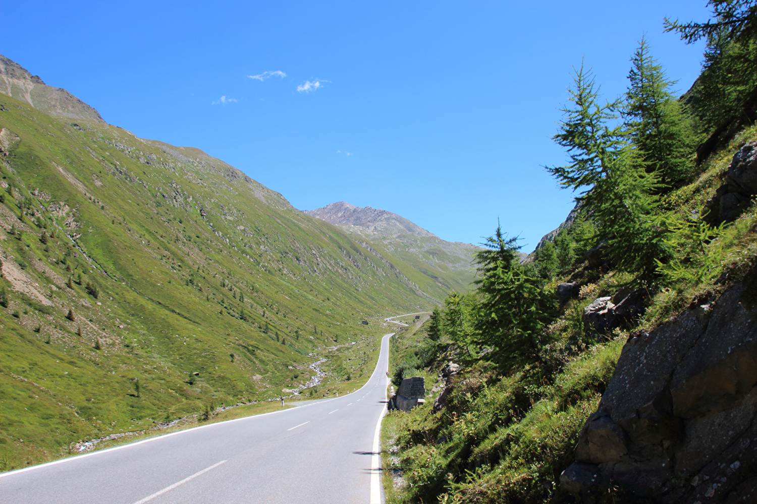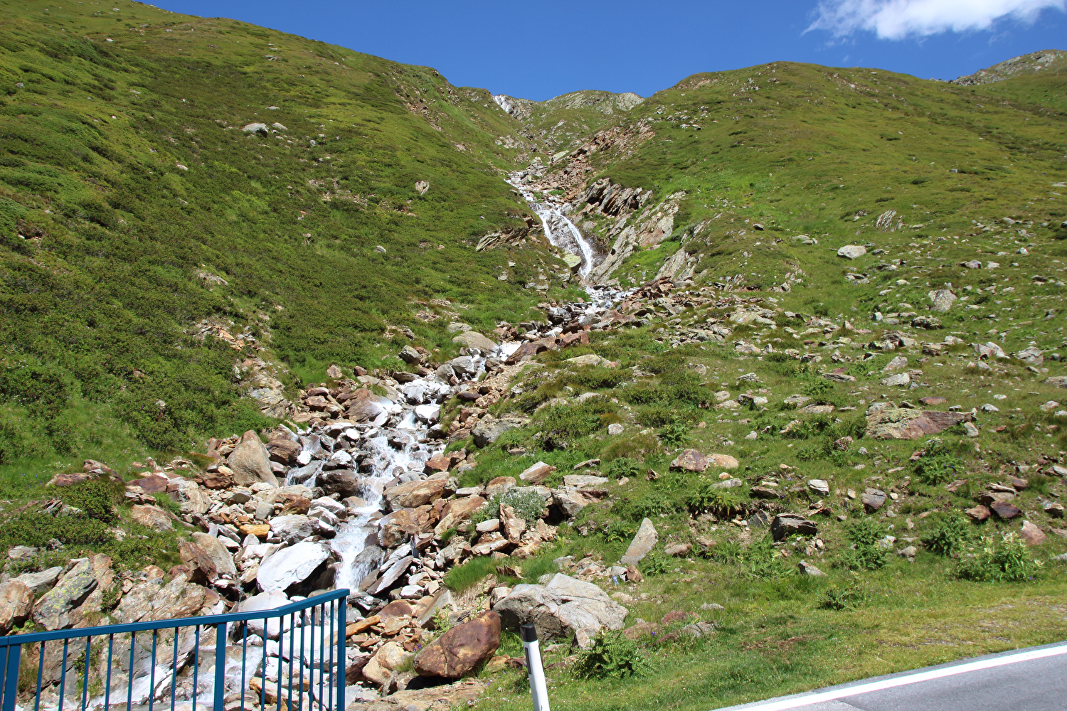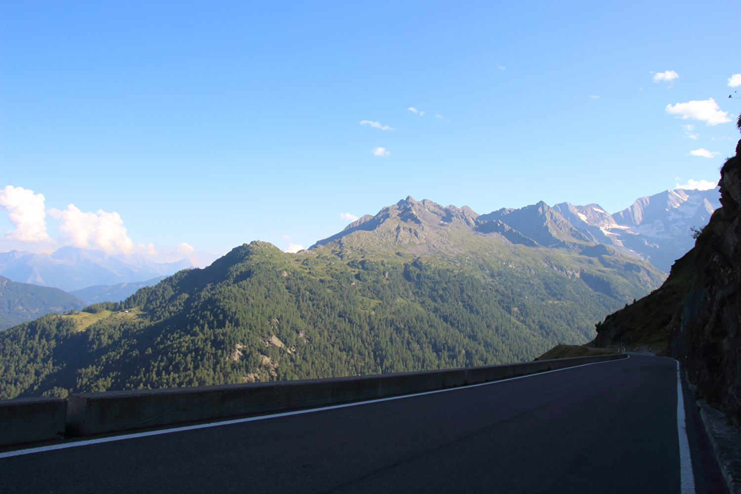 Ab dem Timmelseck nehmen die Steilstücke in der Nordwestrampe in Anzahl und Längen zu, weshalb längere Schiebepassagen bis zur Passhöhe nicht ausblieben. Dafür blieben bei dieser Etappe ein Speichenriss wie bei der Etappe am 26.07.2012 oder andere Schäden am Fahrrad aus. Stinkeverkehr quälte sich leider reichlich über die Passstraße. Die Fotos mögen darüber hinweg täuschen, da nach Möglichkeit die wenigen im Fokus der Kamera autofreien Momente dafür genutzt wurden. Diese Etappe war die einzige im Rahmen dieser Tour, die zumindest zeitweise oberhalb der montanen Baumgrenze verlief. Sie war auch die letzte Etappe im Rahmen dieser Tour, die Blicke auf Gletscher oder deren traurige Reste in der näheren Umgebung bot.