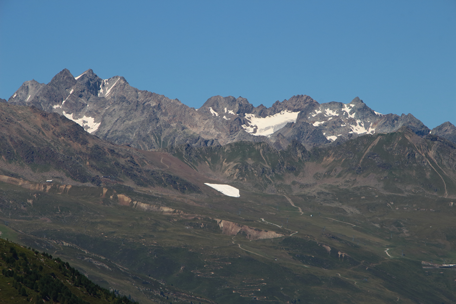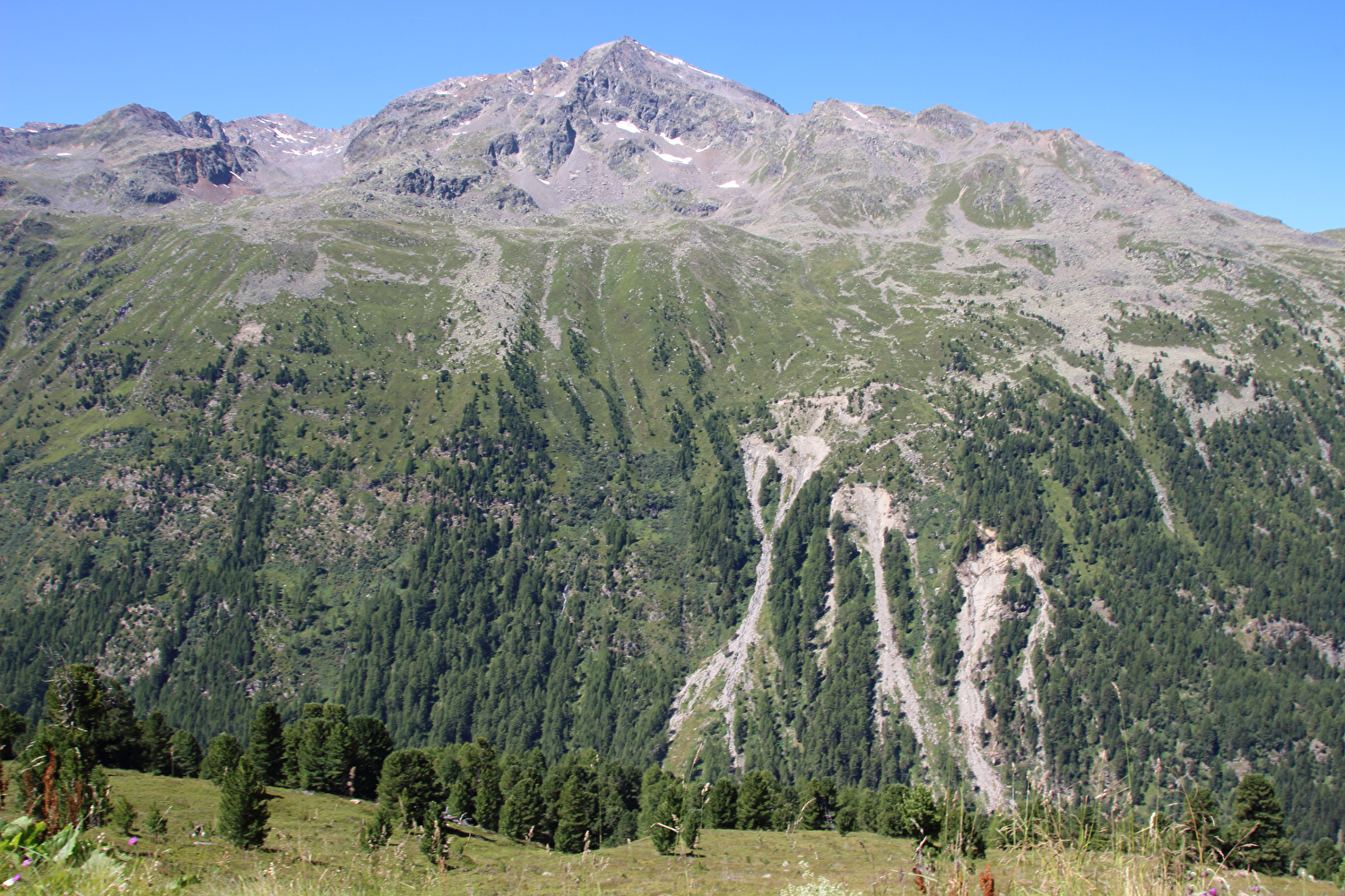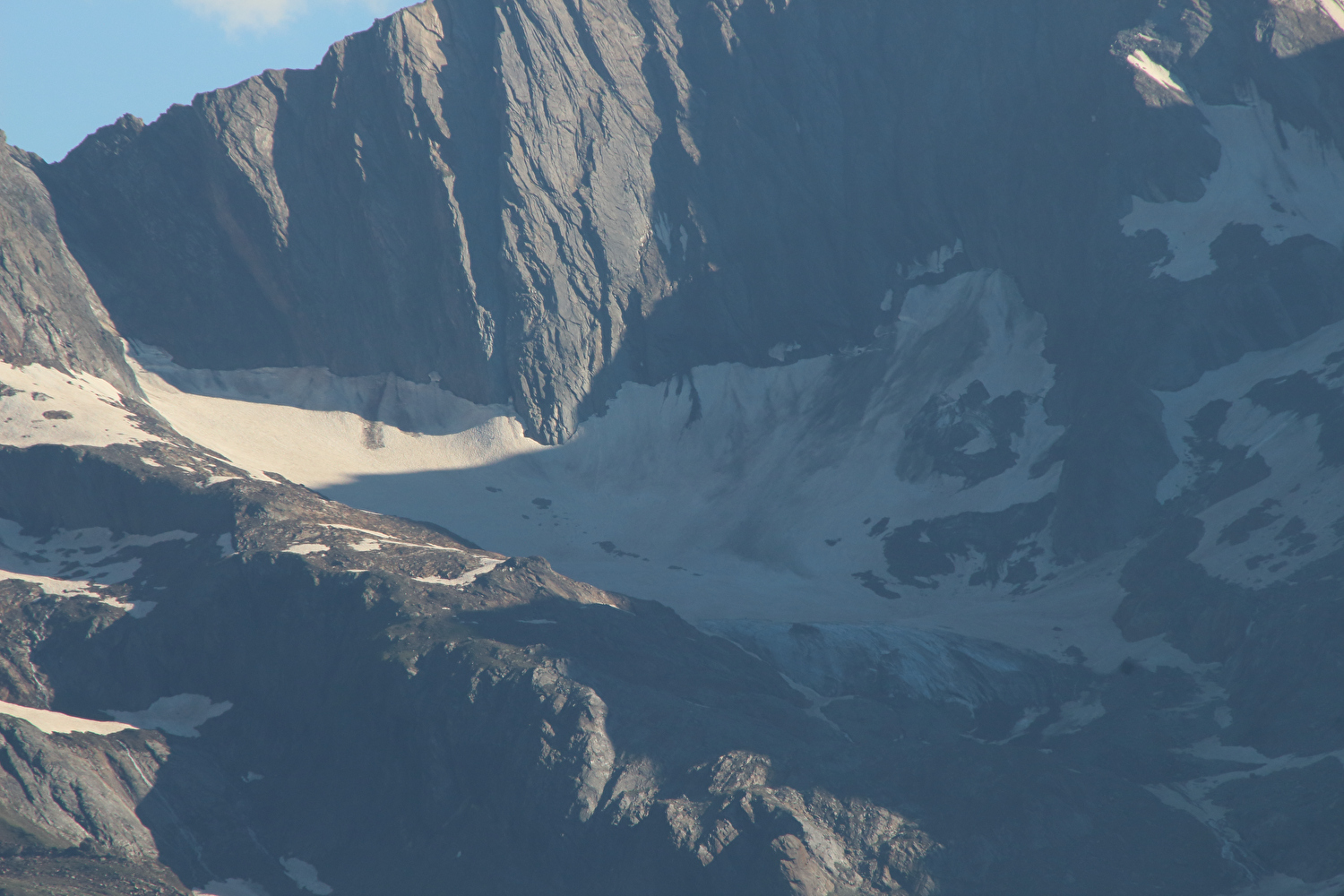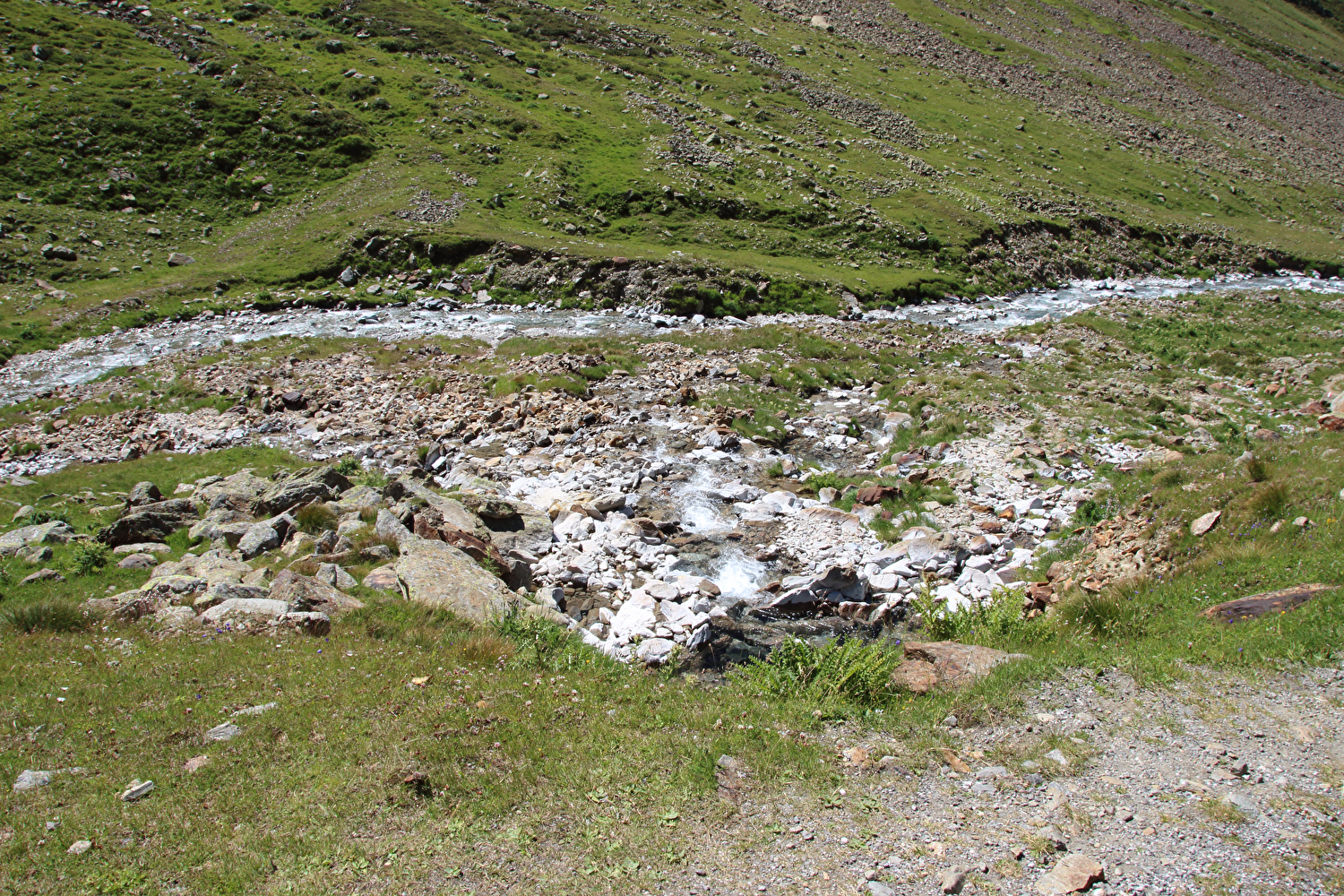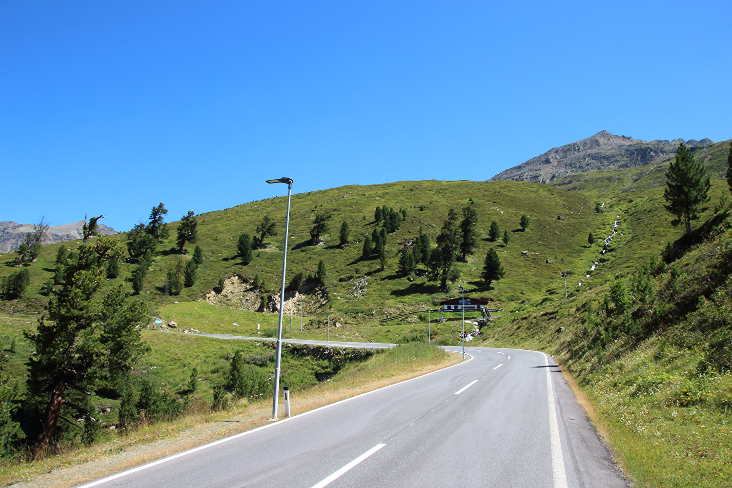 Ab dem Timmelseck nehmen die Steilstücke in der Nordwestrampe in Anzahl und Längen zu, weshalb längere Schiebepassagen bis zur Passhöhe nicht ausblieben. Dafür blieben bei dieser Etappe ein Speichenriss wie bei der Etappe am 26.07.2012 oder andere Schäden am Fahrrad aus. Stinkeverkehr quälte sich leider reichlich über die Passstraße. Die Fotos mögen darüber hinweg täuschen, da nach Möglichkeit die wenigen im Fokus der Kamera autofreien Momente dafür genutzt wurden. Diese Etappe war die einzige im Rahmen dieser Tour, die zumindest zeitweise oberhalb der montanen Baumgrenze verlief. Sie war auch die letzte Etappe im Rahmen dieser Tour, die Blicke auf Gletscher oder deren traurige Reste in der näheren Umgebung bot.
