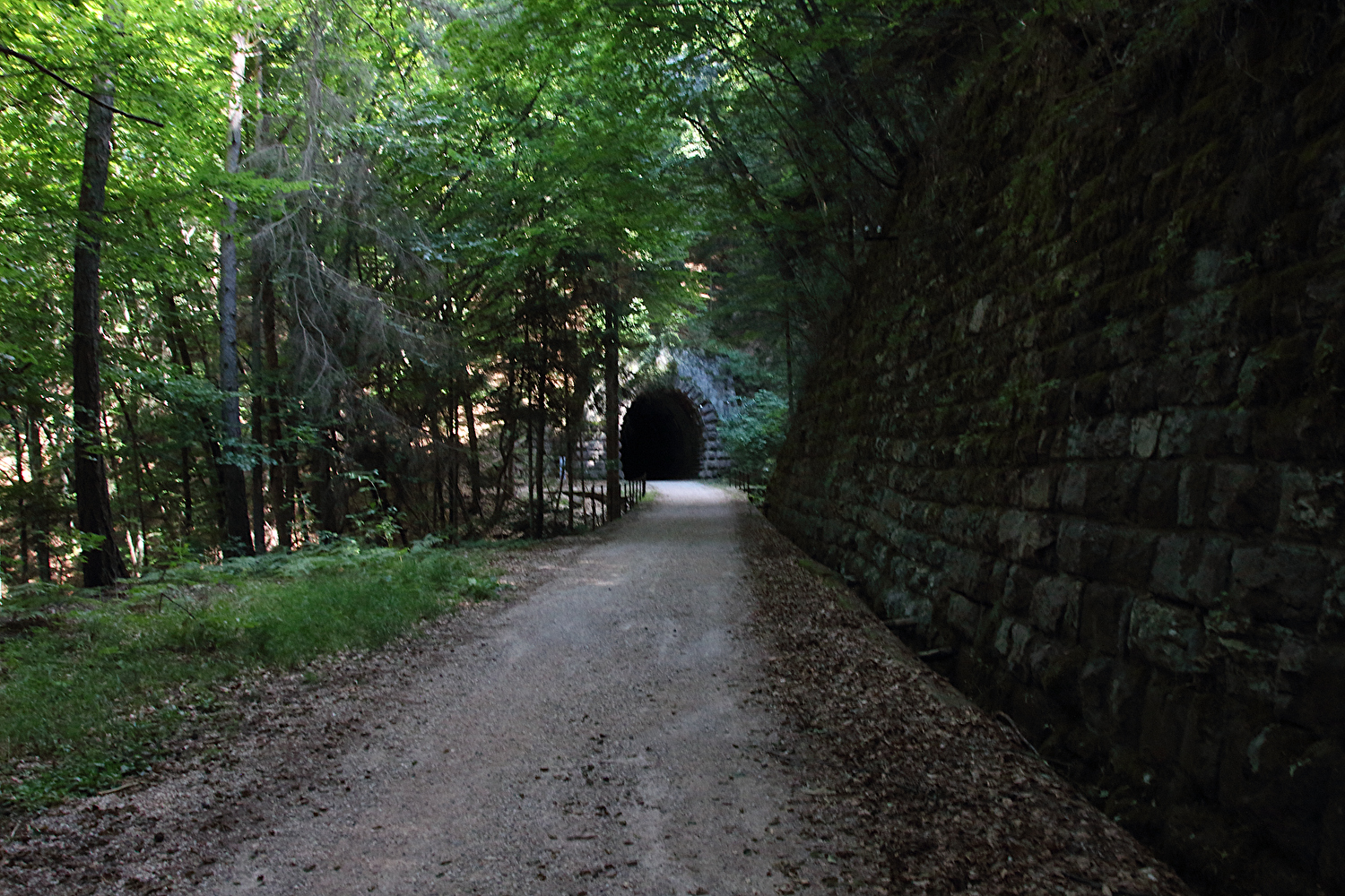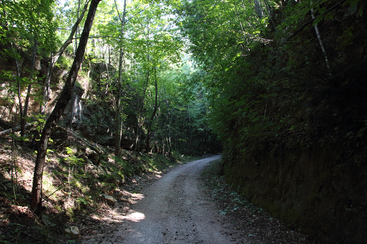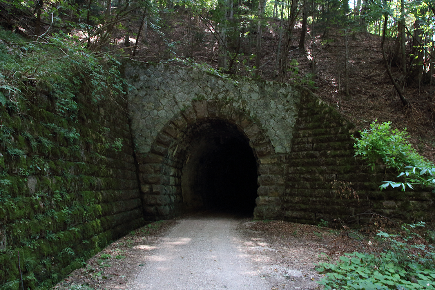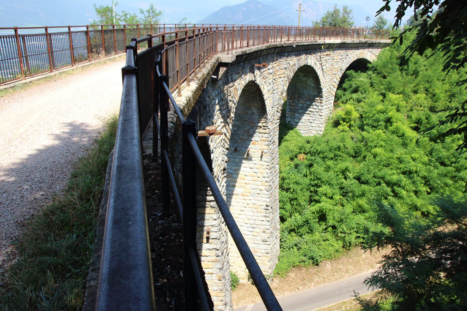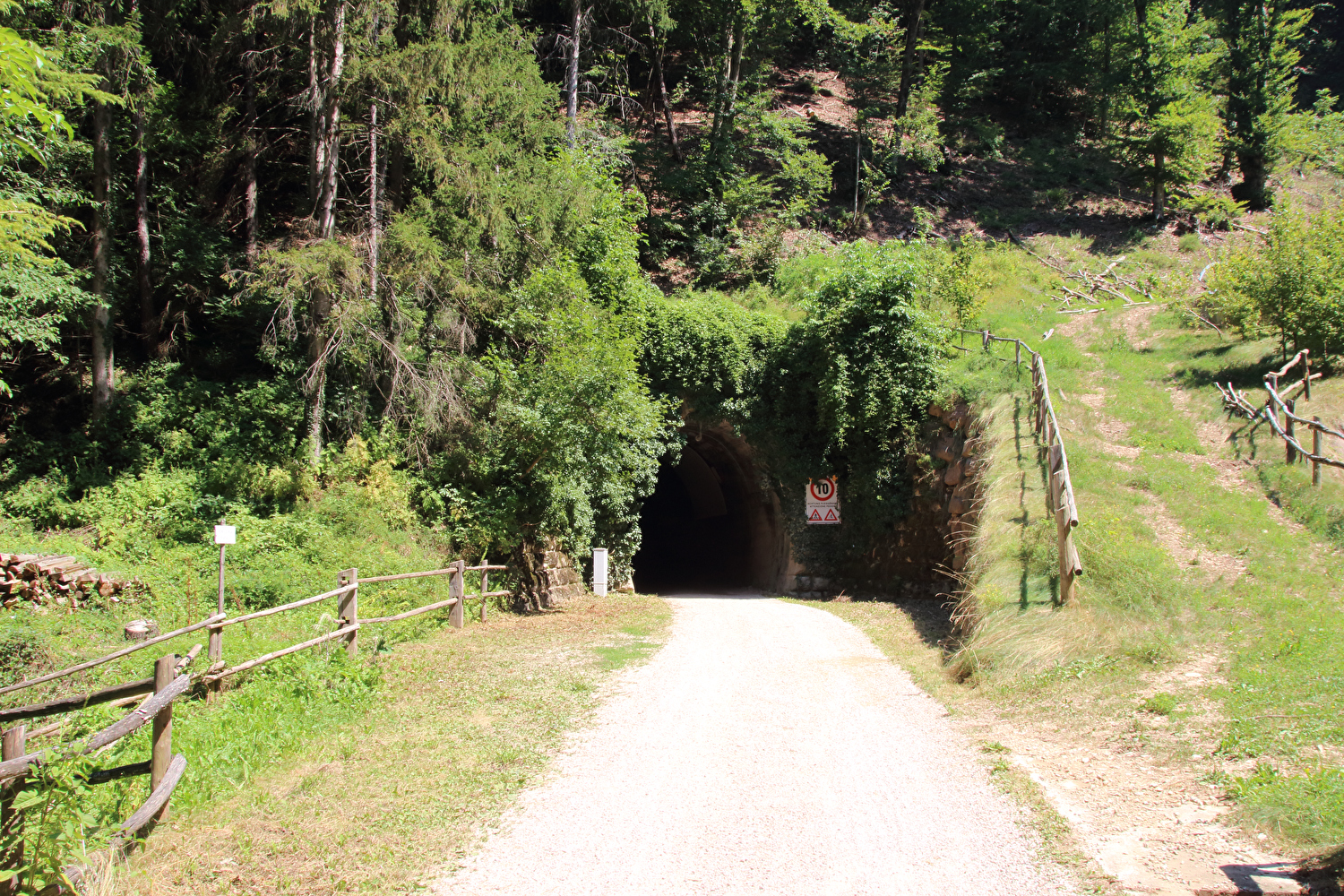 Für die Route von Auer bis zum San-Lugano-Sattel gibt es zwei Möglichkeiten, entweder die stark mit Stinkeverkehr belastete SS48, die auf längeren Abschnitten im Talgrund verläuft, oder den als Schotterpiste ausgeführten Fleimstalbahn-Radweg, der abseits vom Talgrund im Hang verläuft, fünf Tunneldurchfahrten bietet und weiter oben im Wald verläuft. Die Fleimstalbahn war eine schmalspurige Eisenbahn zwischen Auer im Etschtal und Predazzo im Fleimstal. Die Bahntrasse wurde als Adhäsionsbahn zunächst mit einer Spurweite von 760 mm angelegt, wobei eine Umspurung auf Meterspur bereits eingeplant wurde. Der Regelbetrieb wurde im Jahr 1918 aufgenommen. Die Umspurung auf Meterspur erfolgte zusammen mit der Elektrifizierung im Jahr 1929. Der Betrieb wurde im Jahr 1963 entgültig eingestellt. Auf der ehemaligen Bahntrasse steigt der Radweg moderat und sehr gleichmäßig an. Bei Pinzon verlässt der Radweg allerdings die ehemalige Bahntrasse und durchquert den Ort mit bis zu 20 % Neigung, was für einen Radweg eine krasse Fehlplanung darstellt. In Montan an der Weinstraße wechselt der Radweg wieder auf die ehemalige Bahntrasse.