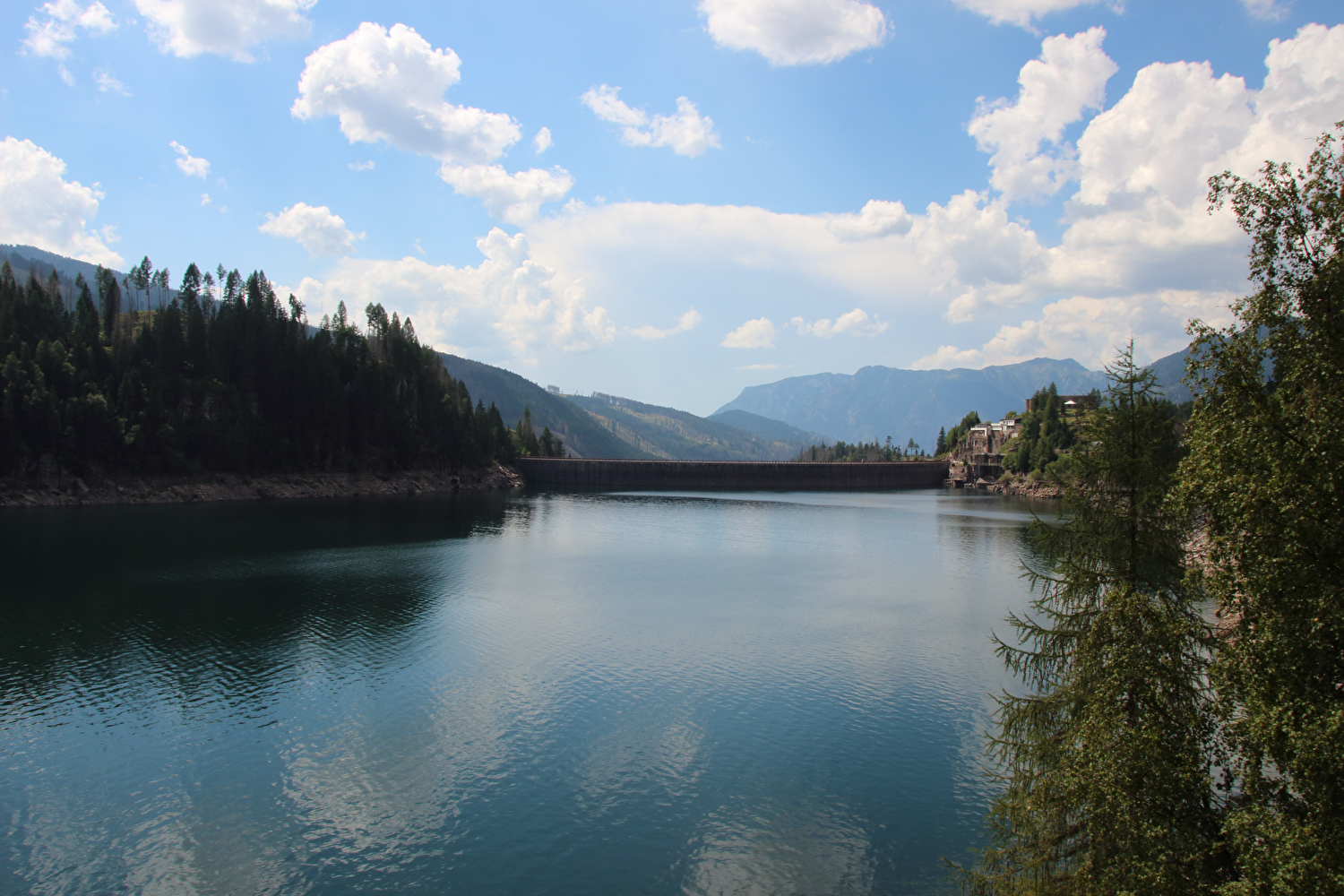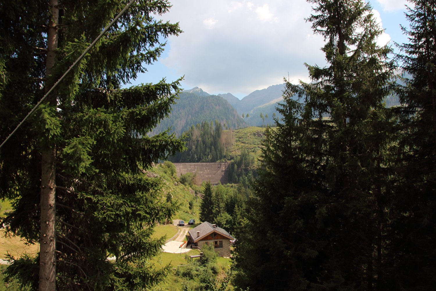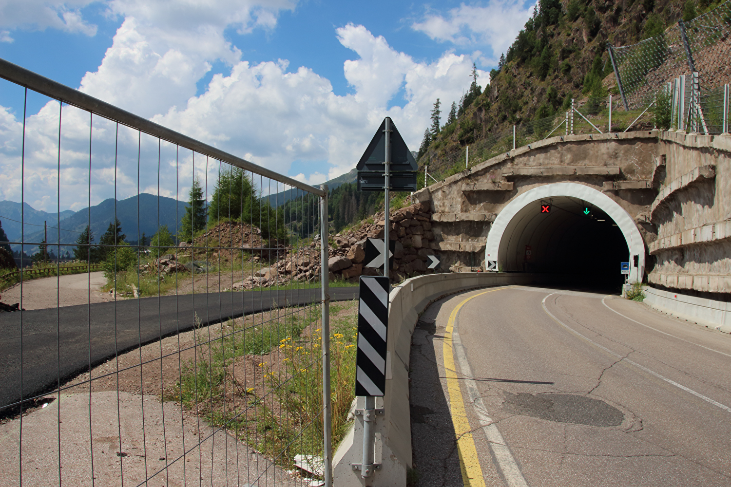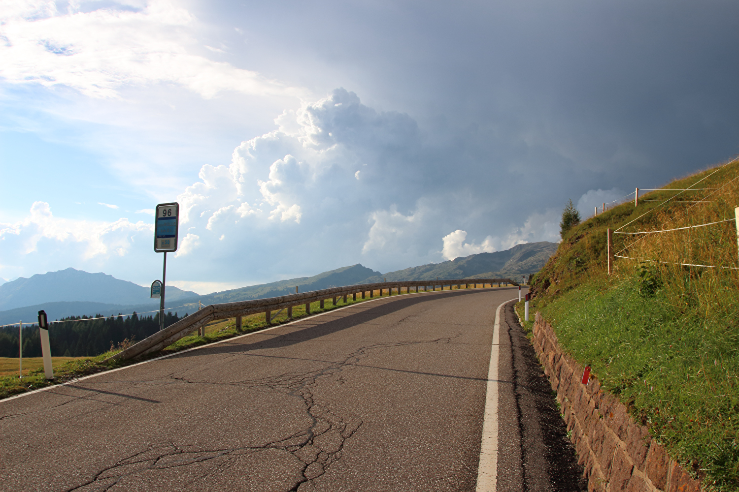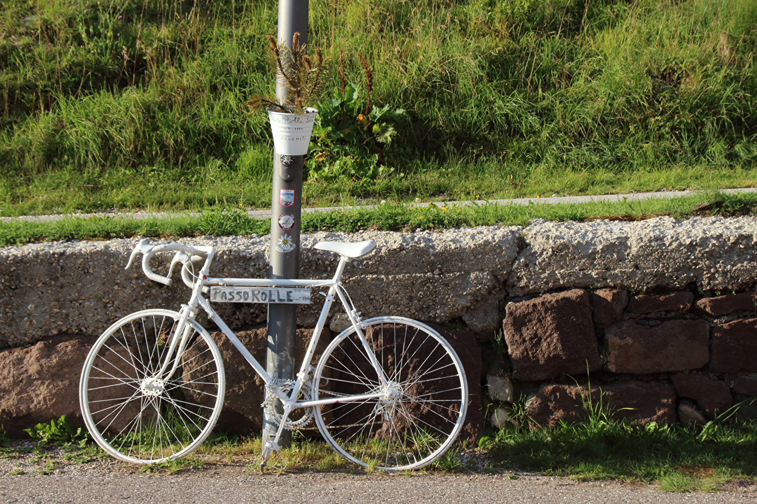 Die Etappe startete bei sonnigem schwülwarmem Wetter. Von Ziano di Fiemme bis Predazzo wurde auf dem Radweg „pista ciclabile val di Fiemme-Fassa“ bis Predazzo gefahren. Ab Predazzo gab es aber kein Entkommen mehr aus der Autoabgas- und Feinstaubwolke, die über der Straße hing. Der Stinkeverkehr reihte sich ab Predazzo immer wieder Stoßstange an Stoßstange. Zu allem Überfluss hatten die Italiener ihre Kleinwagenflotte früherer Jahre mittlerweile größtenteils durch Stadtpanzer ersetzt, obwohl die Straßen in dieser Zeit nicht breiter geworden waren. Diese Stadtpanzer brachten nicht nur noch mehr Autoabgase und Feinstaub, sodern ließen auch nahezu jede Begegnung eng bis gefährlich eng werden. Das schwülwarme Wetter blieb nicht ohne Folgen. Oberhalb von Paneveggio setzte von Süden kommend Regen ein, der das Anlegen der Norddeutschen Trachtenkleidung (mit kurzer Regenhose) erforderte. Weiter oben zog der Regen nach Norden ab, sodass noch vor der Passhöhe wieder im Trockenen ohne Regenkleidung gefahren werden konnte. Kurz vor Erreichen der Passhöhe kam sogar wieder die Sonne raus. Zu Beginn der Abfahrt rückte mit dem Cimon della Pala zum letzten Mal im Rahmen dieser Tour ein Dreitausender in die Nähe. Mit der Abfahrt nach Siror, die bedingt durch Topografie und Sonnenstand im Schatten verlief, endete der hochalpine Teil dieser Tour. Da die Passstraße auf längeren Abschnitten durch Wald verläuft, wo sich nur selten Weitblicke bieten, gibt es vergleichsweise wenig Fotos von dieser Etappe.