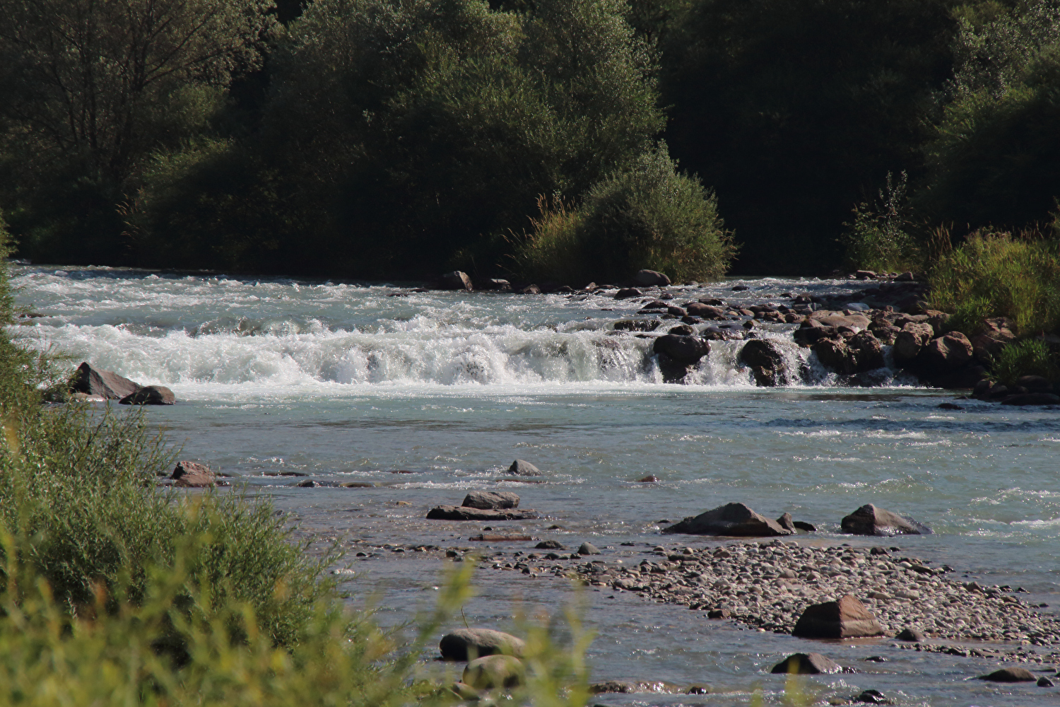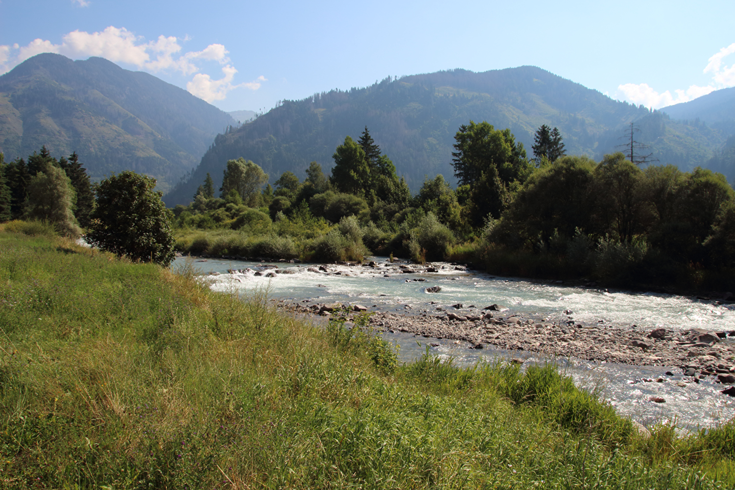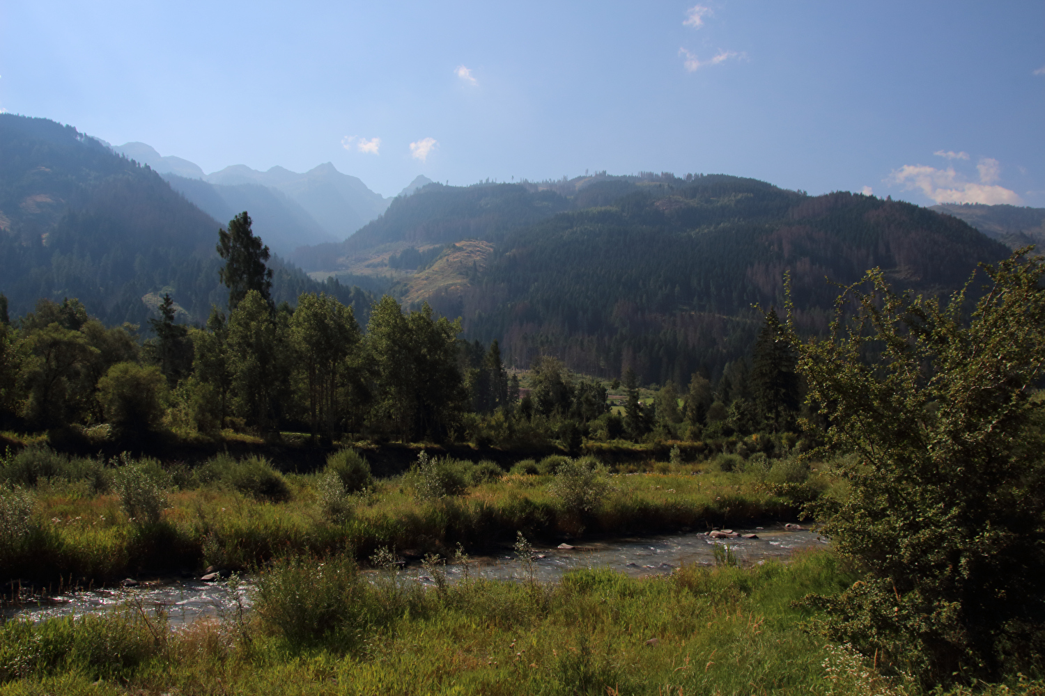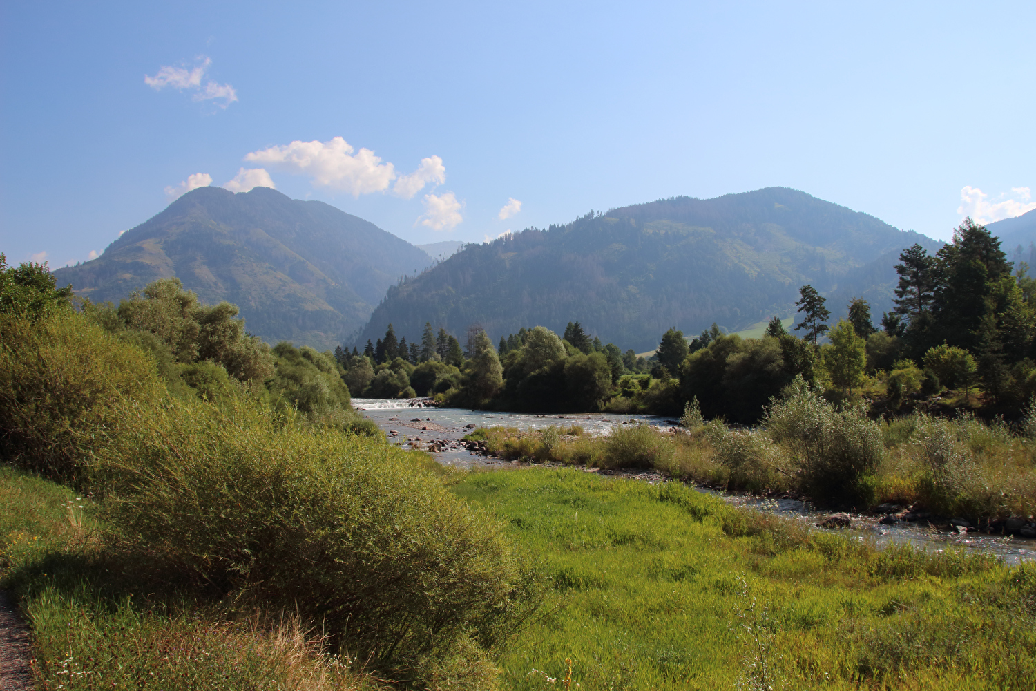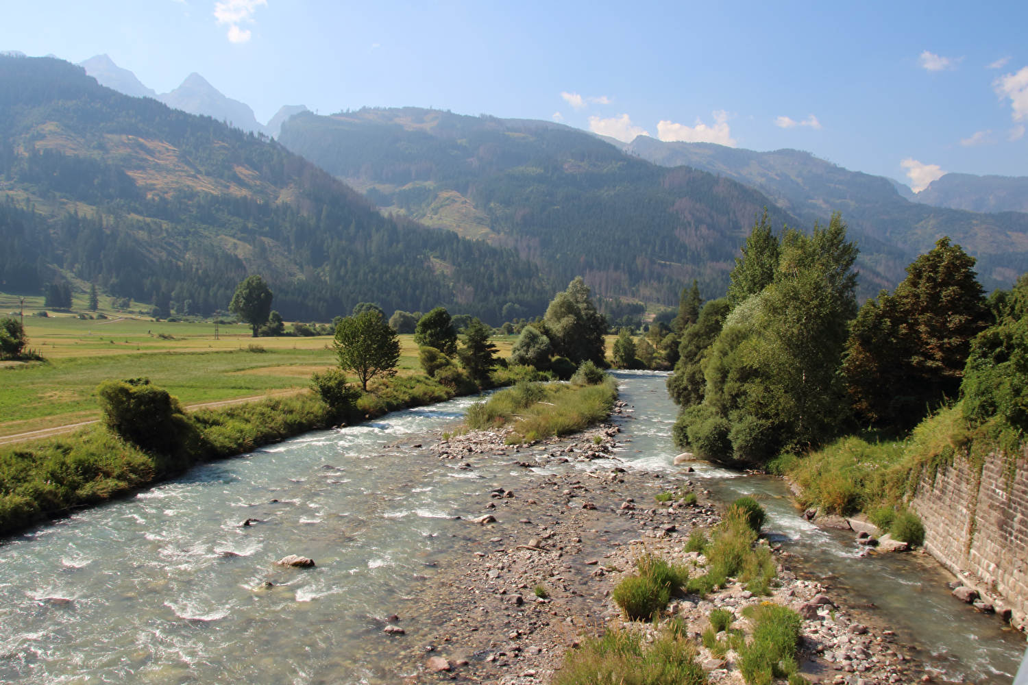 Die Etappe startete bei sonnigem schwülwarmem Wetter. Von Ziano di Fiemme bis Predazzo wurde auf dem Radweg „pista ciclabile val di Fiemme-Fassa“ bis Predazzo gefahren. Ab Predazzo gab es aber kein Entkommen mehr aus der Autoabgas- und Feinstaubwolke, die über der Straße hing. Der Stinkeverkehr reihte sich ab Predazzo immer wieder Stoßstange an Stoßstange. Zu allem Überfluss hatten die Italiener ihre Kleinwagenflotte früherer Jahre mittlerweile größtenteils durch Stadtpanzer ersetzt, obwohl die Straßen in dieser Zeit nicht breiter geworden waren. Diese Stadtpanzer brachten nicht nur noch mehr Autoabgase und Feinstaub, sodern ließen auch nahezu jede Begegnung eng bis gefährlich eng werden. Das schwülwarme Wetter blieb nicht ohne Folgen. Oberhalb von Paneveggio setzte von Süden kommend Regen ein, der das Anlegen der Norddeutschen Trachtenkleidung (mit kurzer Regenhose) erforderte. Weiter oben zog der Regen nach Norden ab, sodass noch vor der Passhöhe wieder im Trockenen ohne Regenkleidung gefahren werden konnte. Kurz vor Erreichen der Passhöhe kam sogar wieder die Sonne raus. Zu Beginn der Abfahrt rückte mit dem Cimon della Pala zum letzten Mal im Rahmen dieser Tour ein Dreitausender in die Nähe. Mit der Abfahrt nach Siror, die bedingt durch Topografie und Sonnenstand im Schatten verlief, endete der hochalpine Teil dieser Tour. Da die Passstraße auf längeren Abschnitten durch Wald verläuft, wo sich nur selten Weitblicke bieten, gibt es vergleichsweise wenig Fotos von dieser Etappe.
