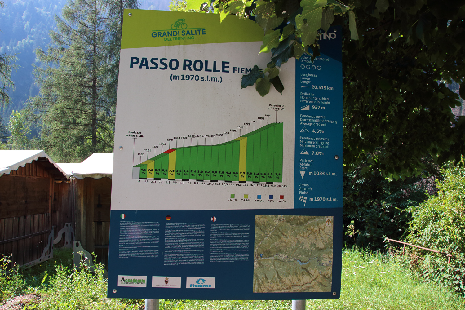 Panchià (959) – Ziano di Fiemme (960) – Predazzo (1011) – Bellamonte (1365) – Paneveggio (1541) – Passo Rolle (1970) – San Martino di Castrozza (1451) – Siror (758)