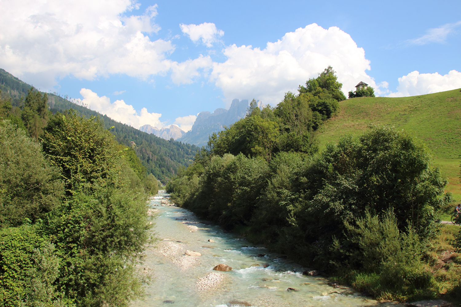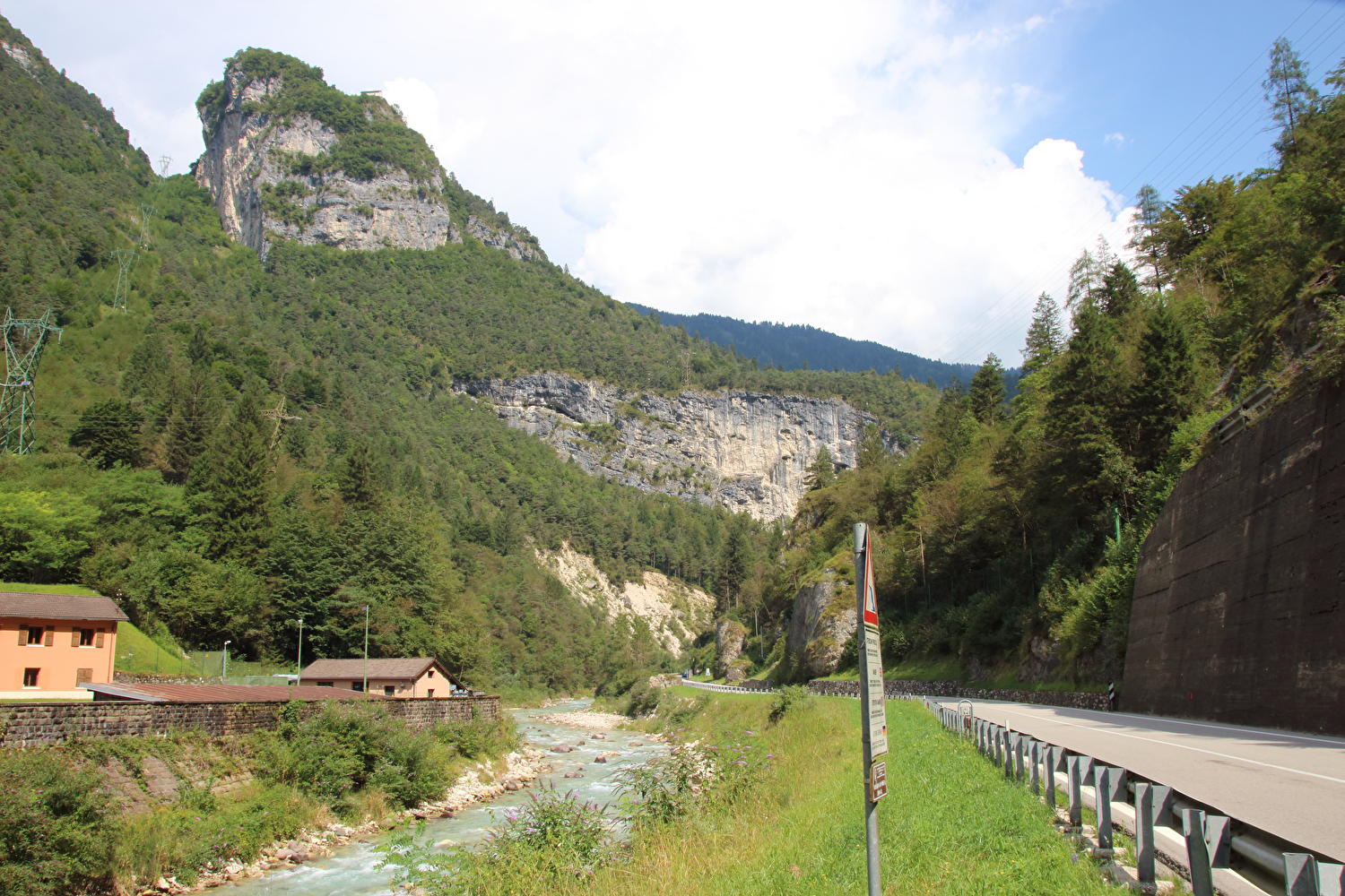 Dieser Radweg „Pista ciclabile Primiero“ endet bereits nach nur 11 km bei Imer aus Platzgründen. Von diesem Radweg aus bieten sich talaufwärts einige Blicke auf die Gruppo delle Pale mit ihren Dreitausendern. Bei Imer wechselt das Landschaftsbild. Das Val di Primiero geht von einem alpinen Flusstal mit relativ breitem Talboden und entsprechend weit reichenden Aussichten in die mehr oder weniger enge Schlucht „Gola dello Schenèr“, auch „Val Schenèr“ genannt, über. In dieser Schlucht ist kein Platz für einen Radweg zusätzlich zur Straße. Die Gipfel der umgebenden Berge sind größtenteils bewaldet.