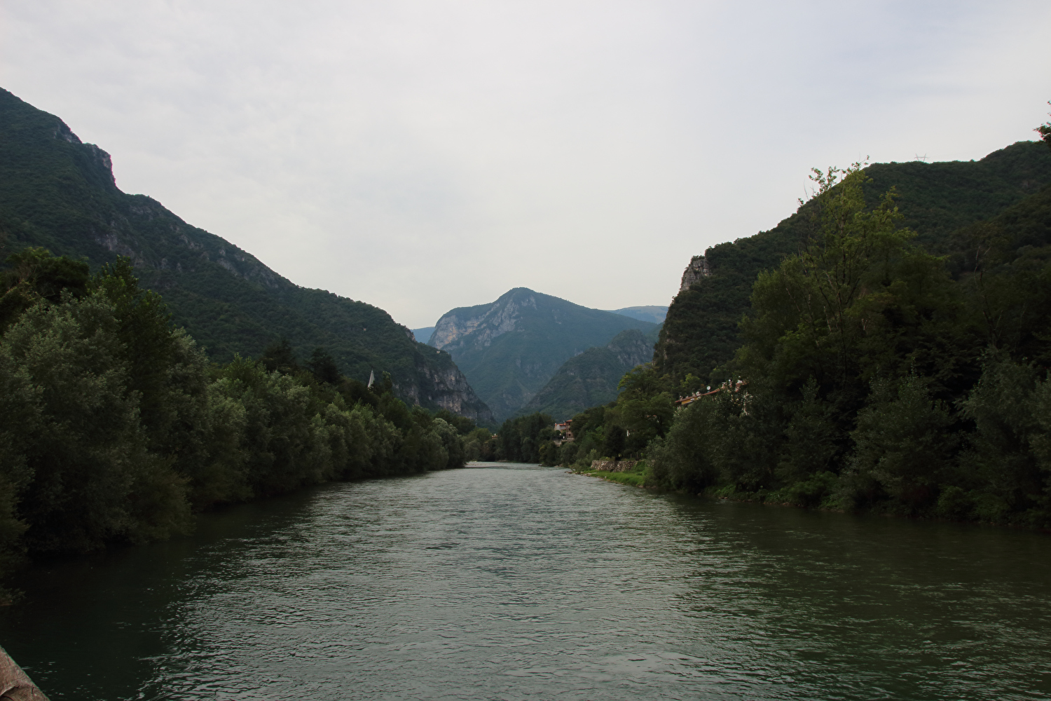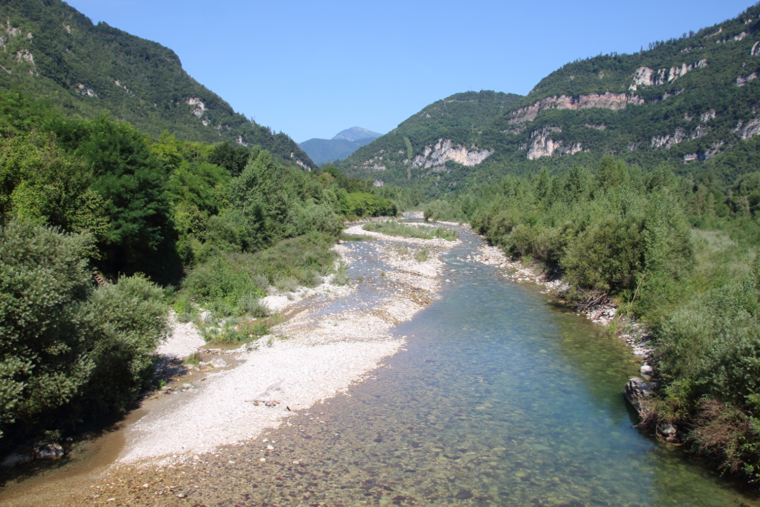 „Canale“ kann in Italien nicht nur einen Kanal, sondern auch wie in diesem Fall ein sehr enges schluchtartiges Flusstal bezeichnen. Die steilen Felswände im Canale di Brenta täuschen ein wenig darüber hinweg, dass das Gelände insgesamt sehr tief liegt. Aus dem Canale di Brenta wechselt der Brenta in die Tiefebene „Pianura veneto-friulana“. Am Nordrand der Pianura veneto-friulana enden die Prealpi Venete. Die Pianura veneto-friulana erstreckt sich nach Süden bis zum Golfo di Venezia, dem nördlichsten Teil des Mare Adriatico, einem Teil des Mittelmeeres (italienisch: Mar Mediterraneo). An Land bildet die Pianura veneto-friulana die östliche Fortsetzung der Pianura Padana, wird aber mitunter auch der Pianura Padana zugerechnet, obwohl die Flüsse, die die Pianura veneto-friulana durchfließen, nicht mehr zum Einzugsgebiet des Po, der die Pianura Padana durchfließt, gehören.