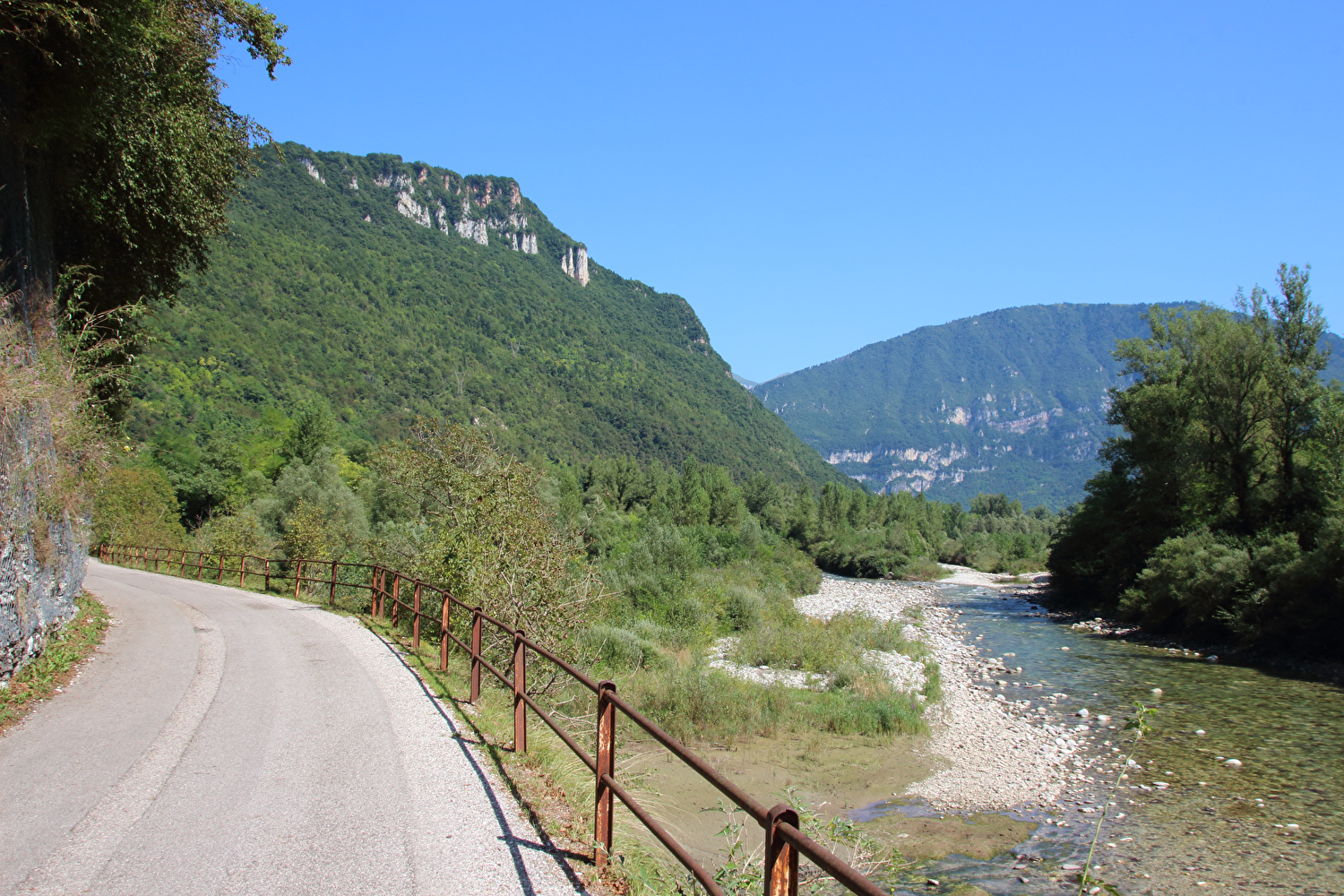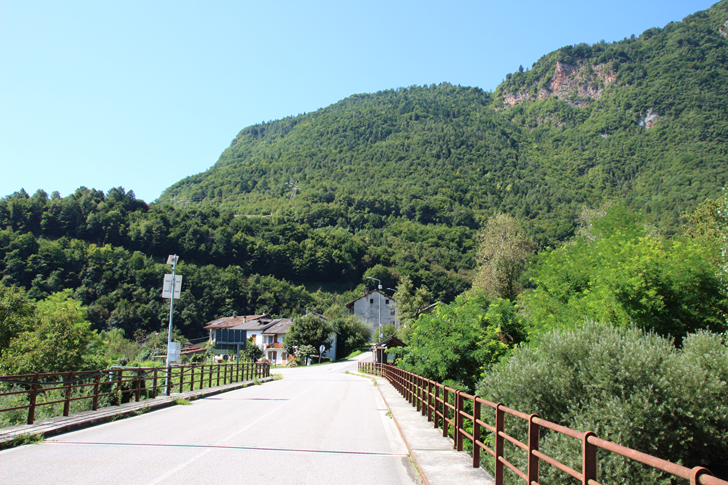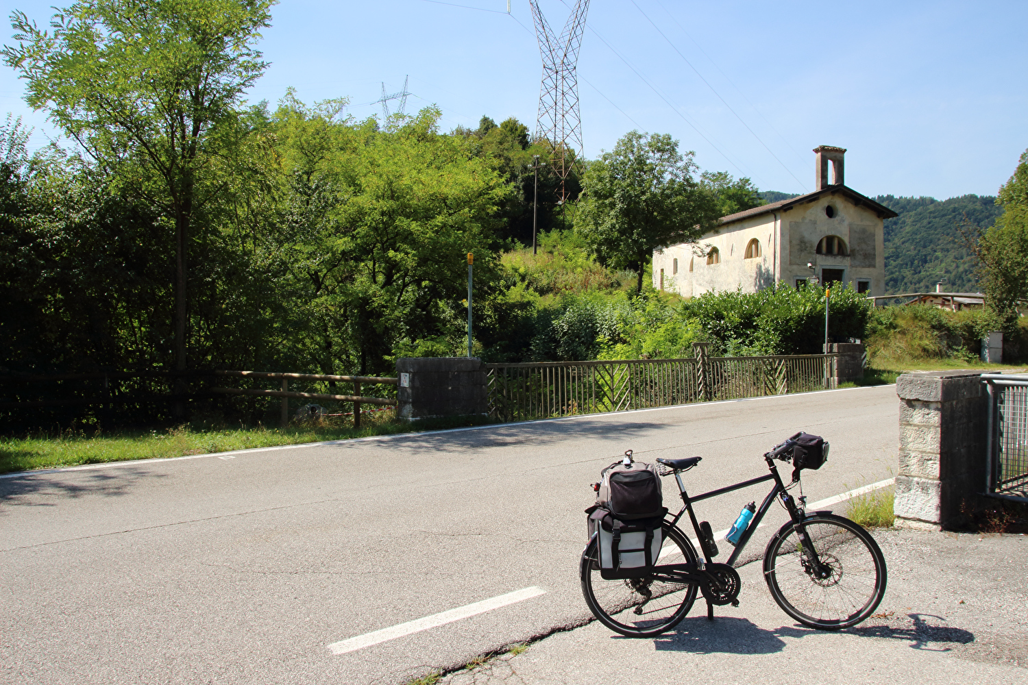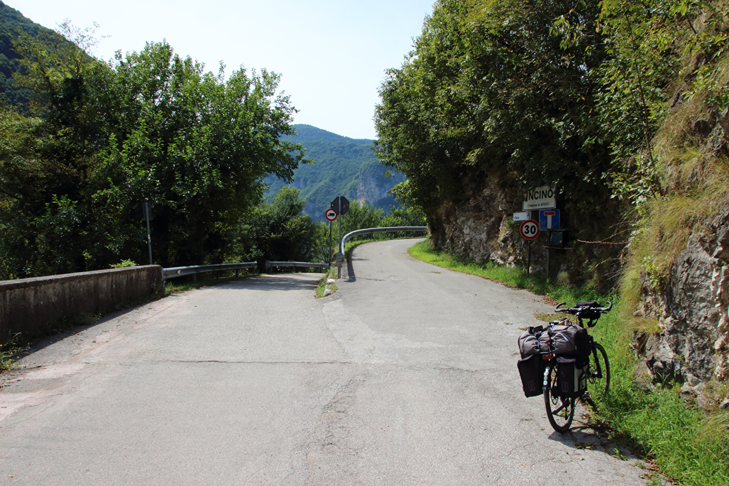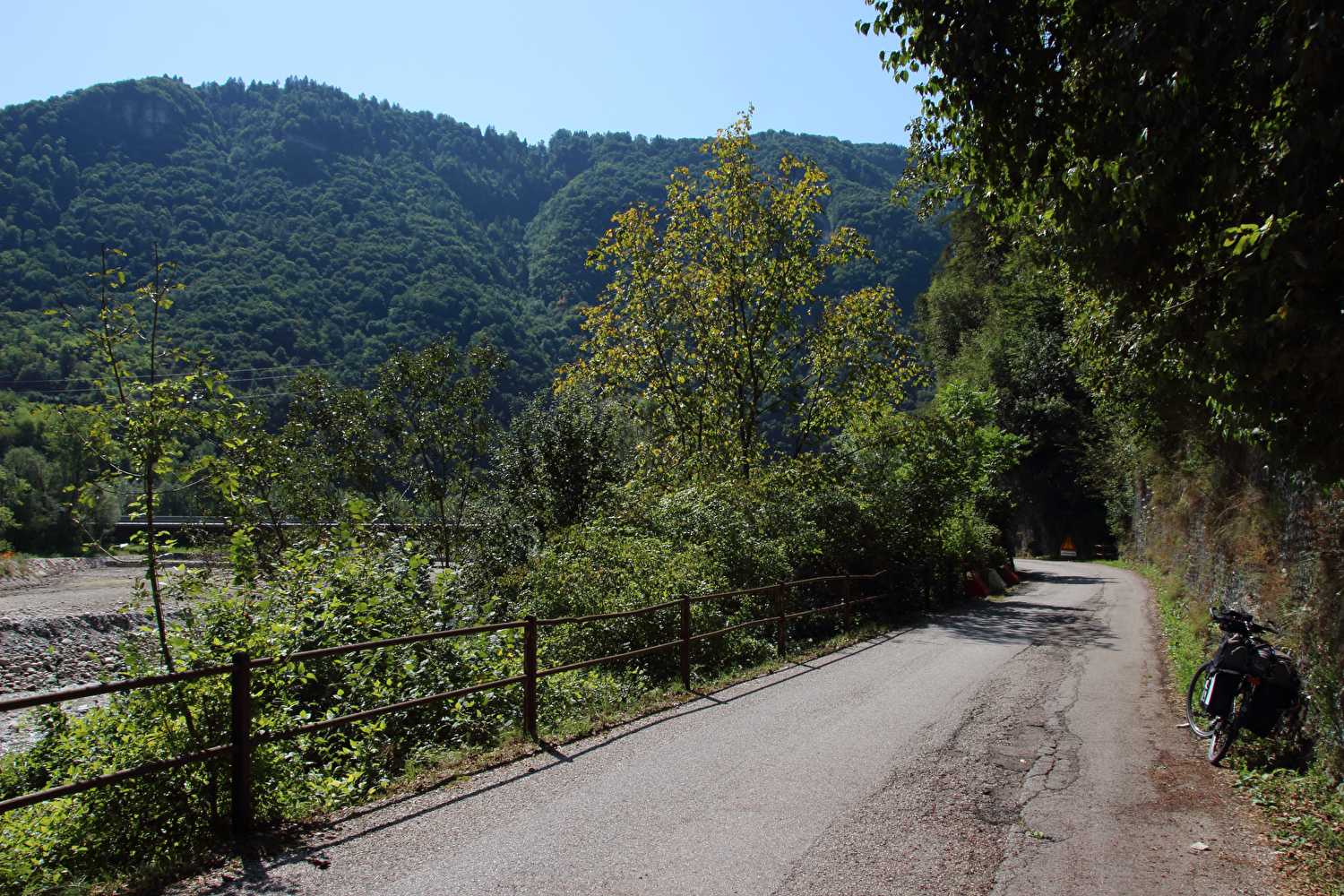 Da am Vortag die kurze flache Variante für die Etappe gewählt worden war, stand zunächst eine inverse Streckenwiederholung an. Zur Reduktion dieses Streckenanteils wurde von Feltre nach Arten ein Umweg über Mugnai gefahren. In Fonzaso endete die inverse Streckenwiederholung, die Etappe führte nun durch den unteren Teil der Gola dello Schenèr, die teilweise durch die Aufstauung des Cismon zum Lago di Corlo unter Wasser liegt. Im Südteil von Rocca di Arsiè steht ein Kirchturm ohne Kirche. Die Kirche fiel der Aufstauung des Cismon zum Opfer. Das im Kirchturm installierte Geläut ist funktionsfähig und wird genutzt. Im Ortskern von Rocca di Arsiè steht quasi als Gegenstück eine Kirche ohne Kirchturm. Ob zwischen dem Kirchturm ohne Kirche und der nicht weit entfernten Kirche ohne Kirchturm ein kausaler Zusammenhang besteht, ließ sich während der Etappe vor Ort nicht klären. Von Rocca di Arsiè nach Incio folgte ein kurzer aber knackiger Anstieg. Die anschließende Abfahrt nach Pedancino verlief auf einer Straße mit erfreulich gar keinem Stinkeverkehr. Irgendwann war man vor Ort zu der Einsicht gelangt, dass Autos auf dieser sehr schmalen Straße mit einigen extrem engen Kehren und sehr weit überhängenden Felsen keine so gute Idee waren. Mit einer Sperre in Form zweier Betonblöcke, die nur von Fußgängern, Zweiradfahrern und Reitern passiert werden kann, wurde dem Autoverkehr ein Ende gesetzt. Bei Pedancino wurde der Cismon, der wenig weiter flussabwärts in den Brenta mündet, ein letztes Mal überquert. Von Cismon del Grappa bis Sant'Eusebio wurde auf der Radroute „Ciclopista del Brenta“ gefahren, die in diesem Abschnitt auf Nebenstraßen am Westufer des Brenta geführt wird. Die einzige Brücke von Cismon del Grappa über den Brenta zur Radroute ist als Fußgängerbrücke ausgewiesen, und bei deren Anblick wurde auch sofort klar, dass diese schiebend zu überqueren war. Ab dort führte die Etappe bis Campese durch das Canale di Brenta.