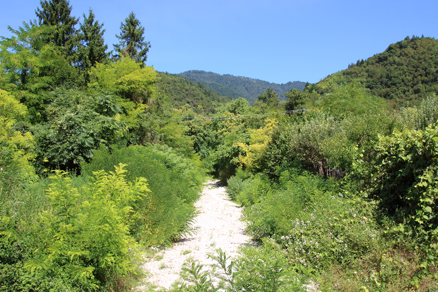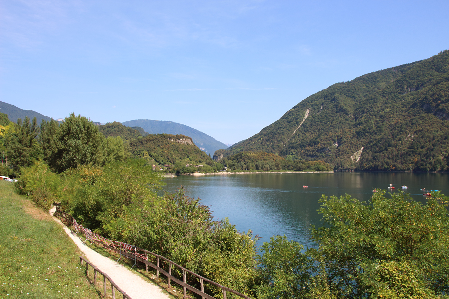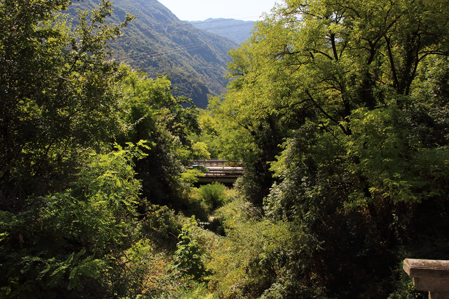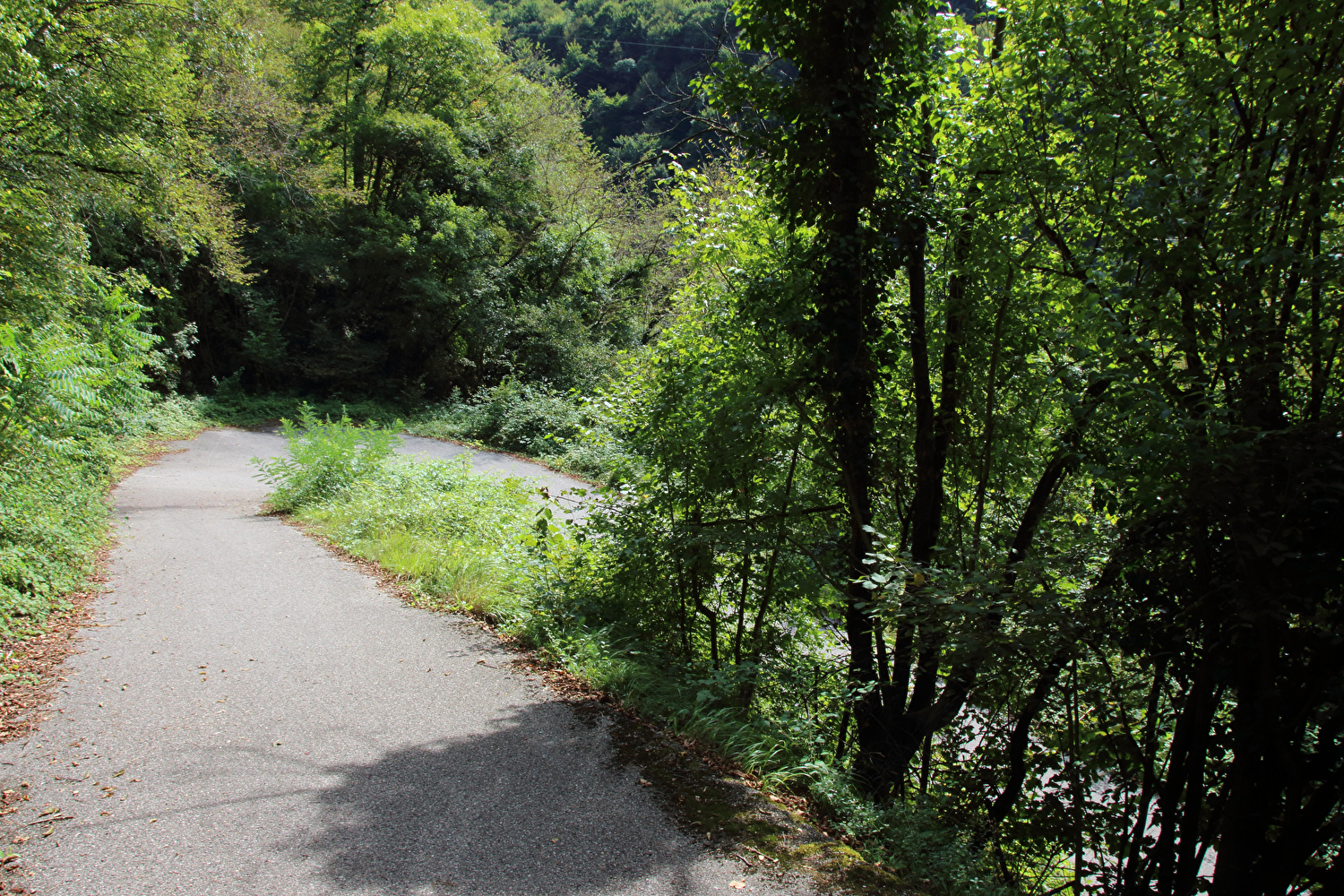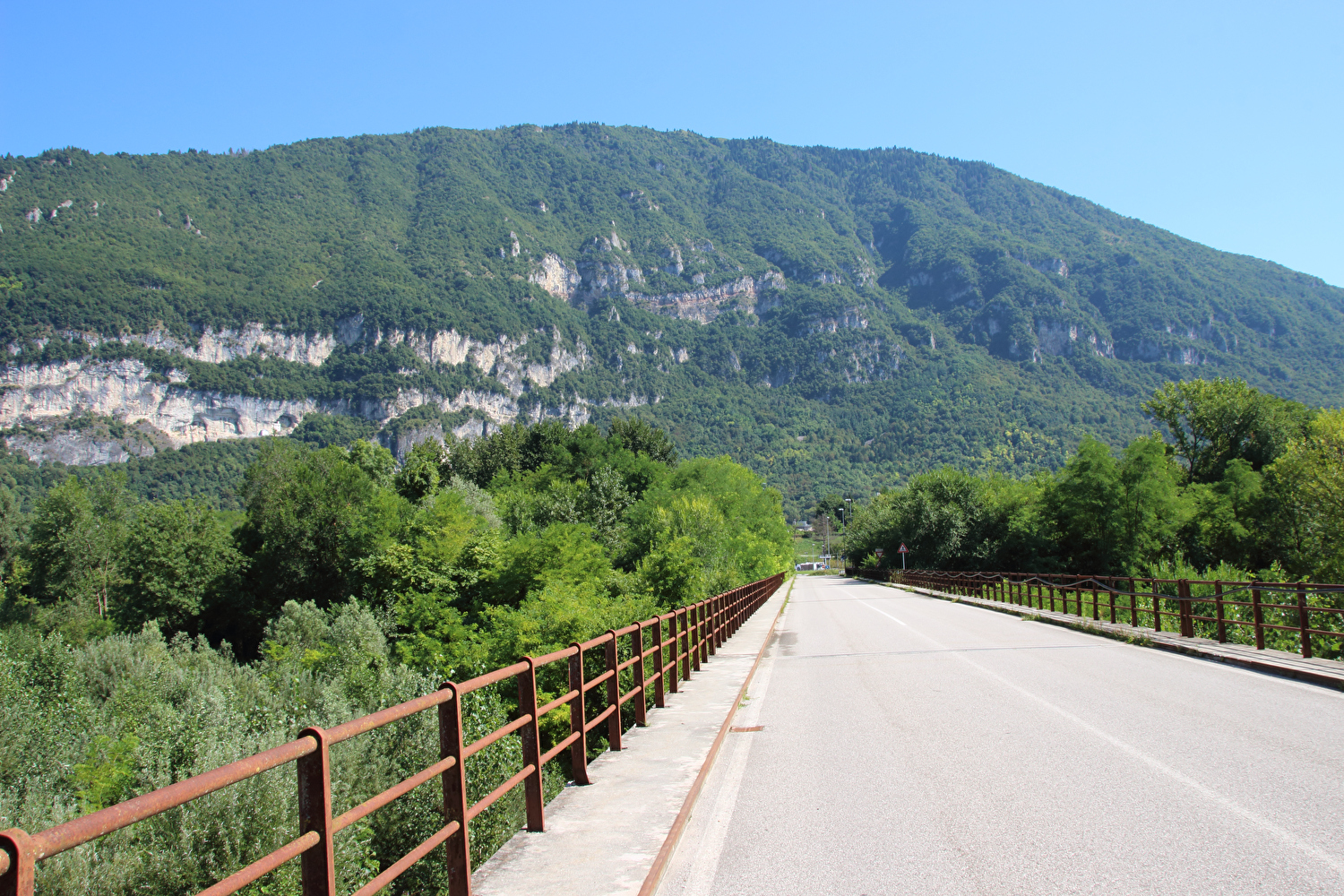 Da am Vortag die kurze flache Variante für die Etappe gewählt worden war, stand zunächst eine inverse Streckenwiederholung an. Zur Reduktion dieses Streckenanteils wurde von Feltre nach Arten ein Umweg über Mugnai gefahren. In Fonzaso endete die inverse Streckenwiederholung, die Etappe führte nun durch den unteren Teil der Gola dello Schenèr, die teilweise durch die Aufstauung des Cismon zum Lago di Corlo unter Wasser liegt. Im Südteil von Rocca di Arsiè steht ein Kirchturm ohne Kirche. Die Kirche fiel der Aufstauung des Cismon zum Opfer. Das im Kirchturm installierte Geläut ist funktionsfähig und wird genutzt. Im Ortskern von Rocca di Arsiè steht quasi als Gegenstück eine Kirche ohne Kirchturm. Ob zwischen dem Kirchturm ohne Kirche und der nicht weit entfernten Kirche ohne Kirchturm ein kausaler Zusammenhang besteht, ließ sich während der Etappe vor Ort nicht klären. Von Rocca di Arsiè nach Incio folgte ein kurzer aber knackiger Anstieg. Die anschließende Abfahrt nach Pedancino verlief auf einer Straße mit erfreulich gar keinem Stinkeverkehr. Irgendwann war man vor Ort zu der Einsicht gelangt, dass Autos auf dieser sehr schmalen Straße mit einigen extrem engen Kehren und sehr weit überhängenden Felsen keine so gute Idee waren. Mit einer Sperre in Form zweier Betonblöcke, die nur von Fußgängern, Zweiradfahrern und Reitern passiert werden kann, wurde dem Autoverkehr ein Ende gesetzt. Bei Pedancino wurde der Cismon, der wenig weiter flussabwärts in den Brenta mündet, ein letztes Mal überquert. Von Cismon del Grappa bis Sant'Eusebio wurde auf der Radroute „Ciclopista del Brenta“ gefahren, die in diesem Abschnitt auf Nebenstraßen am Westufer des Brenta geführt wird. Die einzige Brücke von Cismon del Grappa über den Brenta zur Radroute ist als Fußgängerbrücke ausgewiesen, und bei deren Anblick wurde auch sofort klar, dass diese schiebend zu überqueren war. Ab dort führte die Etappe bis Campese durch das Canale di Brenta.