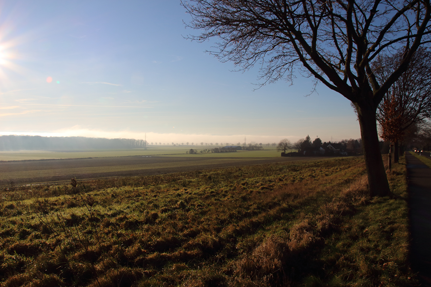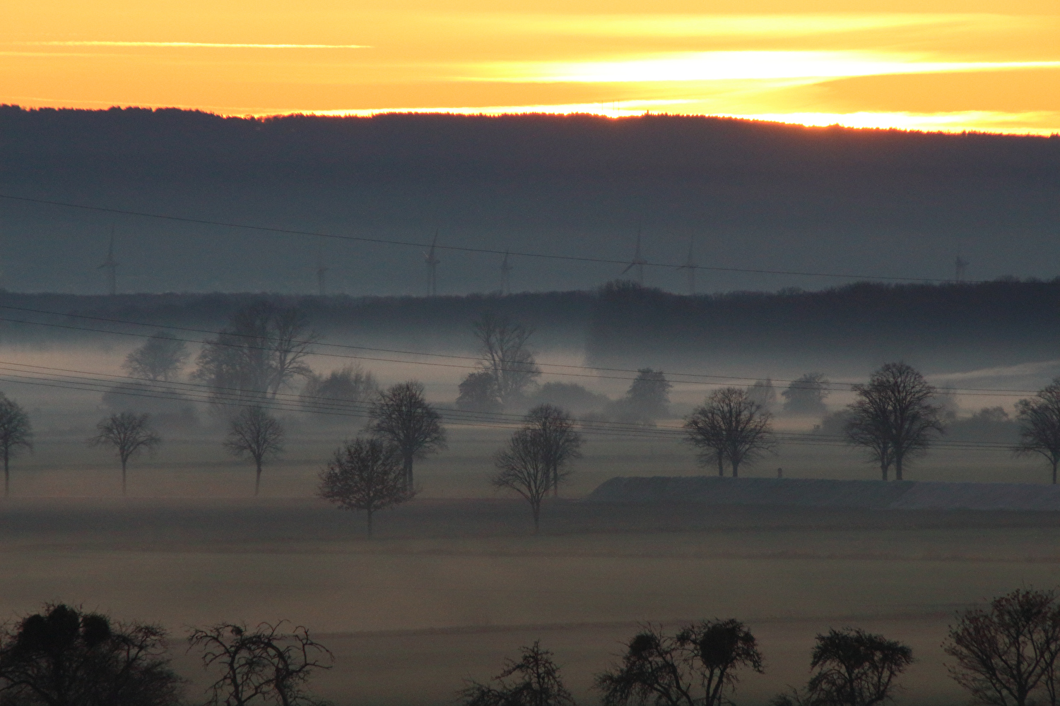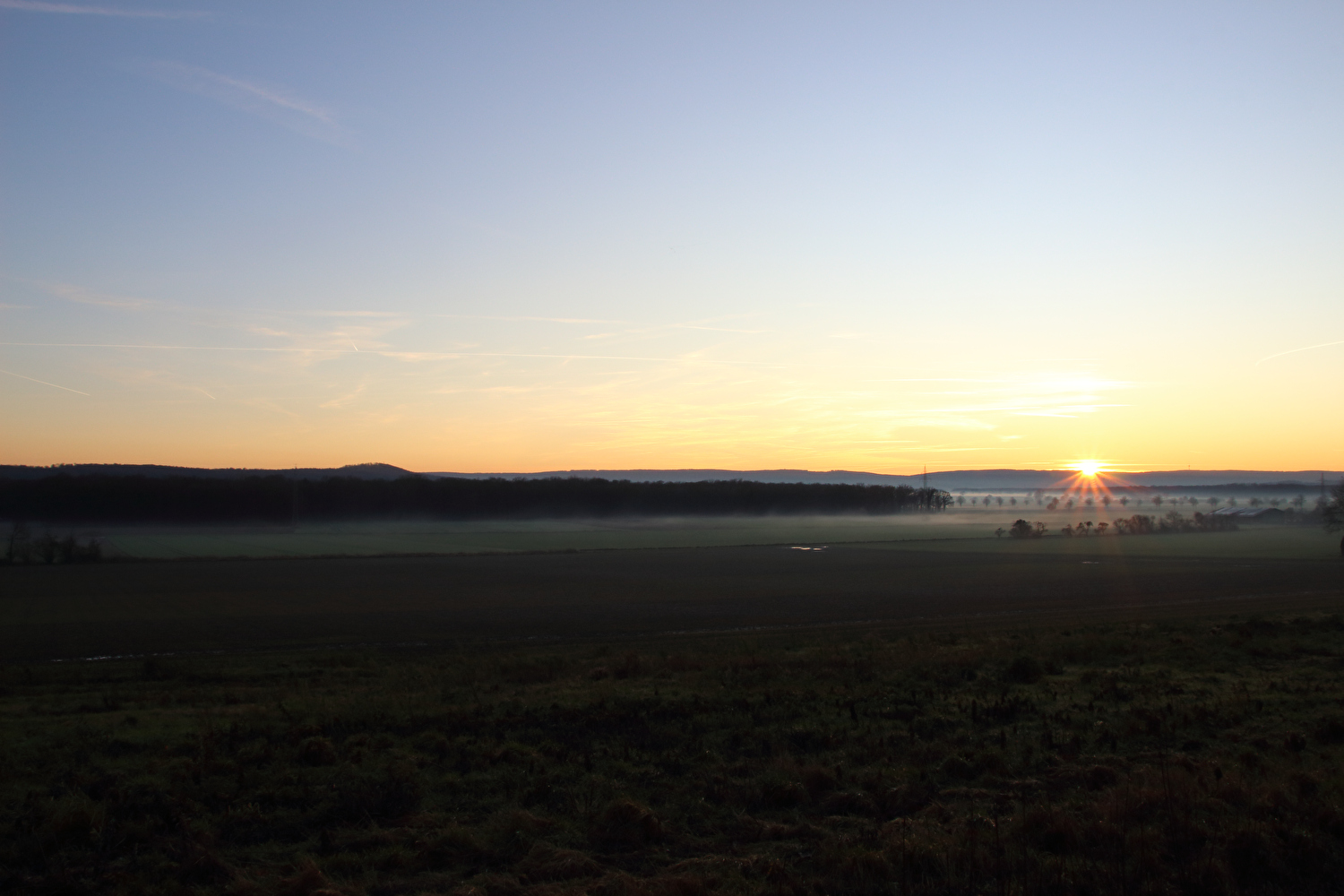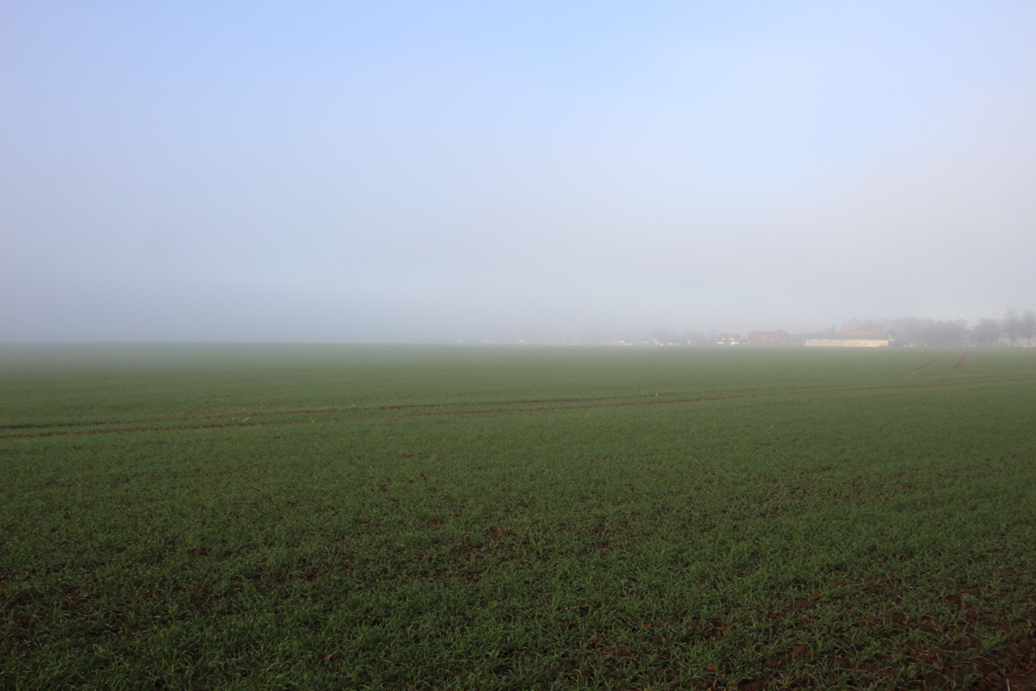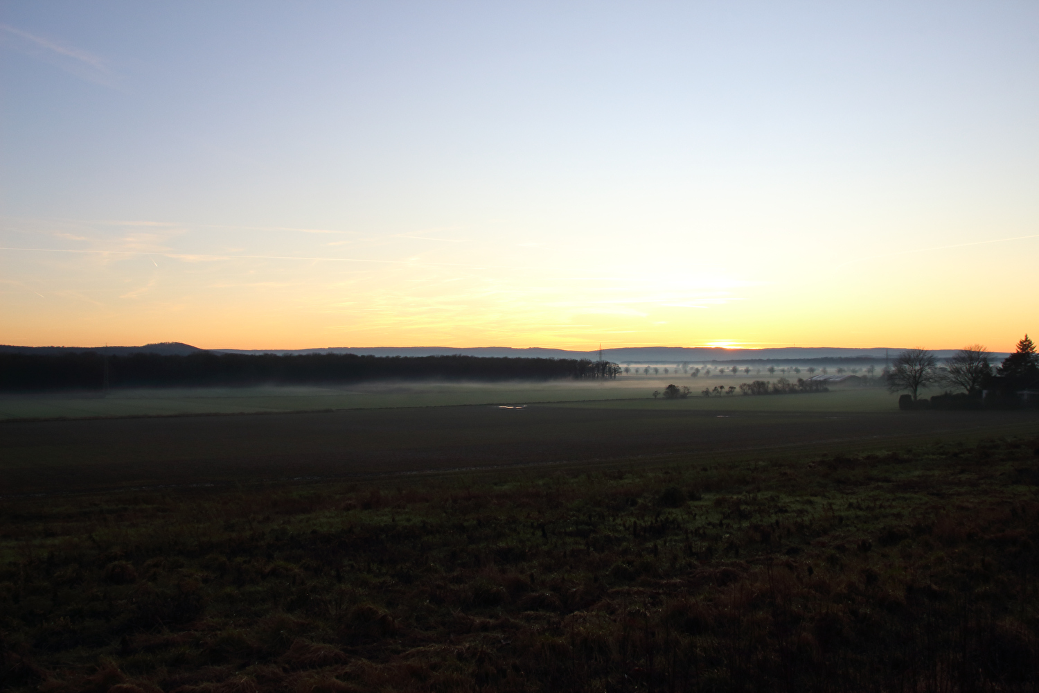 Nach tagelangem Dauergrau fraß sich an diesem Tag ab Mittag die Sonne mehr und mehr durch den Nebel. Diese Gelegenheit wurde für eine kurze Saisonabschlusstour genutzt. Teilweise lagen flache Nebelbänke in der Landschaft. Außerhalb derer war die Fernsicht sehr gut und reichte bis zum Brocken im Harz. Länger hätte die Tour nicht dauern dürften, denn nach Sonnenuntergang wurde es rasch kälter, wobei die sehr feuchte Luft die Kälte besonders gut vermittelte.