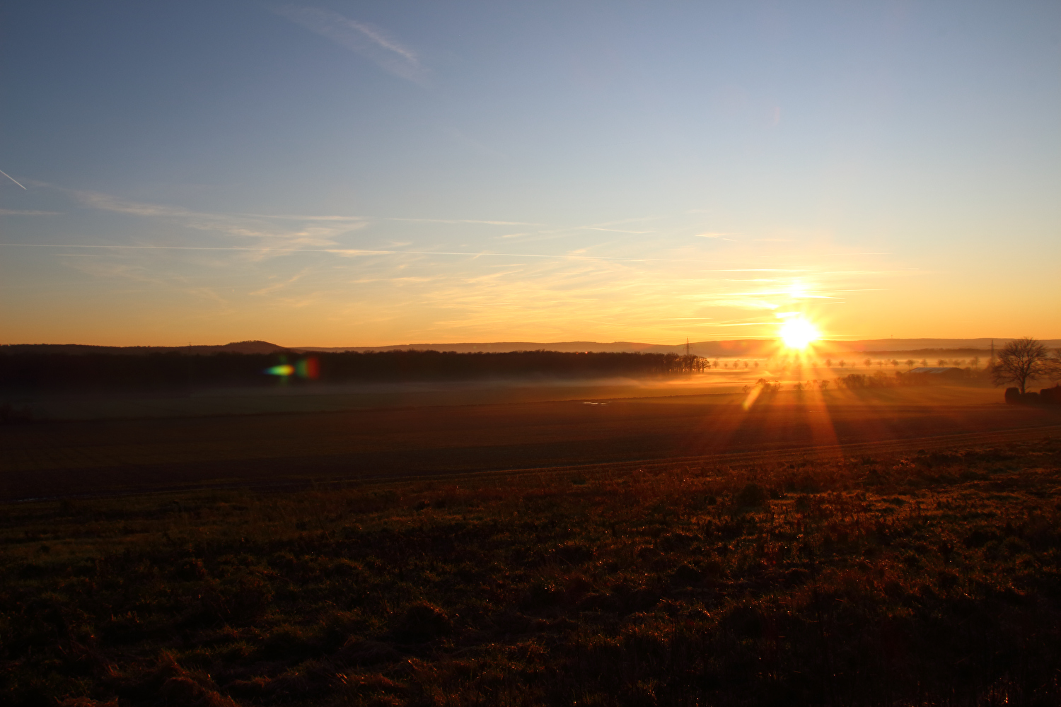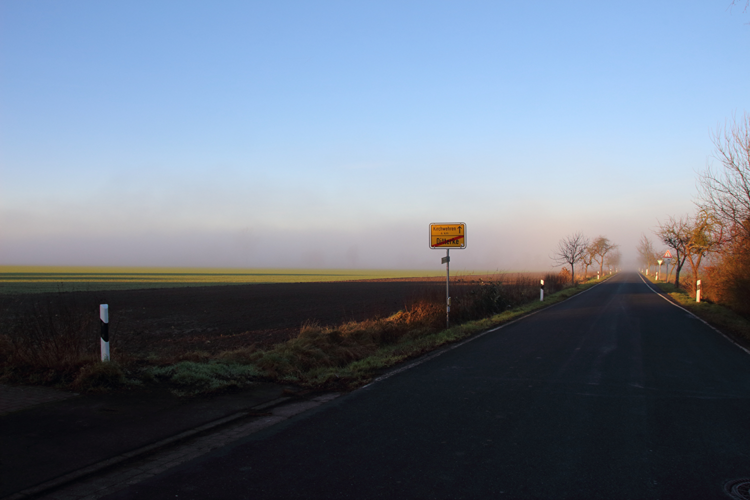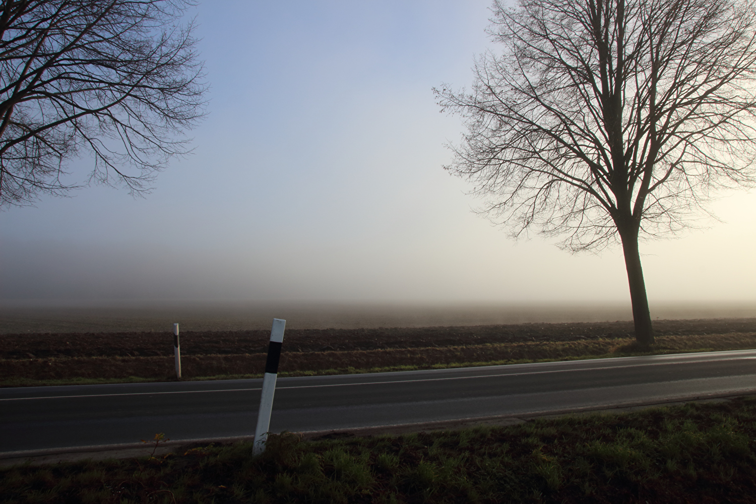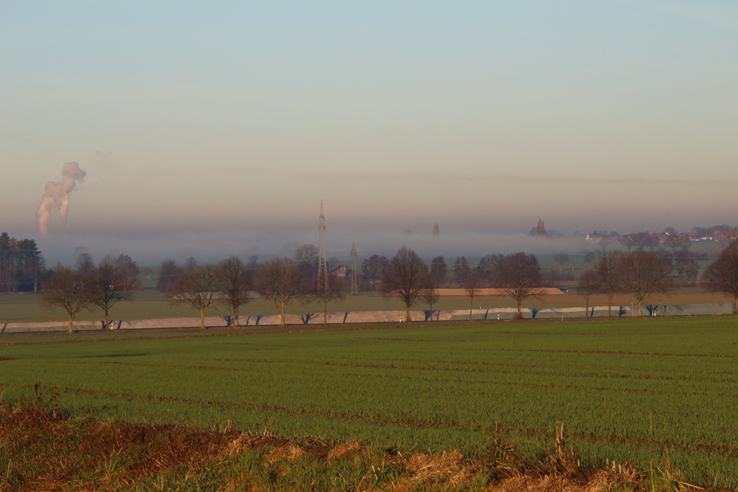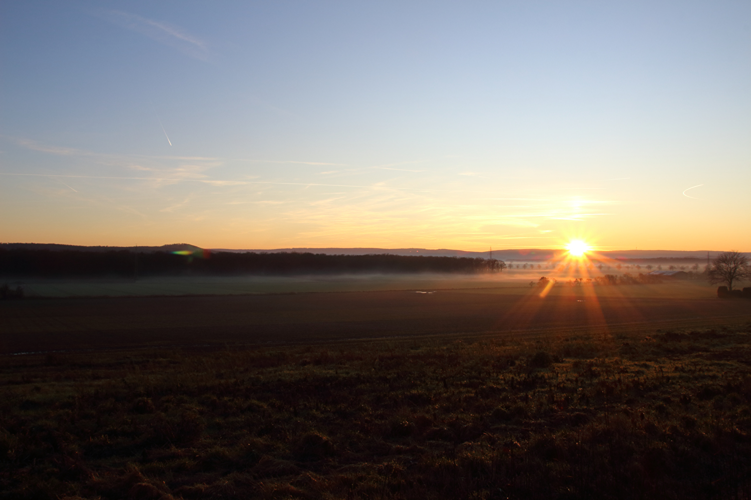 Nach tagelangem Dauergrau fraß sich an diesem Tag ab Mittag die Sonne mehr und mehr durch den Nebel. Diese Gelegenheit wurde für eine kurze Saisonabschlusstour genutzt. Teilweise lagen flache Nebelbänke in der Landschaft. Außerhalb derer war die Fernsicht sehr gut und reichte bis zum Brocken im Harz. Länger hätte die Tour nicht dauern dürften, denn nach Sonnenuntergang wurde es rasch kälter, wobei die sehr feuchte Luft die Kälte besonders gut vermittelte.