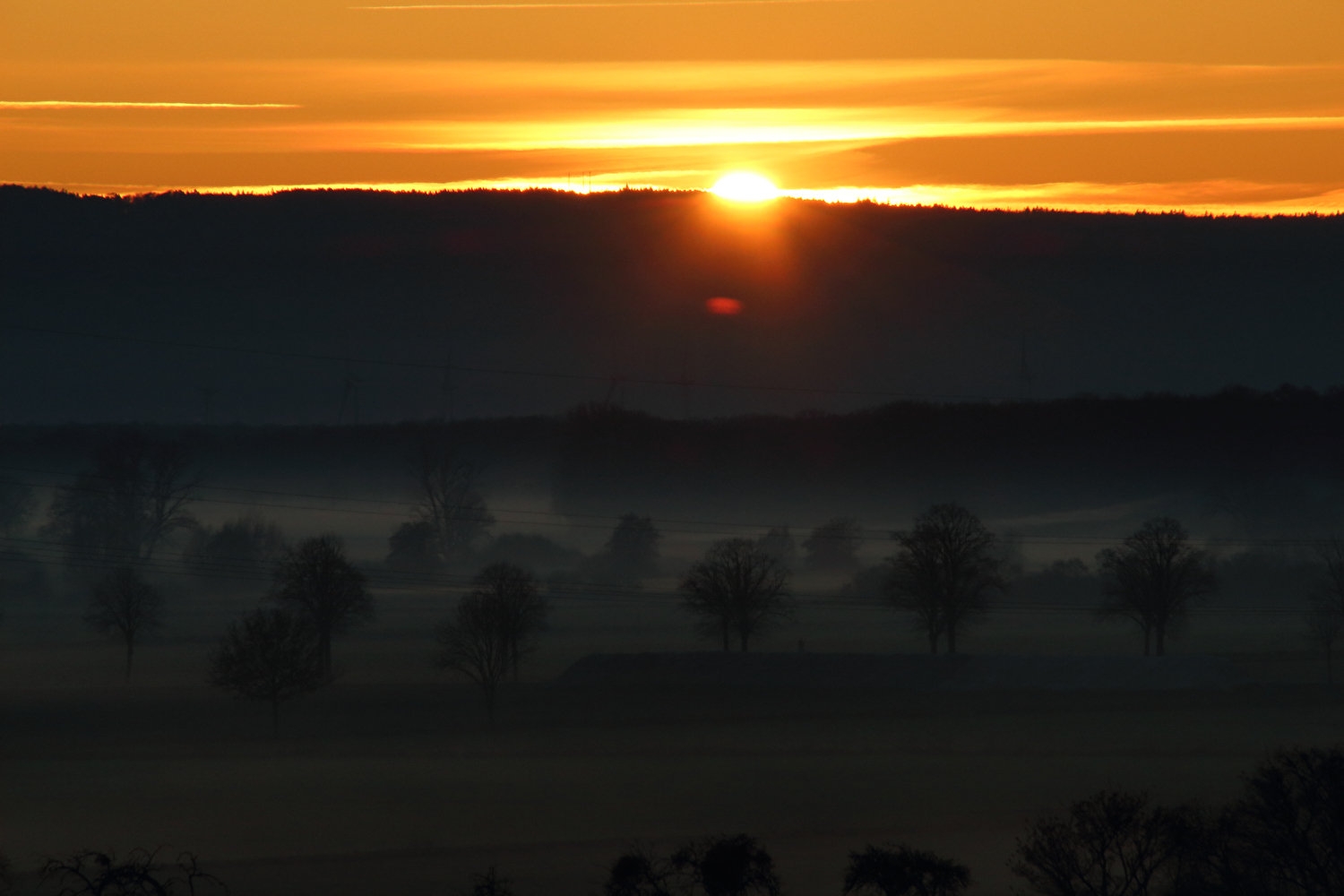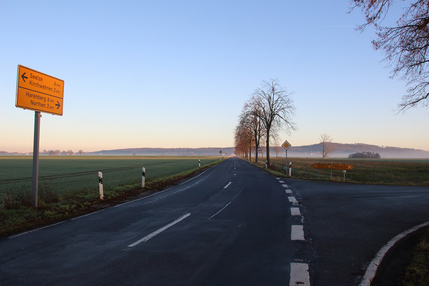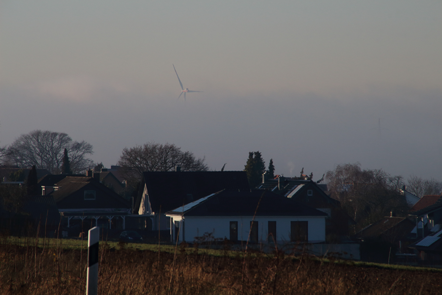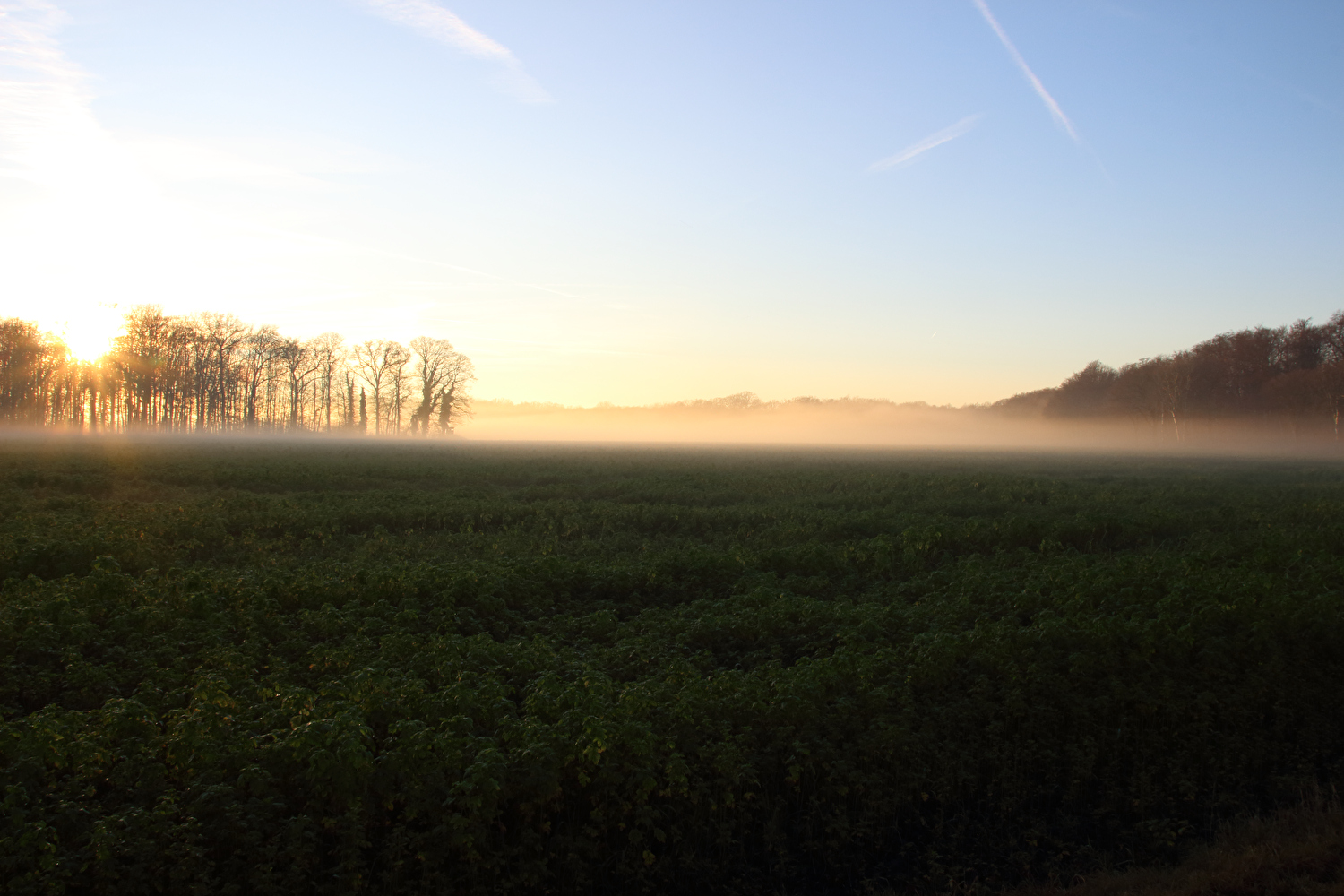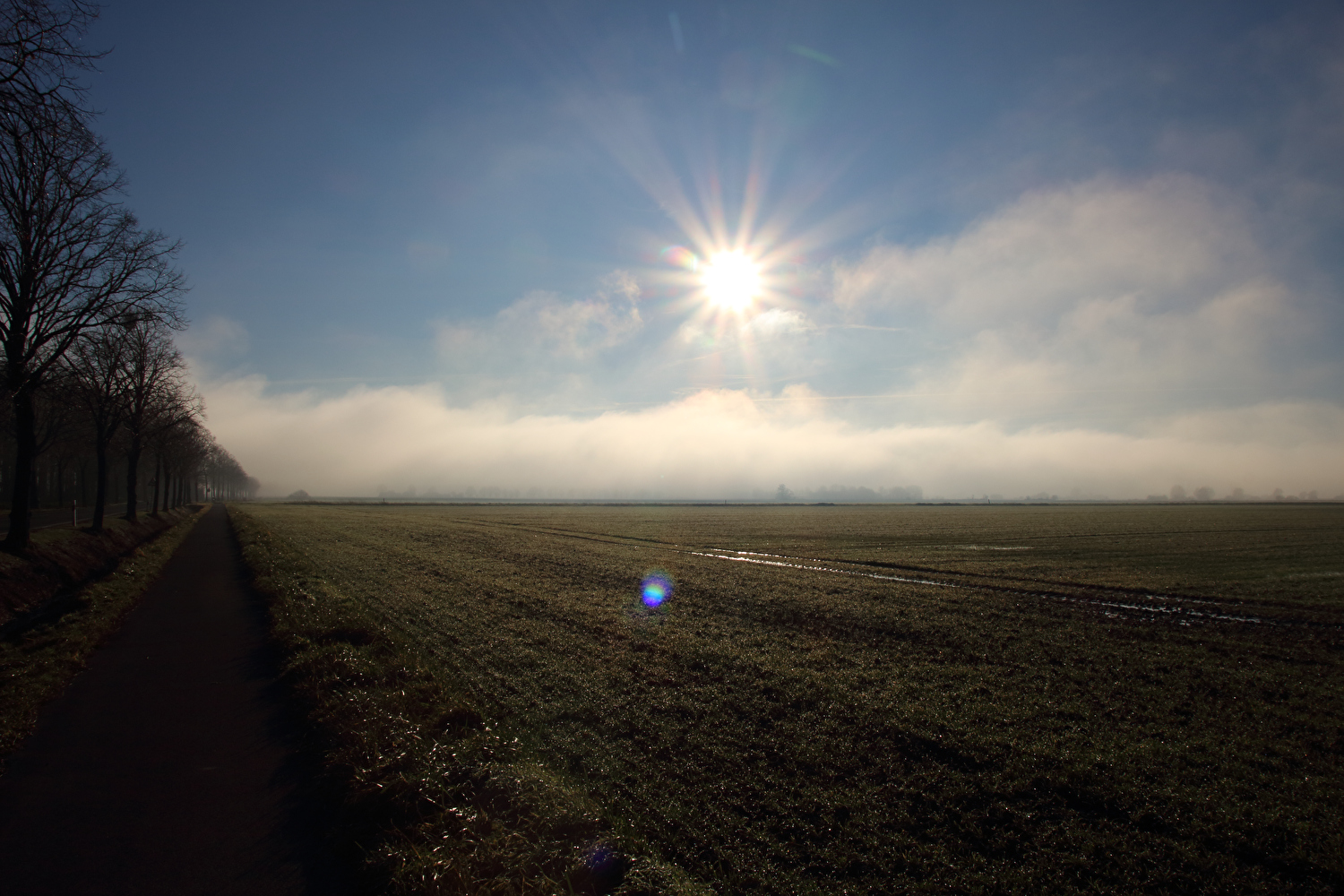 Nach tagelangem Dauergrau fraß sich an diesem Tag ab Mittag die Sonne mehr und mehr durch den Nebel. Diese Gelegenheit wurde für eine kurze Saisonabschlusstour genutzt. Teilweise lagen flache Nebelbänke in der Landschaft. Außerhalb derer war die Fernsicht sehr gut und reichte bis zum Brocken im Harz. Länger hätte die Tour nicht dauern dürften, denn nach Sonnenuntergang wurde es rasch kälter, wobei die sehr feuchte Luft die Kälte besonders gut vermittelte.