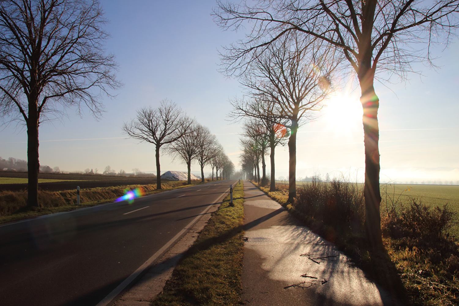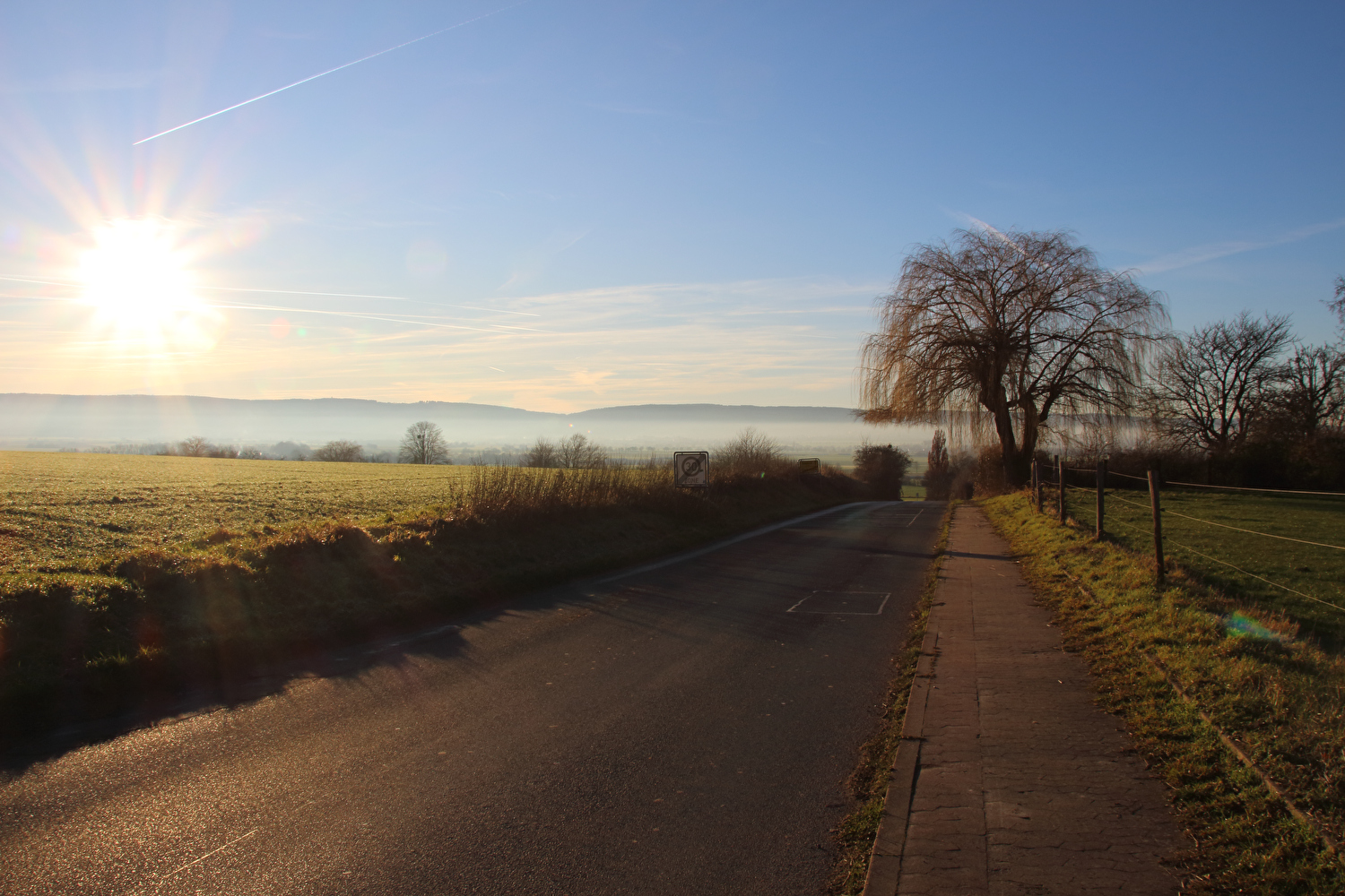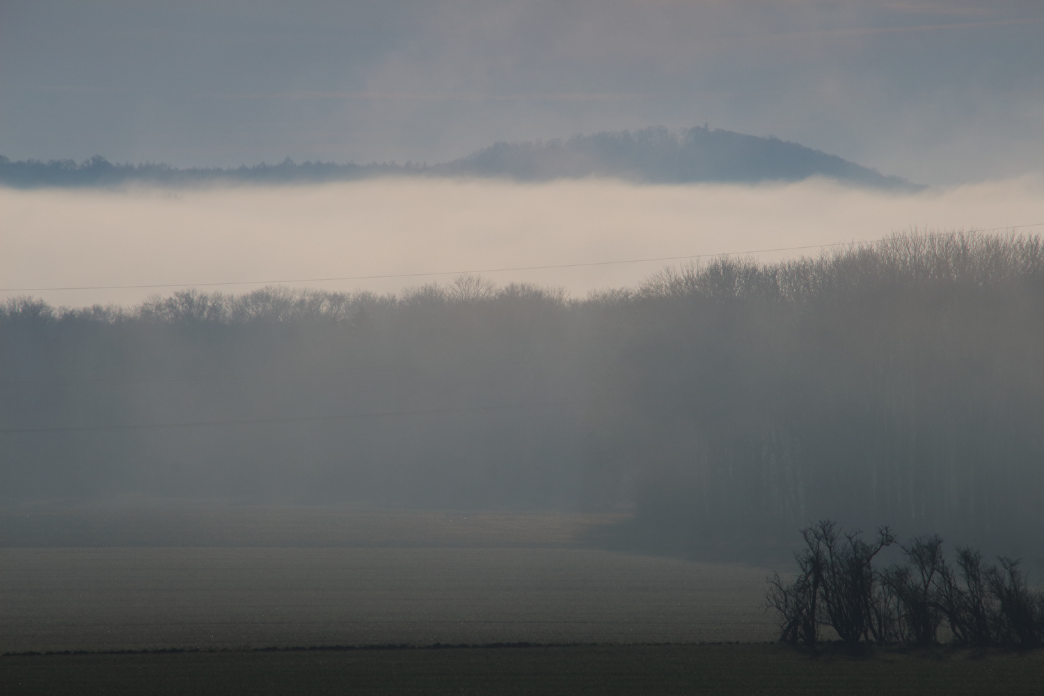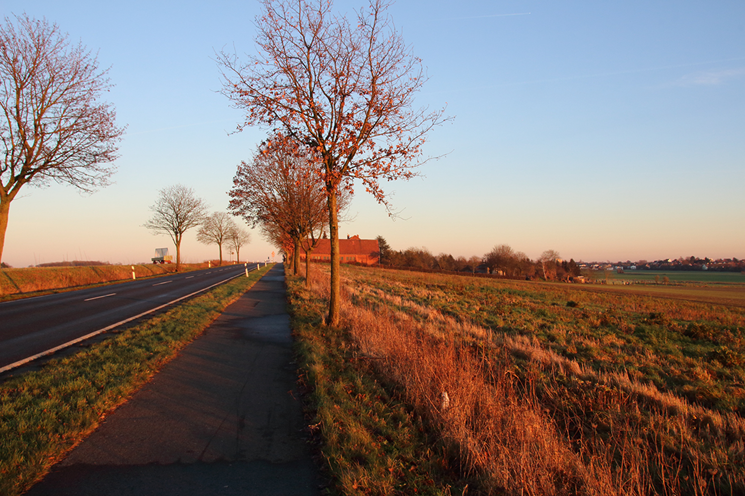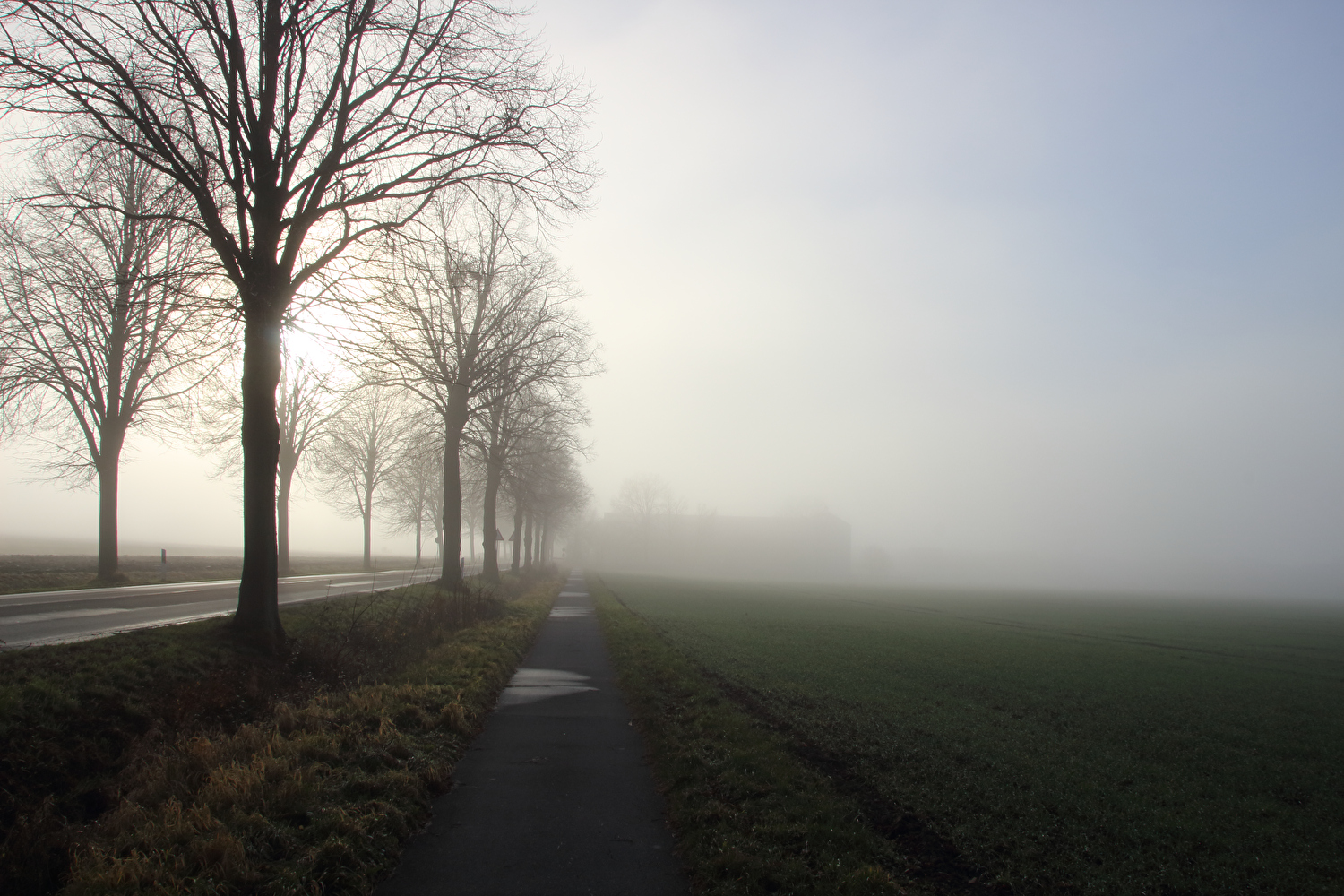 Nach tagelangem Dauergrau fraß sich an diesem Tag ab Mittag die Sonne mehr und mehr durch den Nebel. Diese Gelegenheit wurde für eine kurze Saisonabschlusstour genutzt. Teilweise lagen flache Nebelbänke in der Landschaft. Außerhalb derer war die Fernsicht sehr gut und reichte bis zum Brocken im Harz. Länger hätte die Tour nicht dauern dürften, denn nach Sonnenuntergang wurde es rasch kälter, wobei die sehr feuchte Luft die Kälte besonders gut vermittelte.