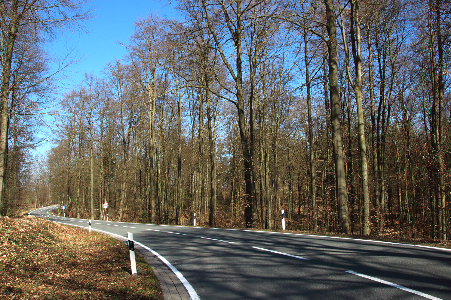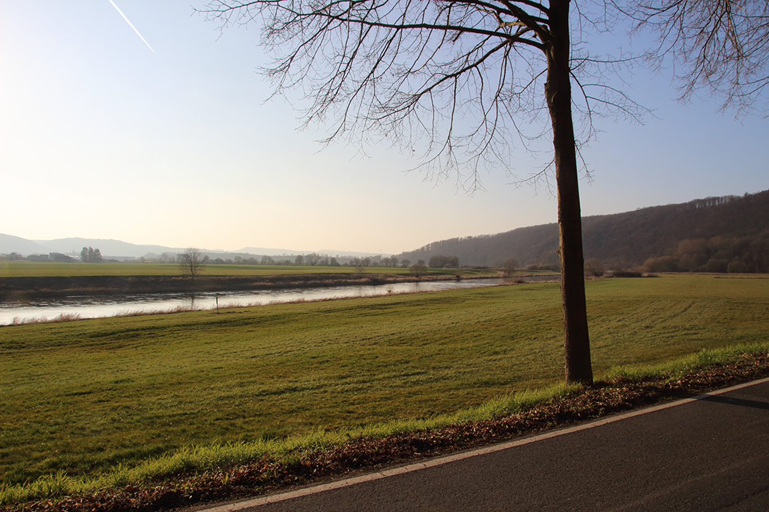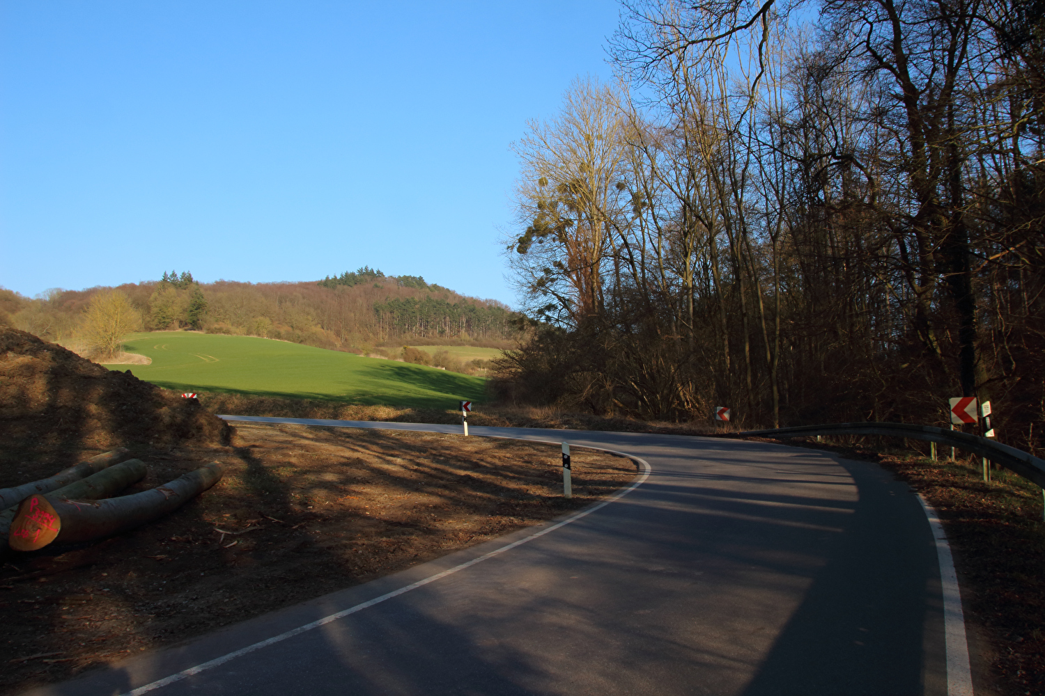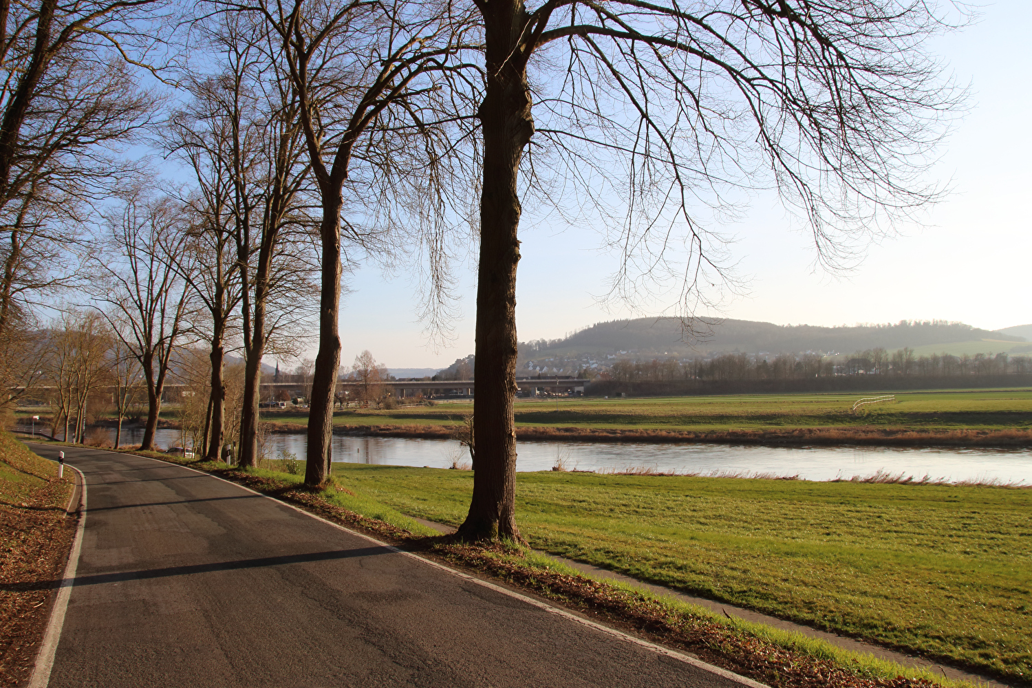 Das sonnige und auch einigermaßen warme Wetter erlaubten in Kombination mit der schon recht langen Tageslänge einen Tag nach der Frühjahrstagundnachtgleiche (20.03.2025 10:01 MEZ) eine erste lange Tour in diesem Jahr. Die Tageswärme setzte sich auch in den Wäldern durch, da die Laubbäume und Sträucher noch unbelaubt waren und somit das einfallende Sonnenlicht weitgehend bis zum Boden vordringen konnte. Bei der Einfahrt nach Grünenplan wurde die Hauptstraße kurzzeitig verlassen und zunächst durch ein Wohgebiet gefahren. Auf dem Weg zum Roten Fuchs stellte sich im Hinterrad ein Schleicher ein. Der abnehmende Reifendruck reichte noch gerade so eben bis zur Passhöhe. Dort war dann aber ein Schlauchwechsel fällig. Mit der Miniluftpumpe ließ sich auch nicht der gewünschte Reifendruck wieder herstellen. Daher wurde die Abfahrt langsam angegangen und in Eschershausen an einer Tanke bis zum gewünschten Reifendruck aufgepumpt. Durch den Zeitverlust kam die Überlegung auf, die Tour ab Bodenwerder auf dem Weserradweg abzukürzen. Diese Überlegung wurde aber mit Erreichen des Wesertals wieder verworfen und die Tour wie ursprünglich geplant zu Ende gefahren. Dadurch erfolgte der Sonnenuntergang noch vor dem Tourziel im flachen Auslauf der Tour nördlich von Grohnde. Kurz vor Sonnenuntergang wurde es merklich kälter, weshalb die Tour in langen Klamotten endete.