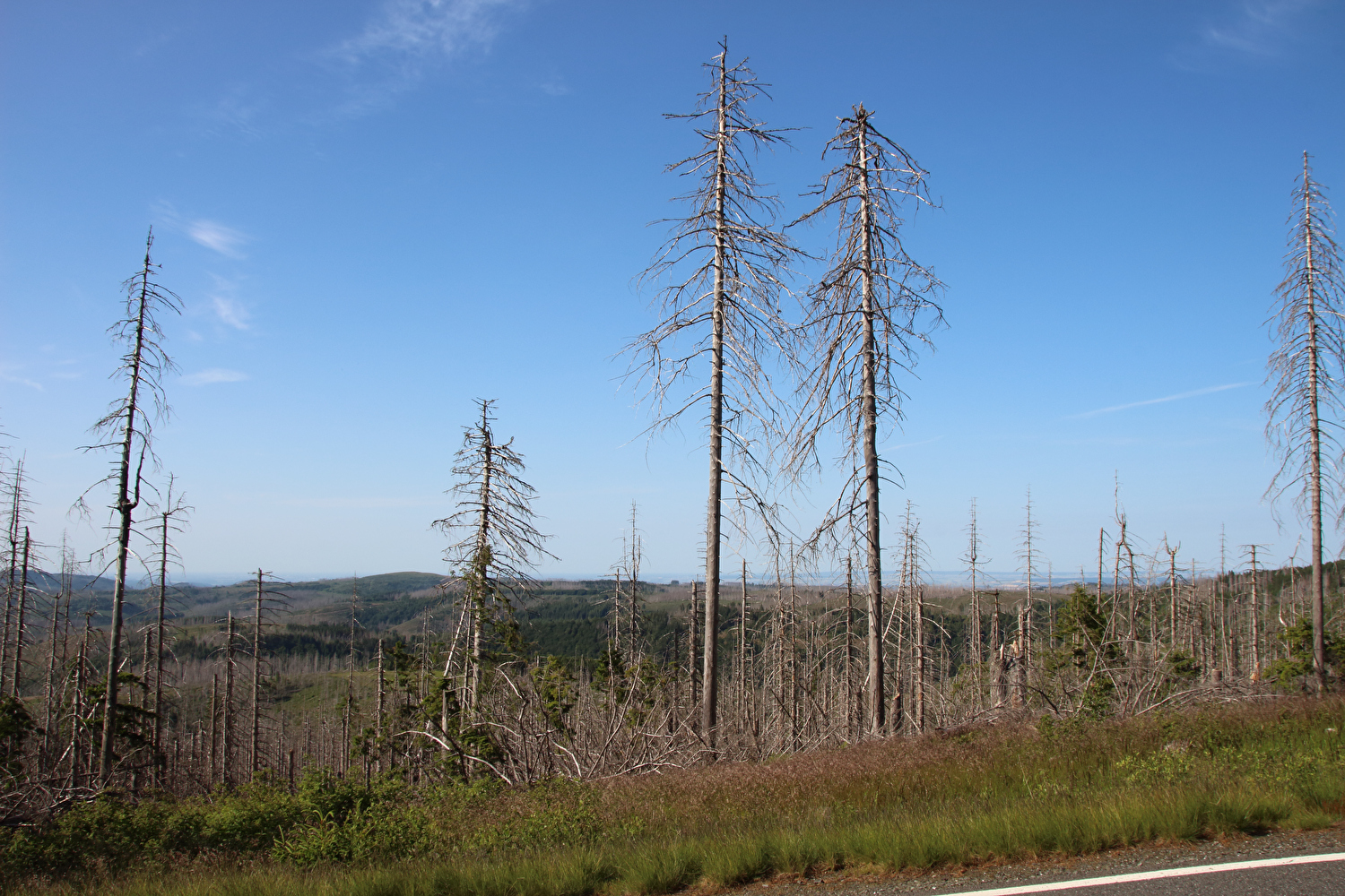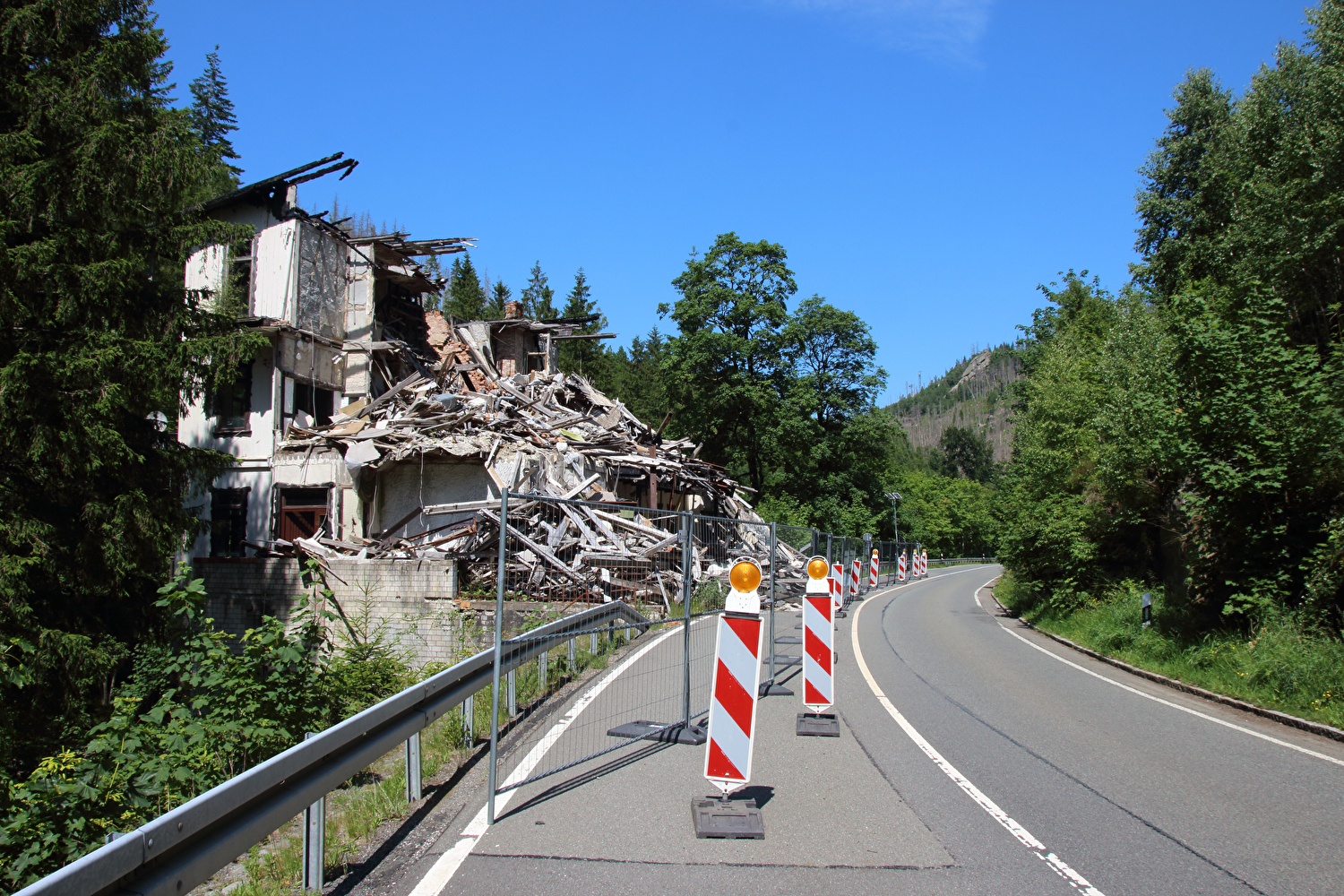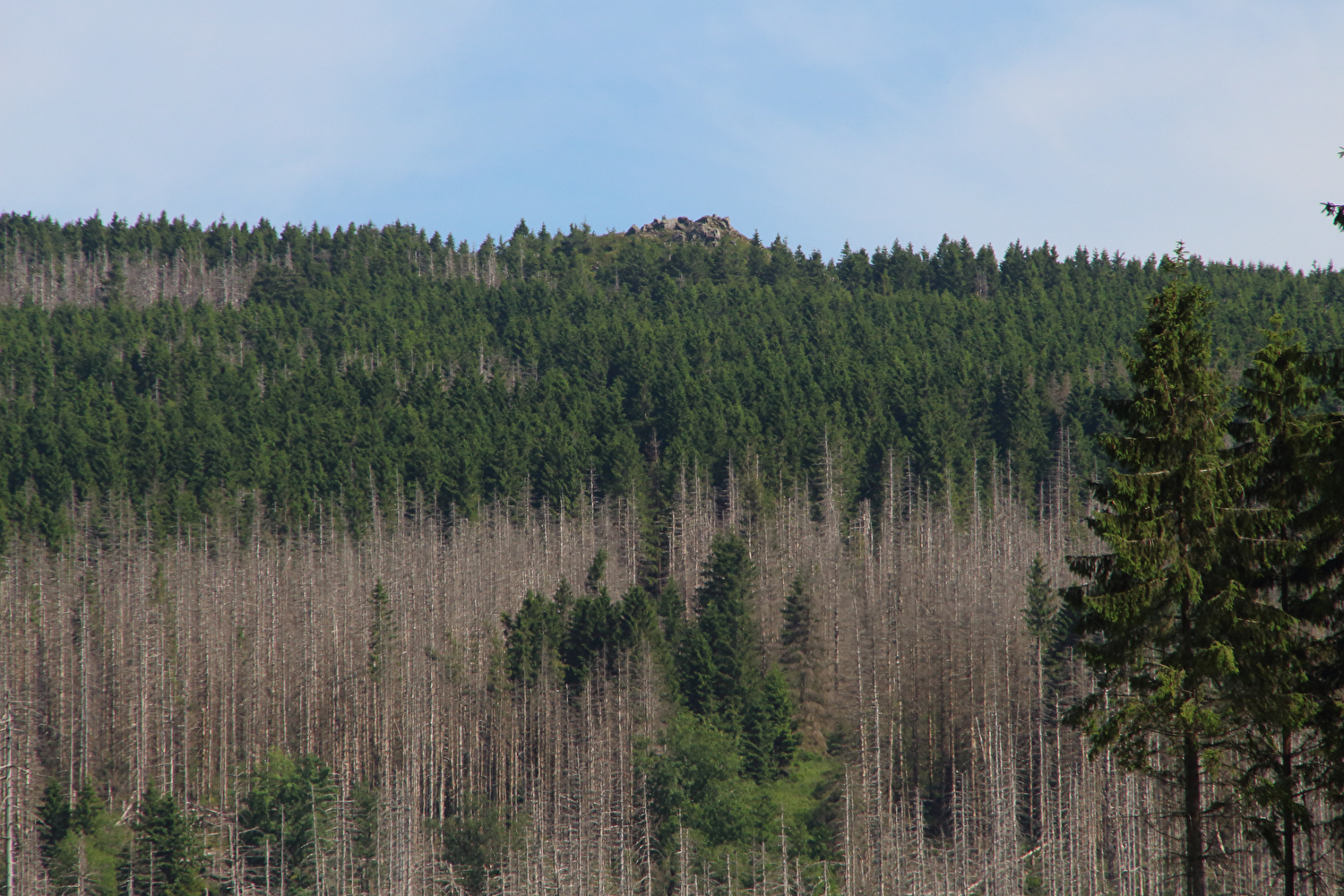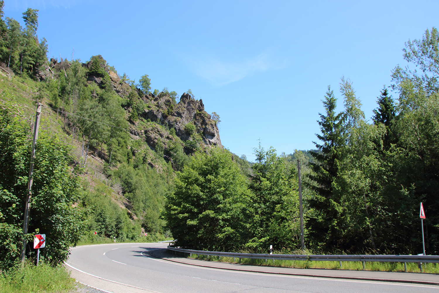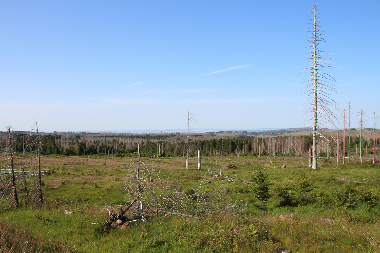 Fahrradfahren im Harz bedeutet seit geraumer Zeit Fahrradfahren ohne Wald. ☹ Deshalb wurde im Jahr zuvor auch komplett darauf verzichtet. Allerdings bietet nur der Harz in Norddeutschland längere Anstiege. Somit stand bei dieser Tour die Fahrt bergauf im Vordergrund. Die Okertalsperre war für die Jahreszeit sehr leer. Ab Altenau verlief die Tour bis Torfhaus fast durchgängig in der prallen Sonne. Lagen früher weite Teile der L504 die meiste Zeit des Tages im Schatten, kam dieser nur noch vereinzelt von wenigen übrig gebliebenen Bäumen. Als Fluchtort vor sommerlicher Hitze scheidet der großflächig entwaldete Harz für längere Zeit aus, da seine Höhe allein dafür nicht ausreicht.