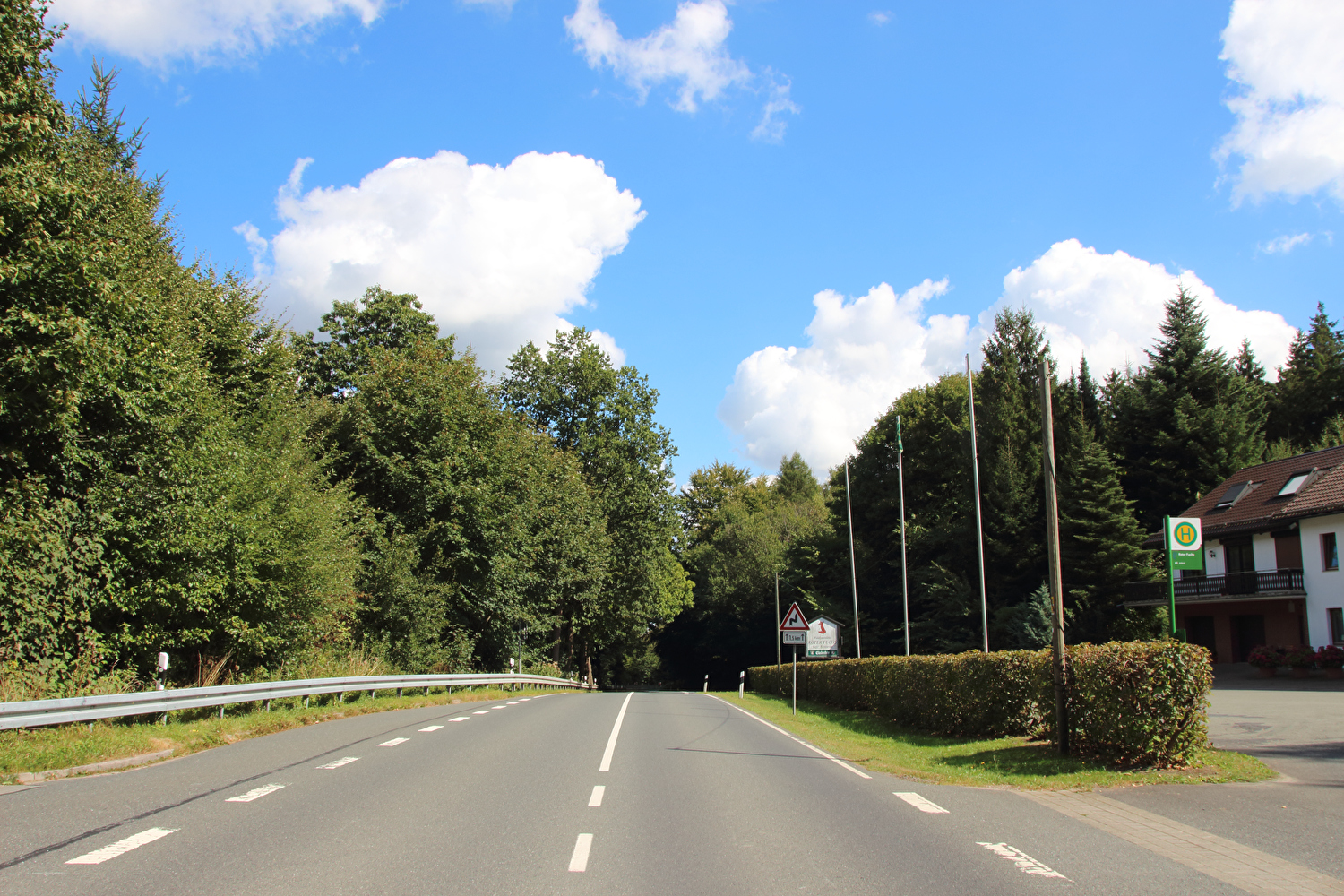 „in klein“: Mit der Überquerung des Roter Fuchs wurde eine lokale Wasserscheide, die dort die Einzugsgebiete von Leine und Lenne (Weser) trennt, überquert. Nahe der Passhöhe entspringt ein (von der Passstraße aus nicht sichtbarer) namenloser Fluss, der über Ruthe, Lenne und Weser in die Nordsee entwässert.